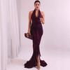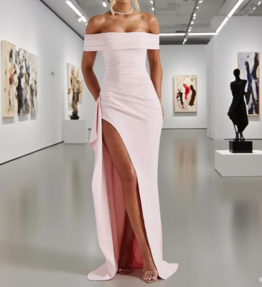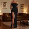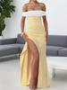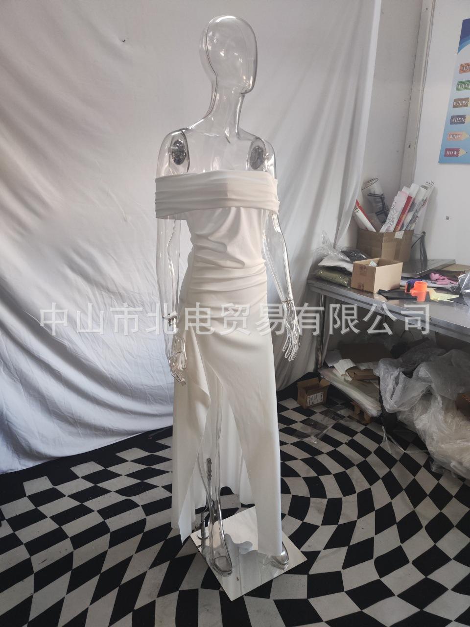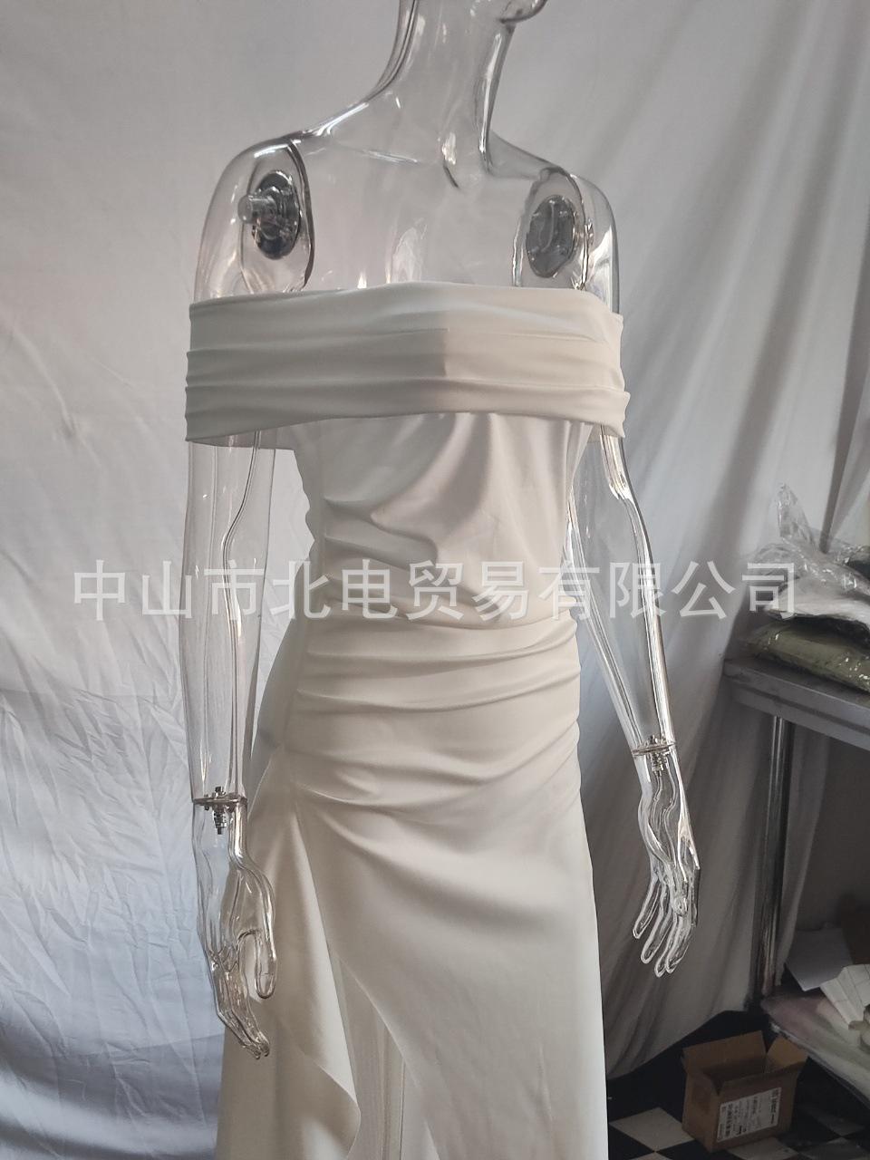 Vestido Largo de Verano 2025 de Moda Europea y Americana Transfronteriza para Cena, Strapless, Sexy, con Cuello de Línea Única, Espalda Descubierta y Abertura para Mujer