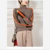 Suéter de cuello alto de lana de imitación completa con mangas de color contrastantes y suelto con diseño transfronterizo de comercio exterior para otoño e invierno para mujer