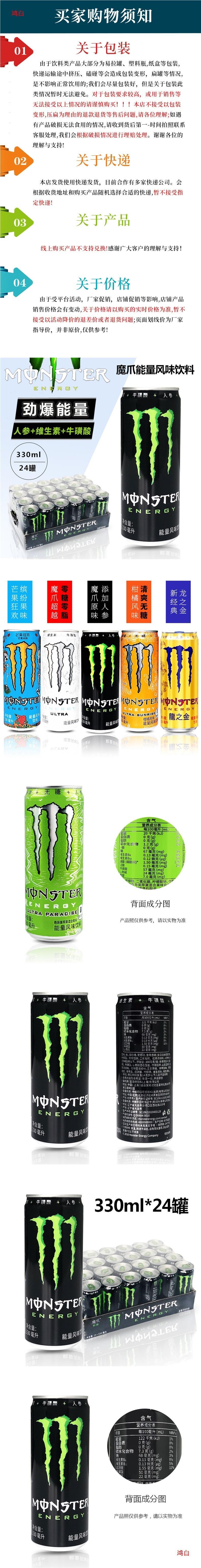 Bebida Saborizada Monster Energy 330ml*24 Latas Caja Completa Bebida Saborizada con Vitaminas Lata Verde Garra 1
