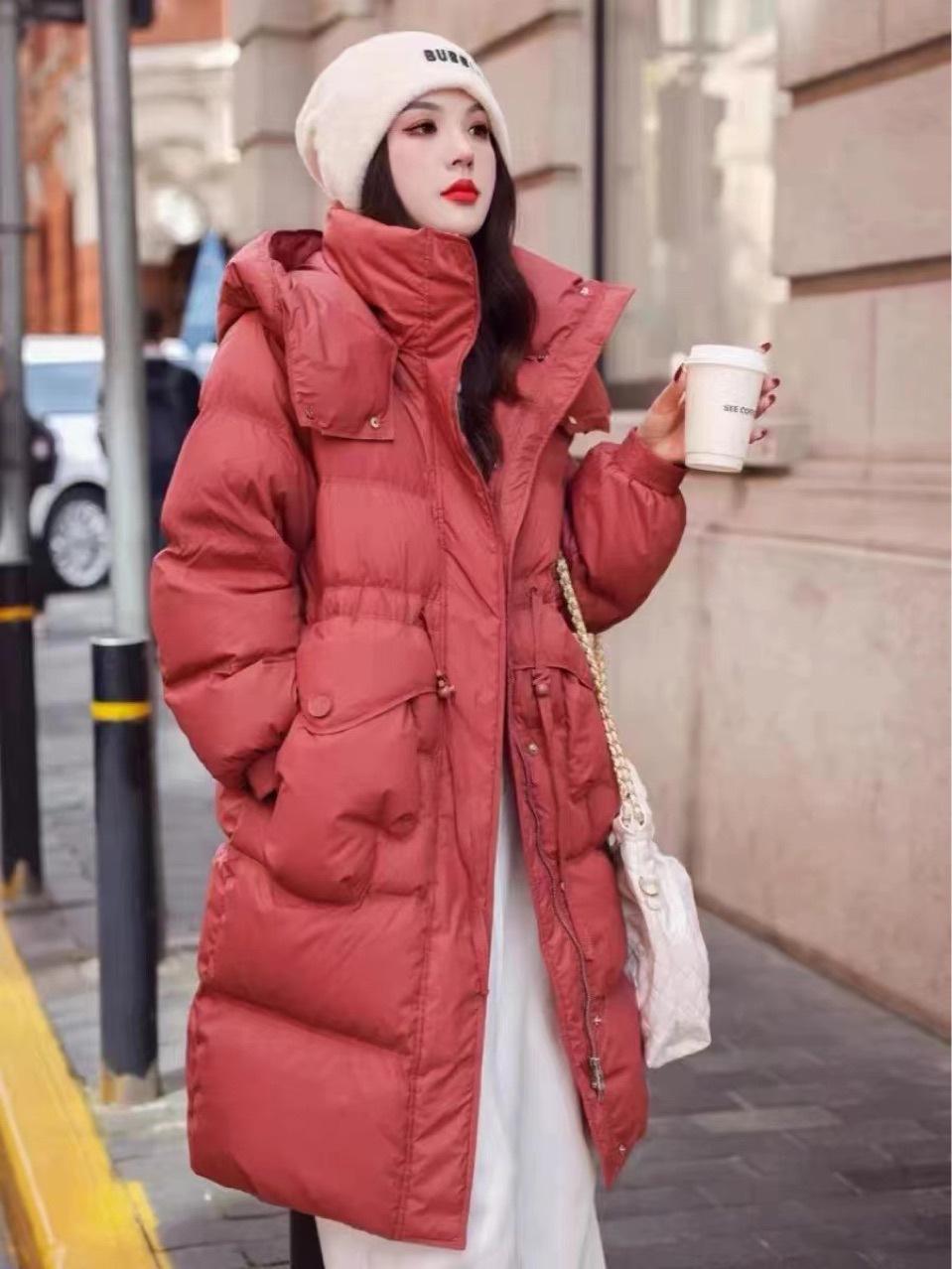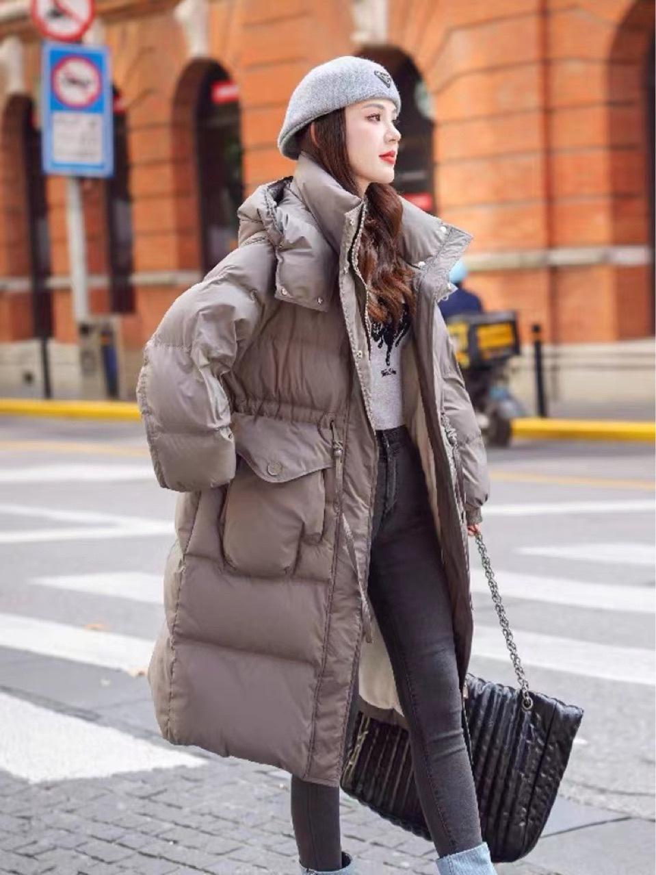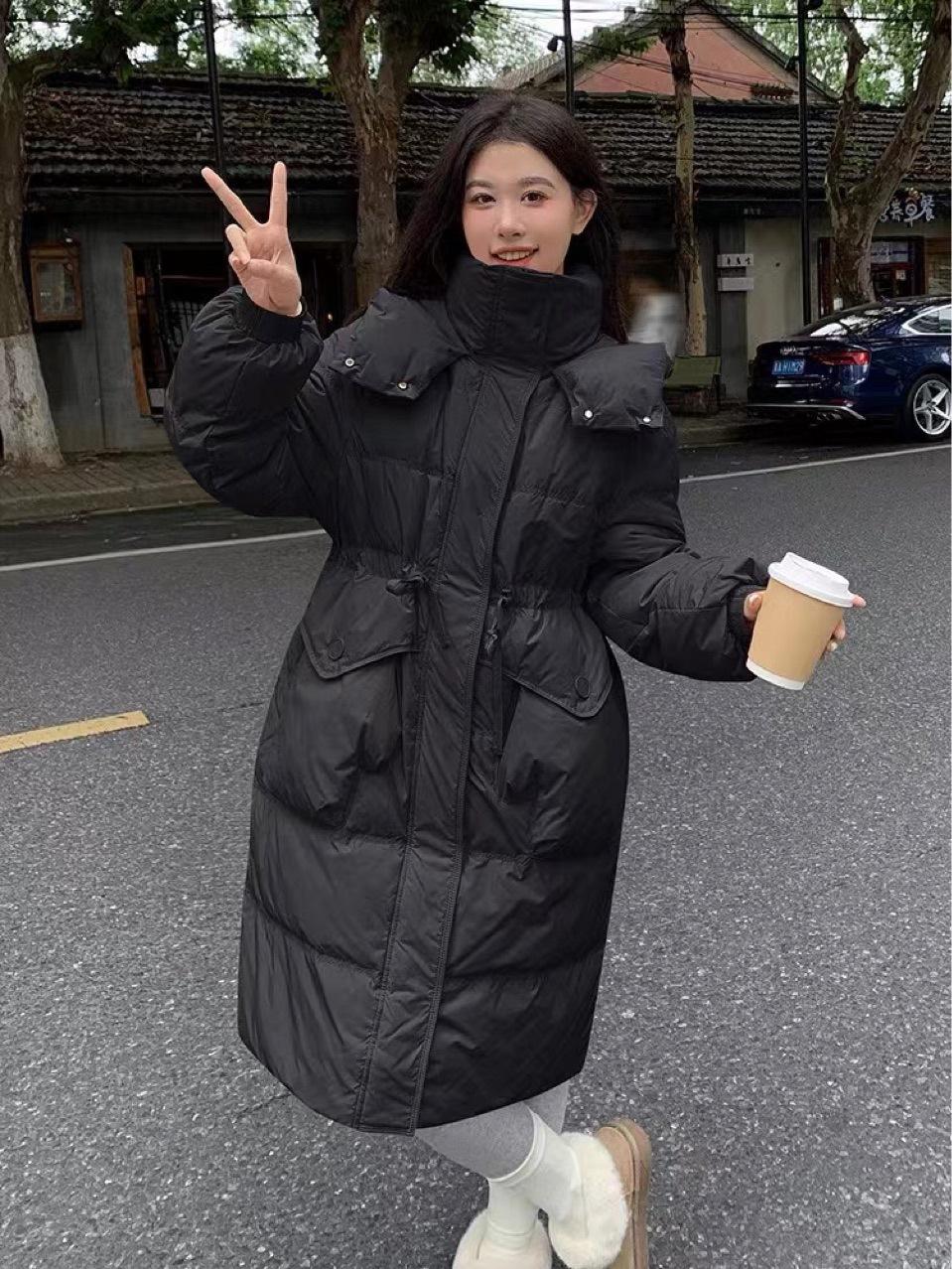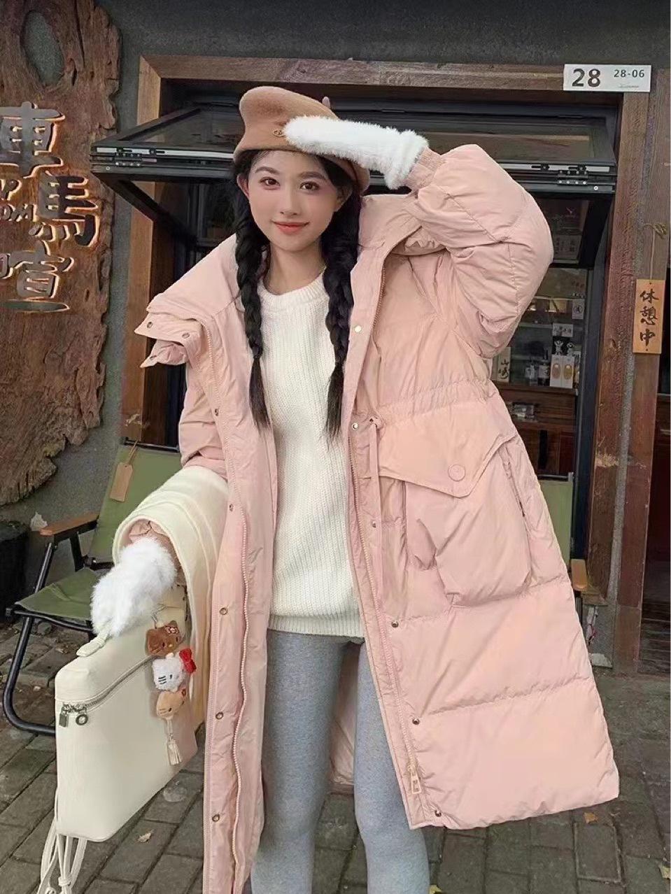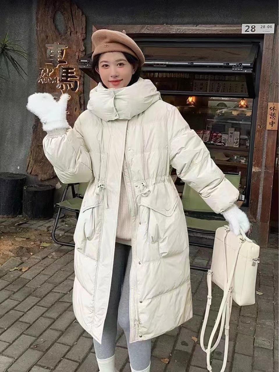 Chamarra de plumón de alta gama para mujer 2024 Invierno Nuevo Estilo coreano Largo medio Ajustado Ajustado Plumón de pato blanco Guantes con capucha
