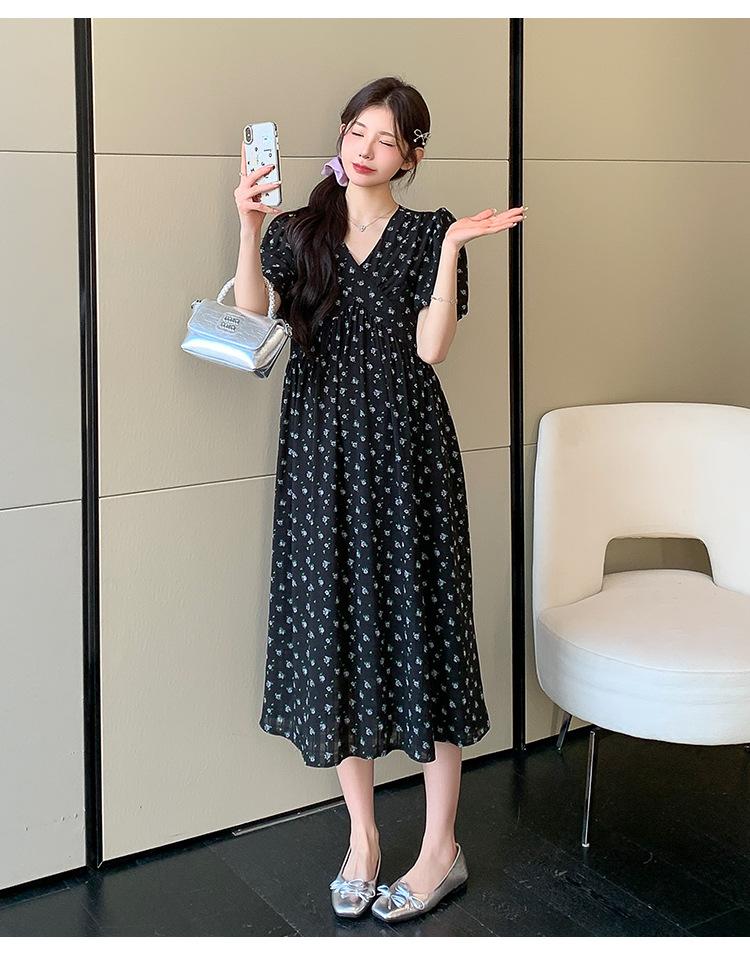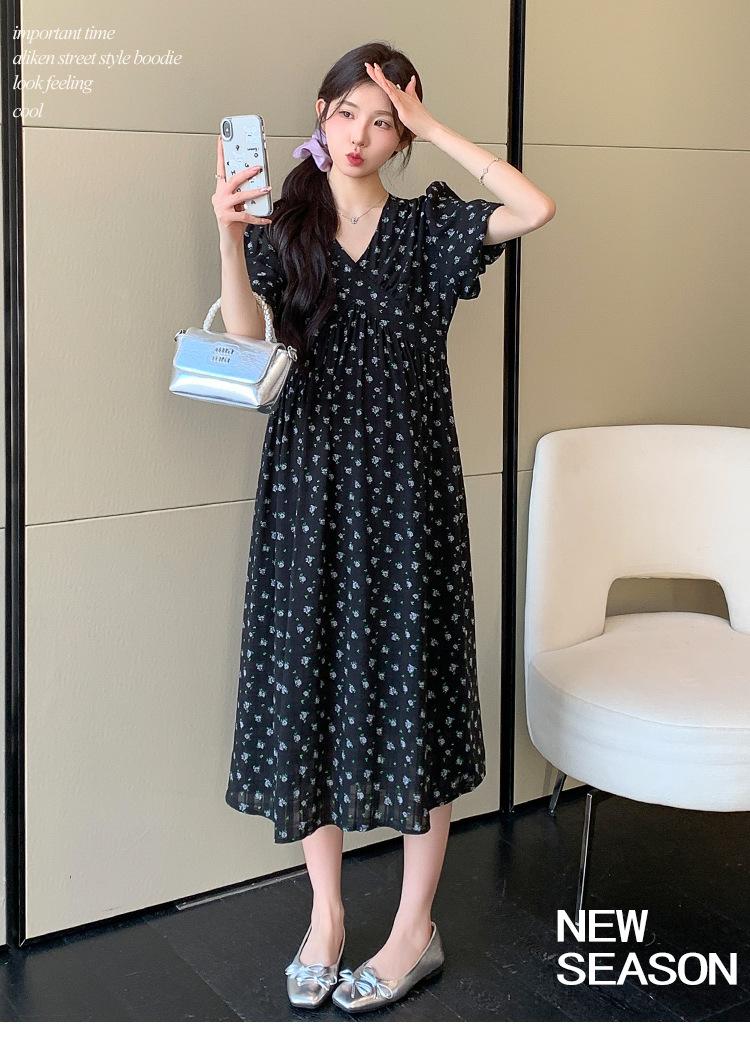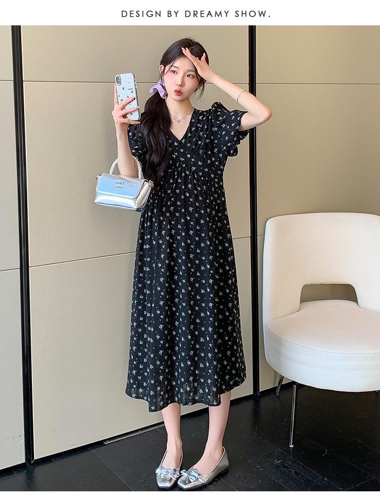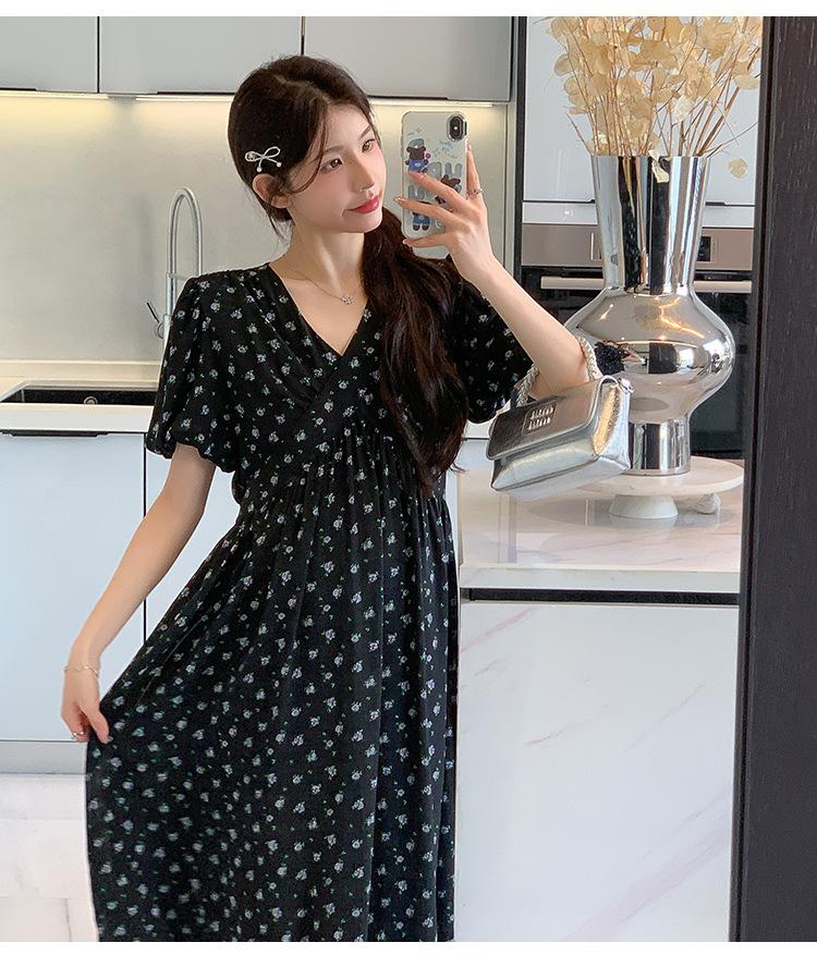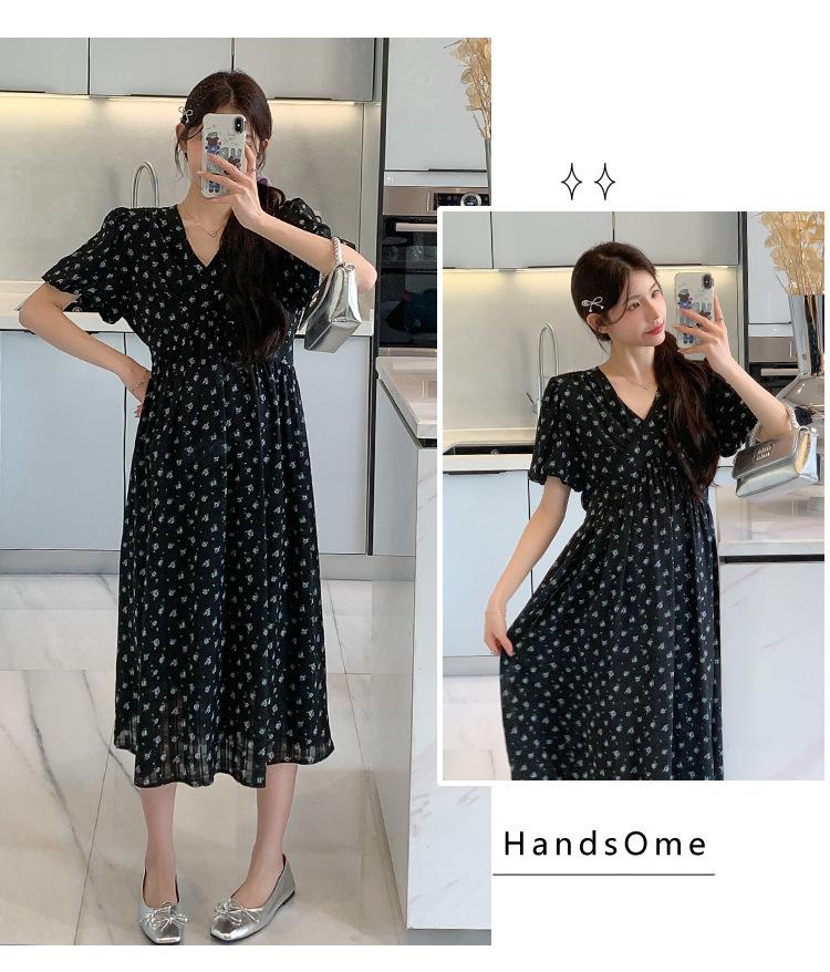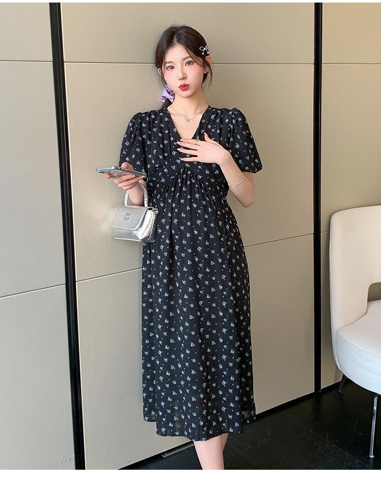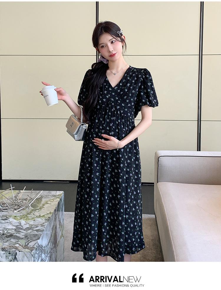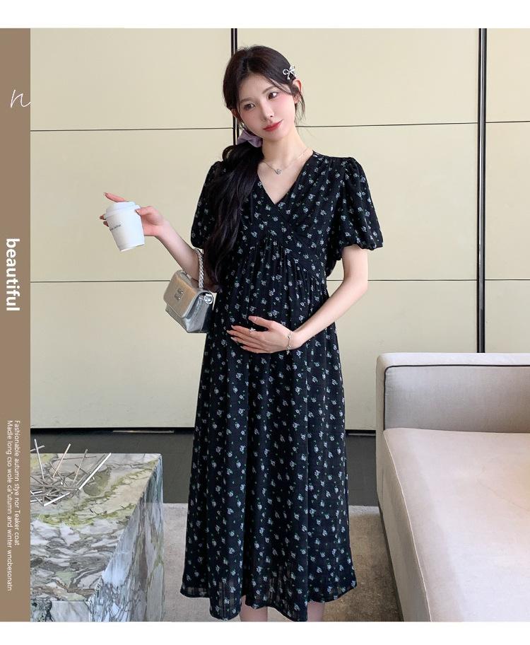 Vestido de Verano de Maternidad Nuevo 2025 Largo Medio Suelto Estilo Coreano Vestido de Maternidad Floral