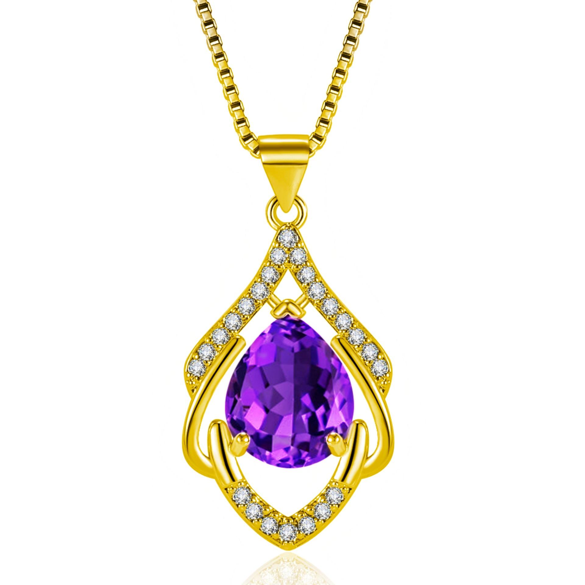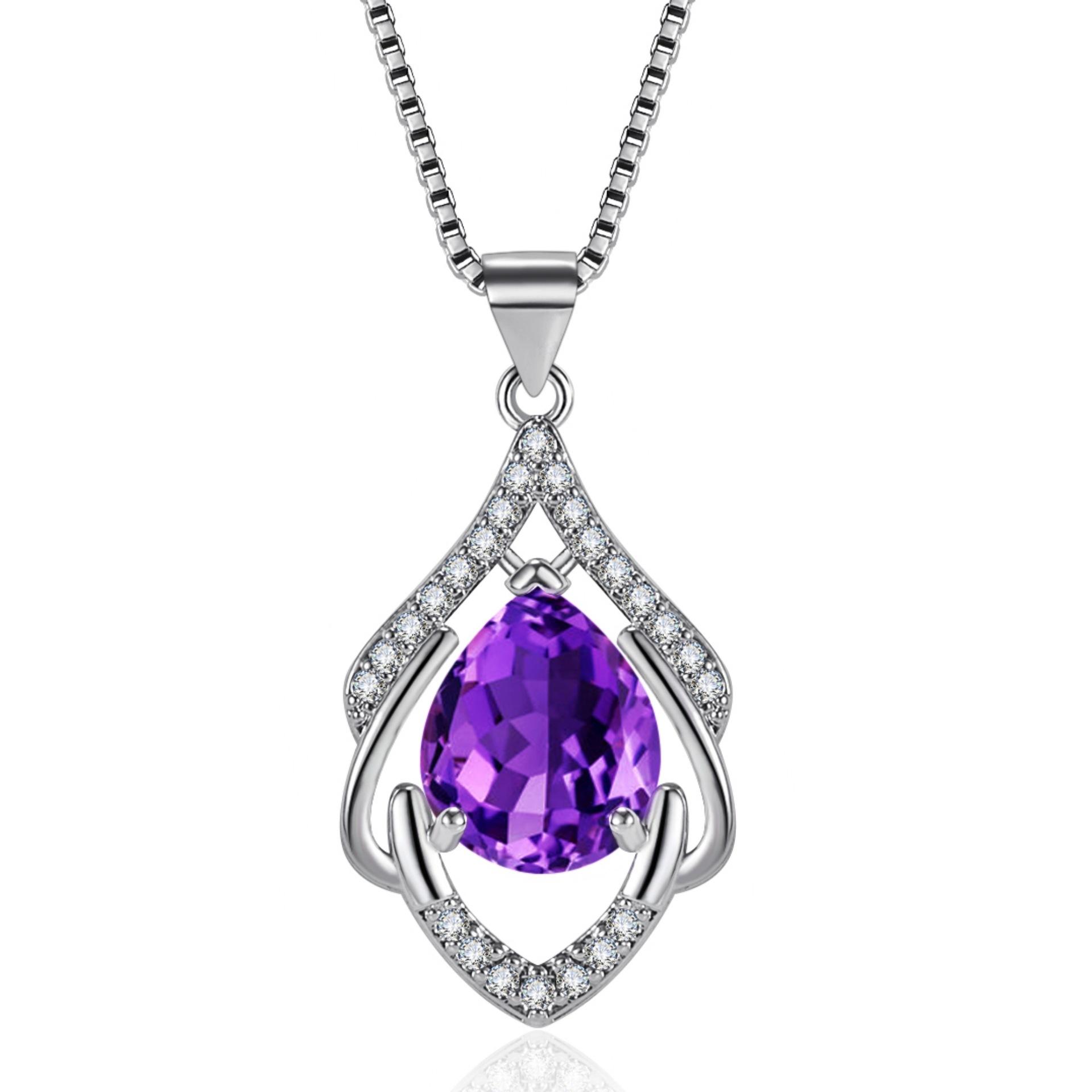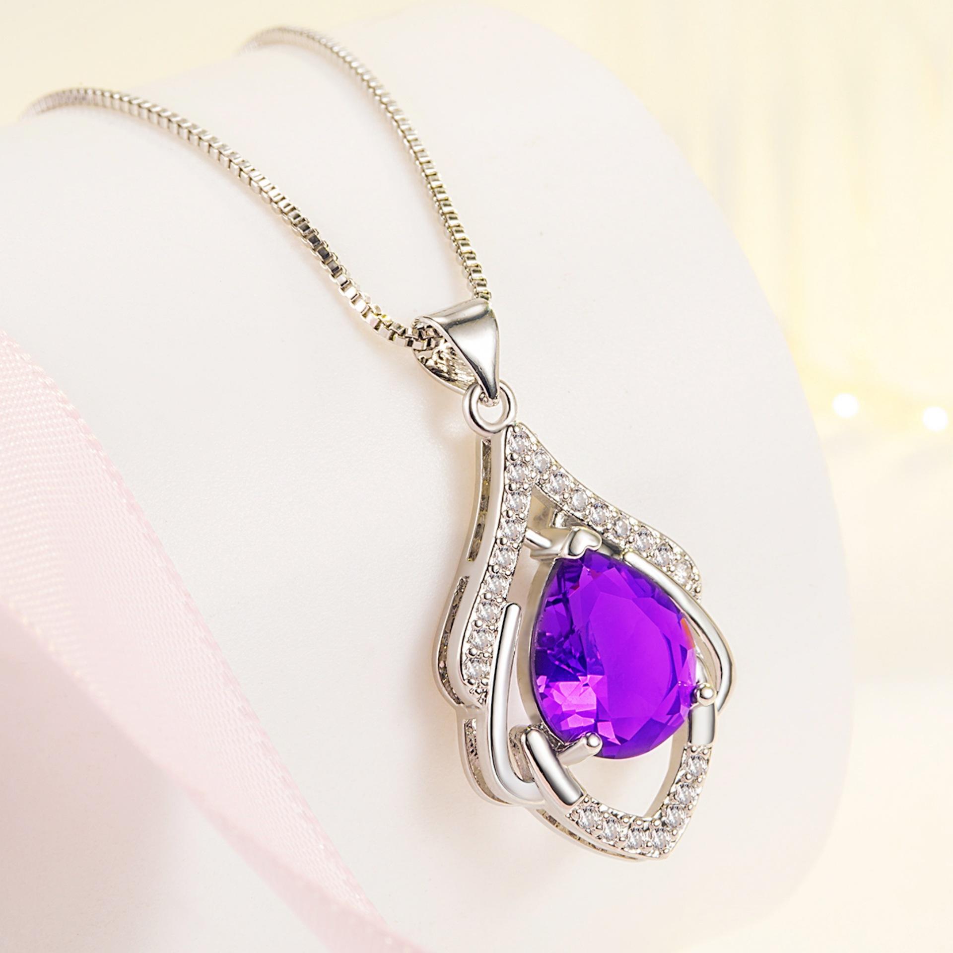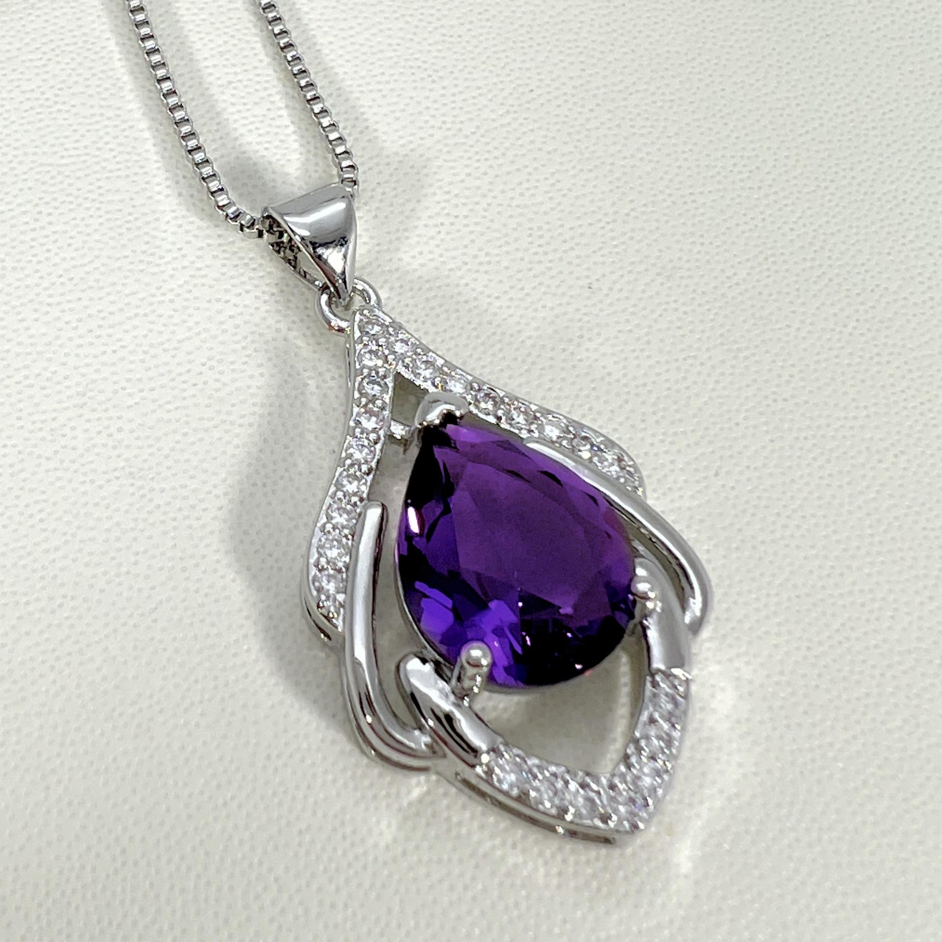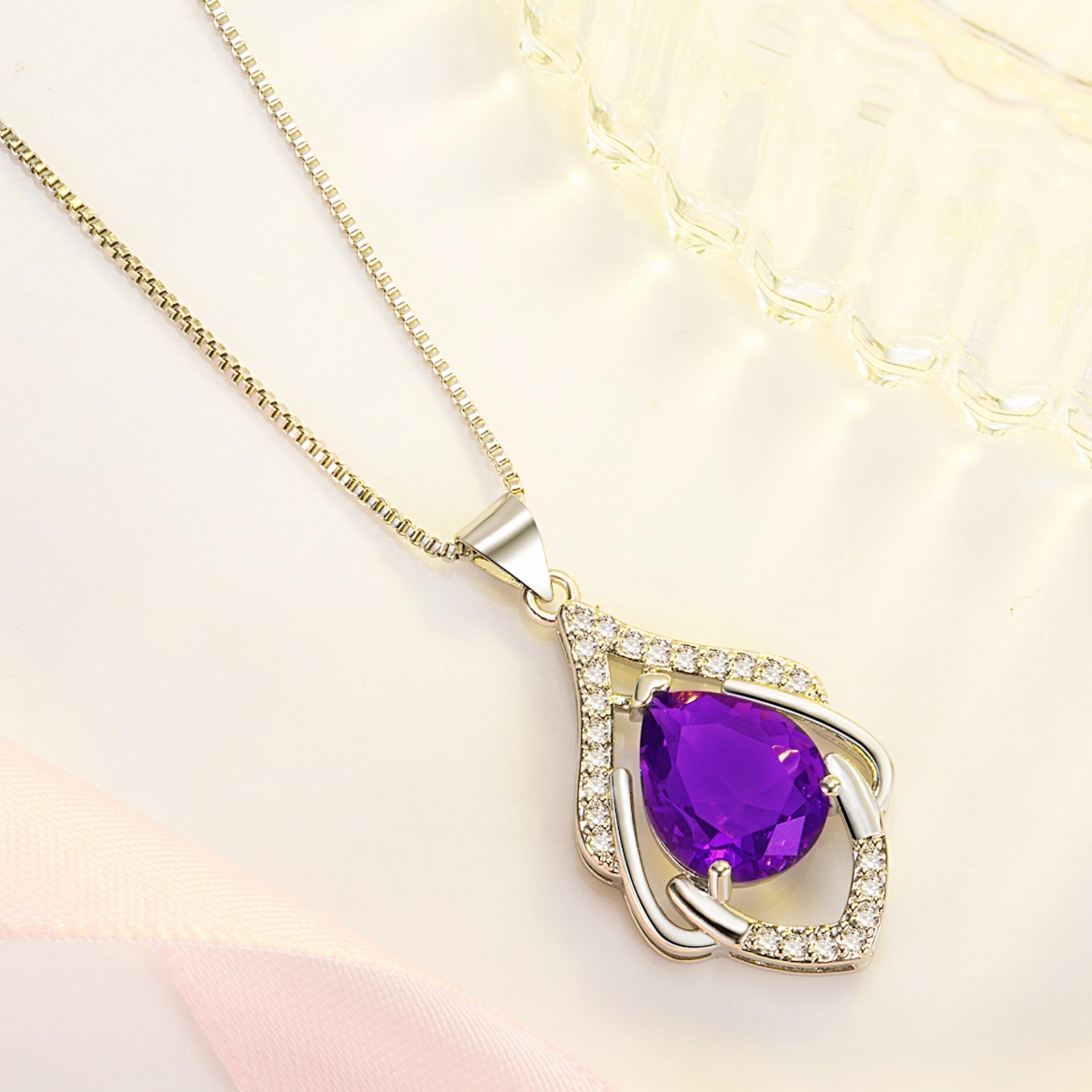 Collar con colgante de tesoro colorido de circón en forma de gota de temperamento, cadena japonesa y coreana con colgante de amatista, cadena para clavícula, joyería de plata