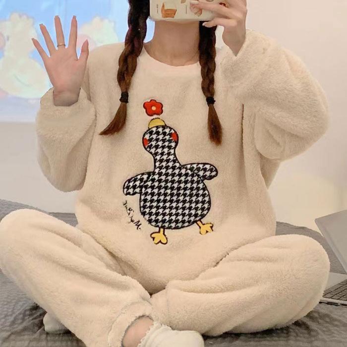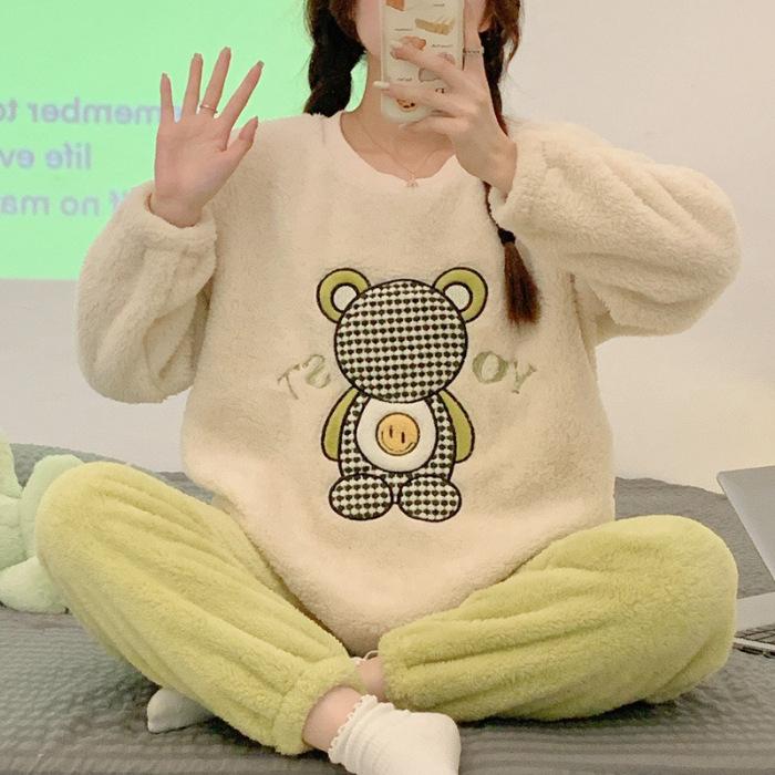 Pijamas de Vellón Coral para Niñas de Primavera, Otoño e Invierno, Gruesos y de Terciopelo, Ropa Cálida para el Hogar, Nuevos Se Pueden Usar Afuera, Trajes de Franela