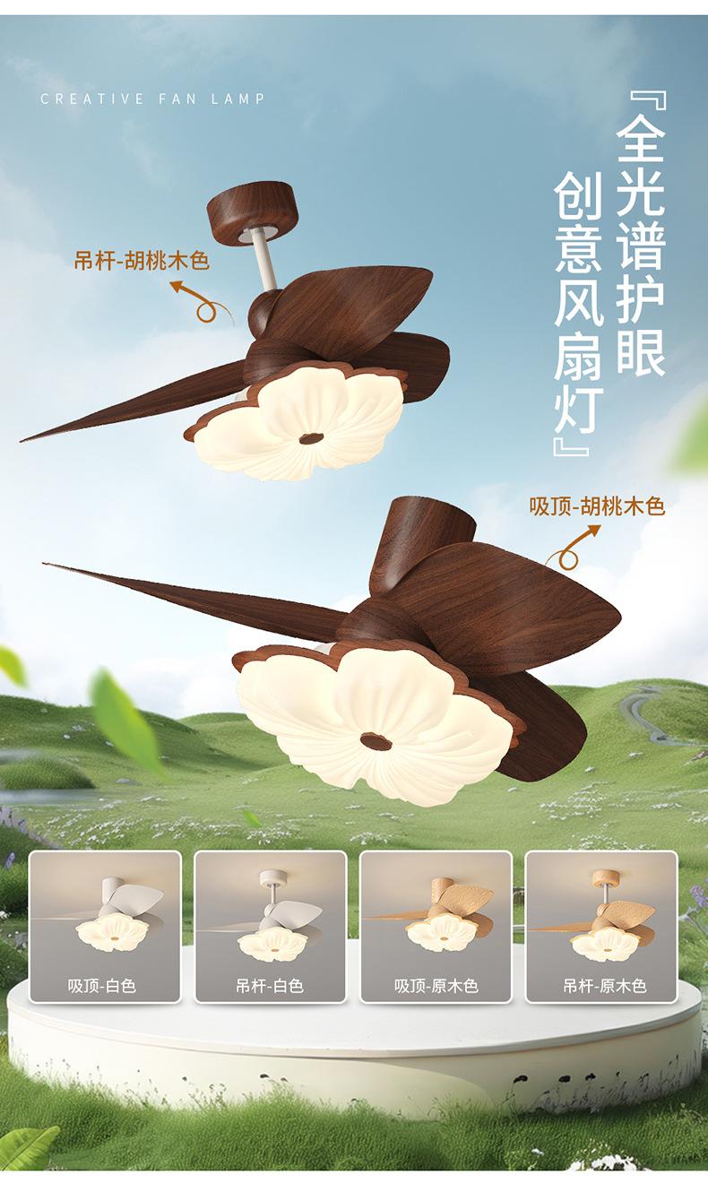 Nuevo Lámpara de Ventilador de Techo de Flor Estilo Crema Protección Ocular Lámpara de Ventilador de Techo para Dormitorio Silenciosa Lámpara para Restaurante Ventilador de Techo Integrado