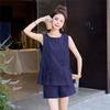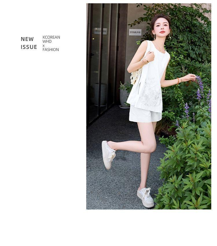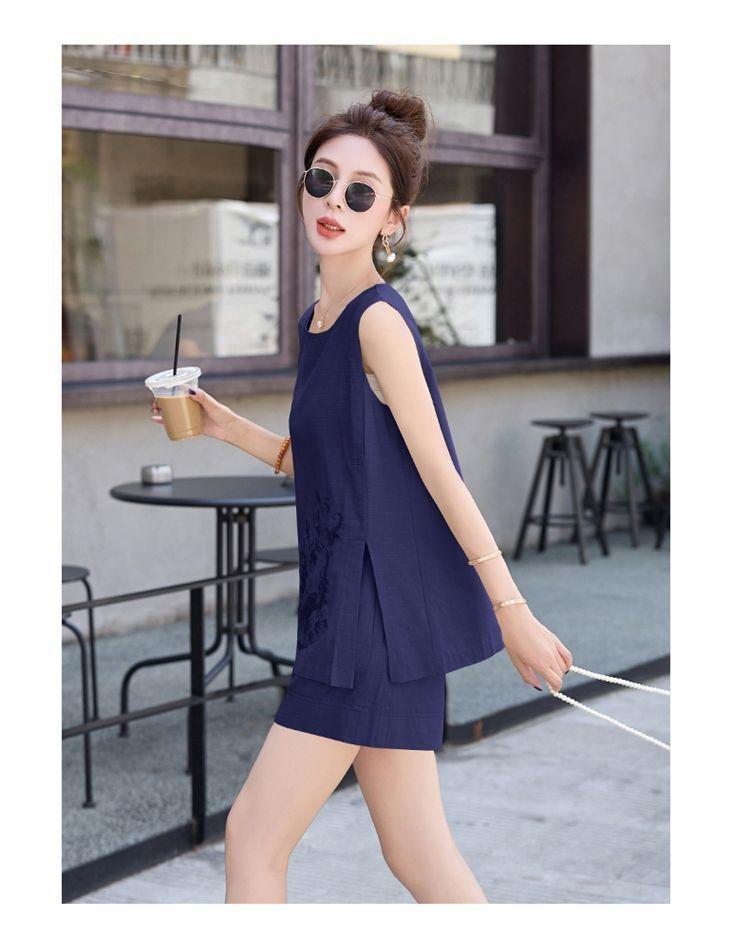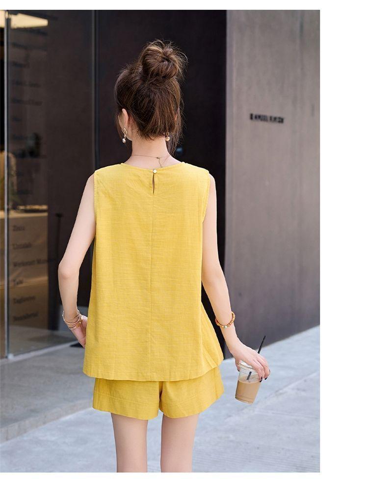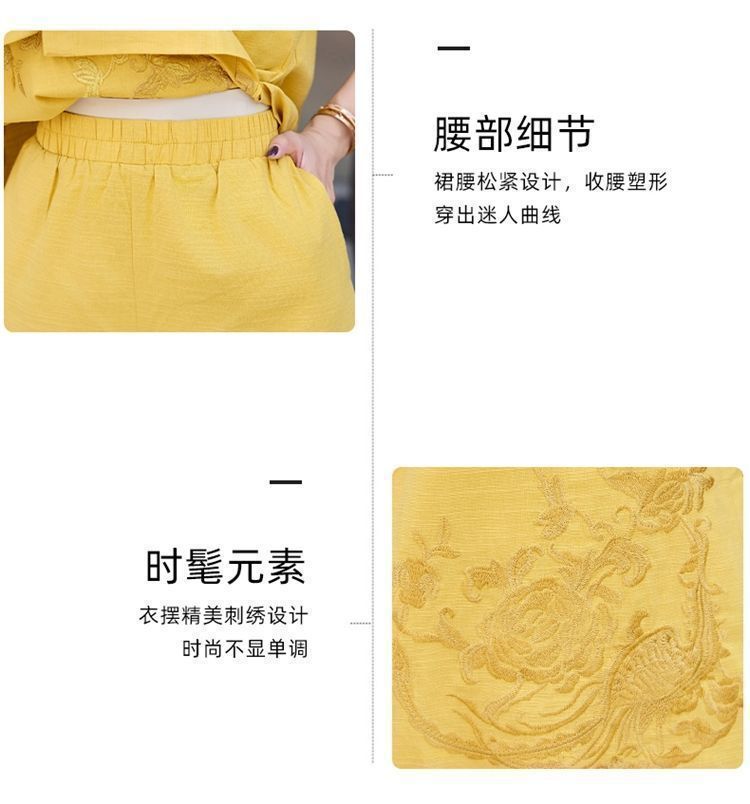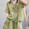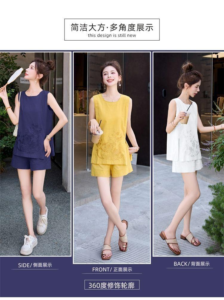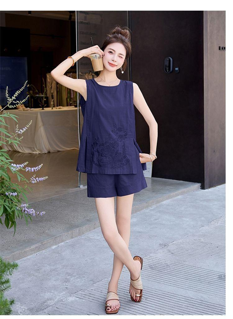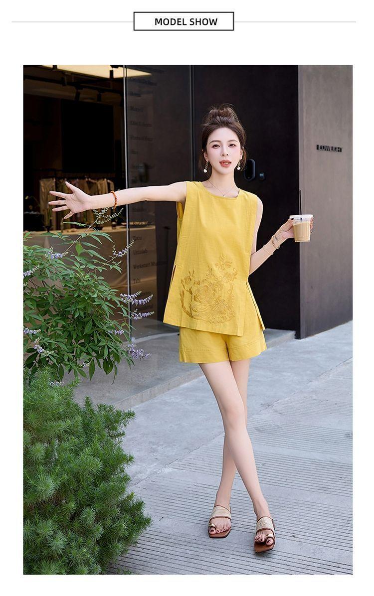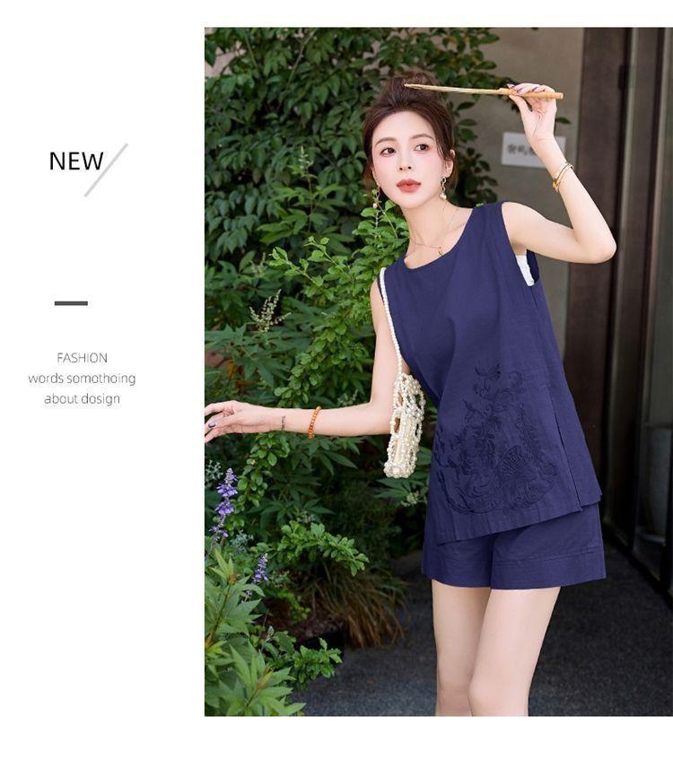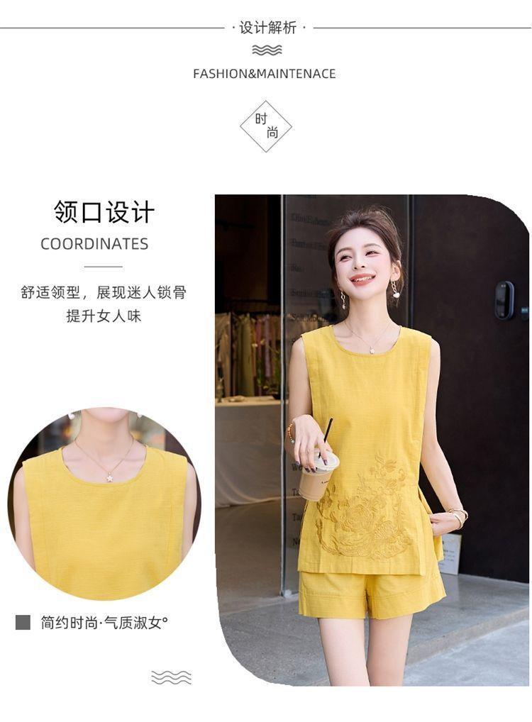 Traje de Estilo Nacional de Estilo Chino Nuevo para Mujer Verano Algodón y Lino Diseño Bordado Top Chaleco sin Mangas Shorts Elegante Conjunto de Dos Piezas