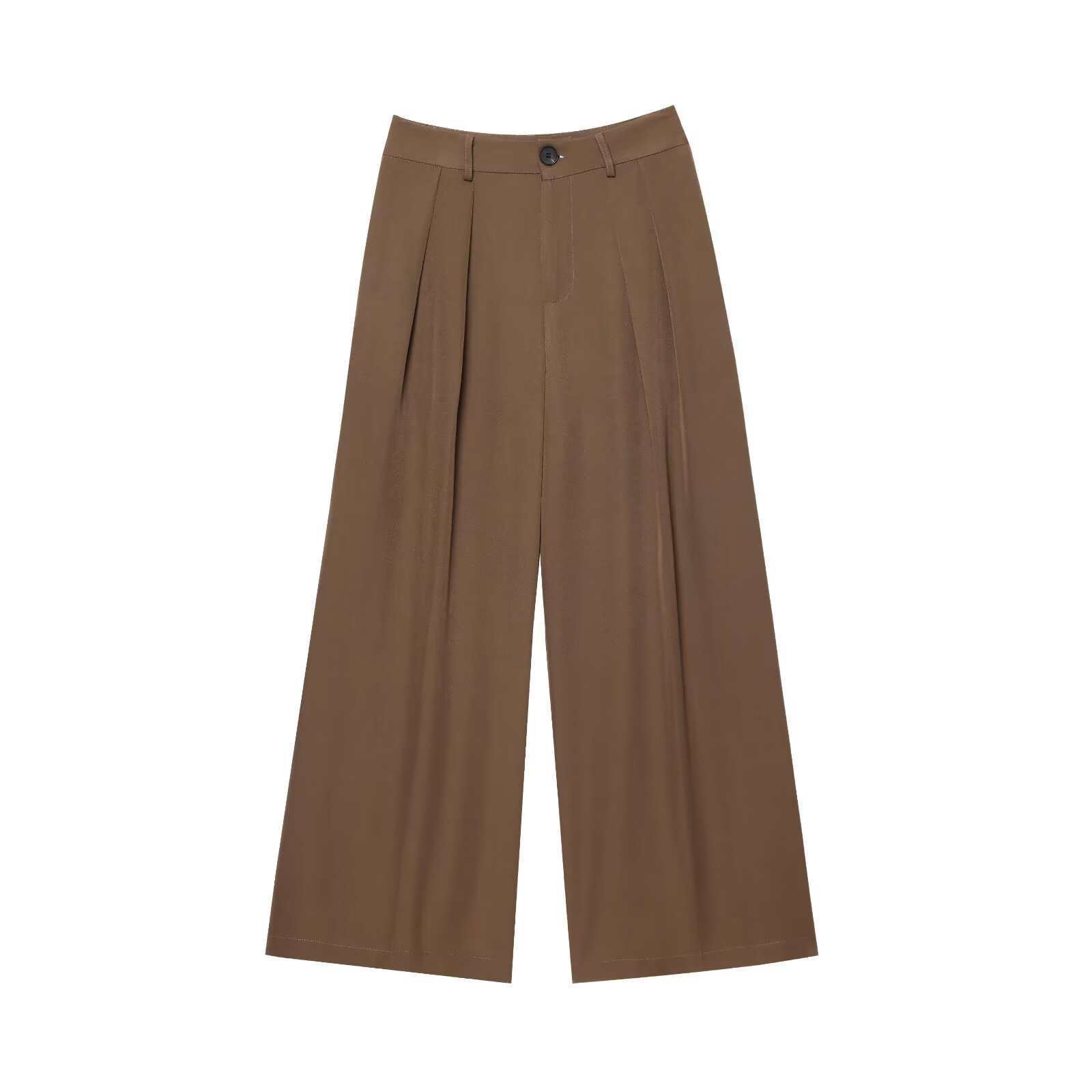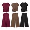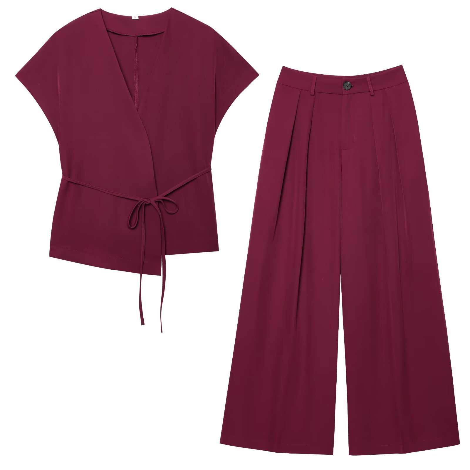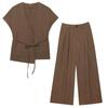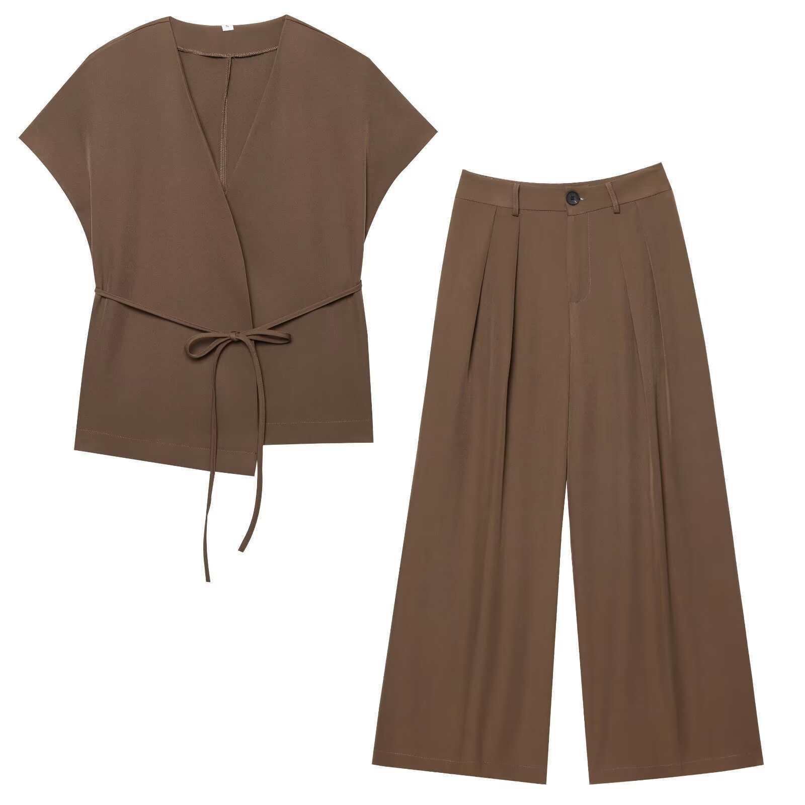 Moda de Verano Nuevo Traje Retro de Top y Pantalones de Pierna Ancha Europeo y Americano Cintura Cárdigan Diseño Transfronterizo Ropa de Mujer