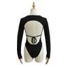 2024 otoño nuevo sexy sin espalda manga larga mono mujer elástico ajustado alta elasticidad camiseta básica top venta al por mayor