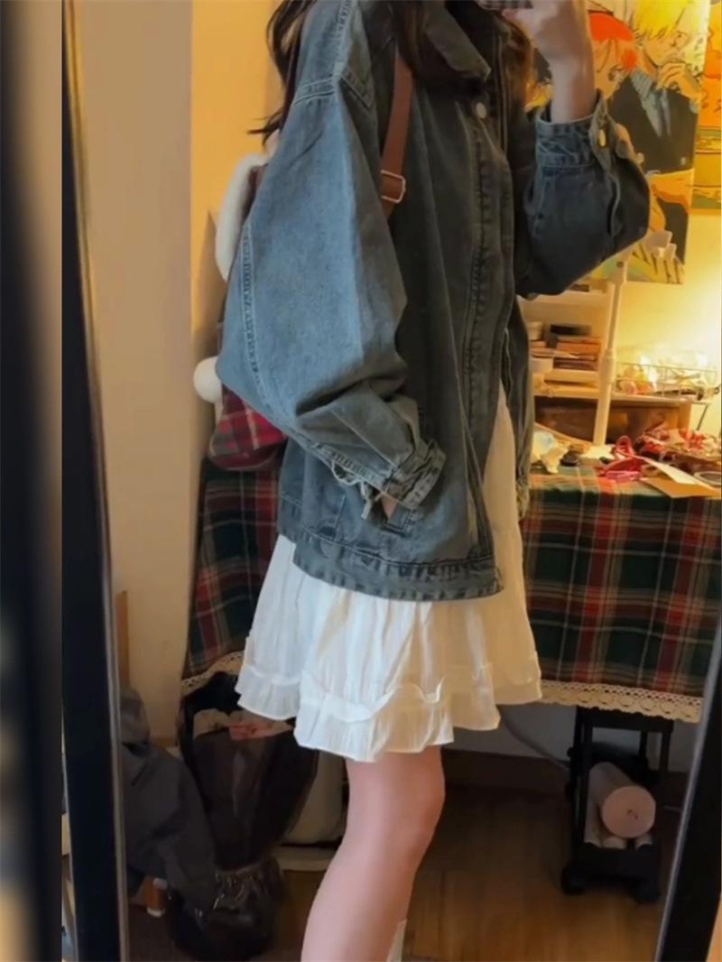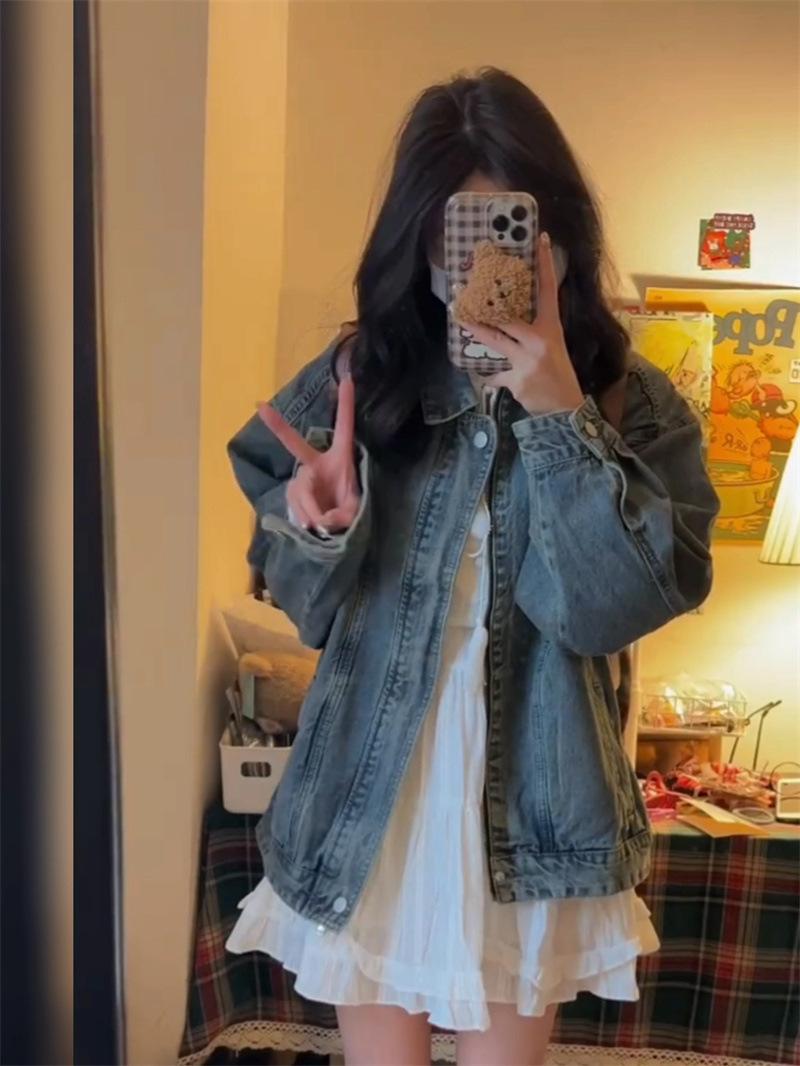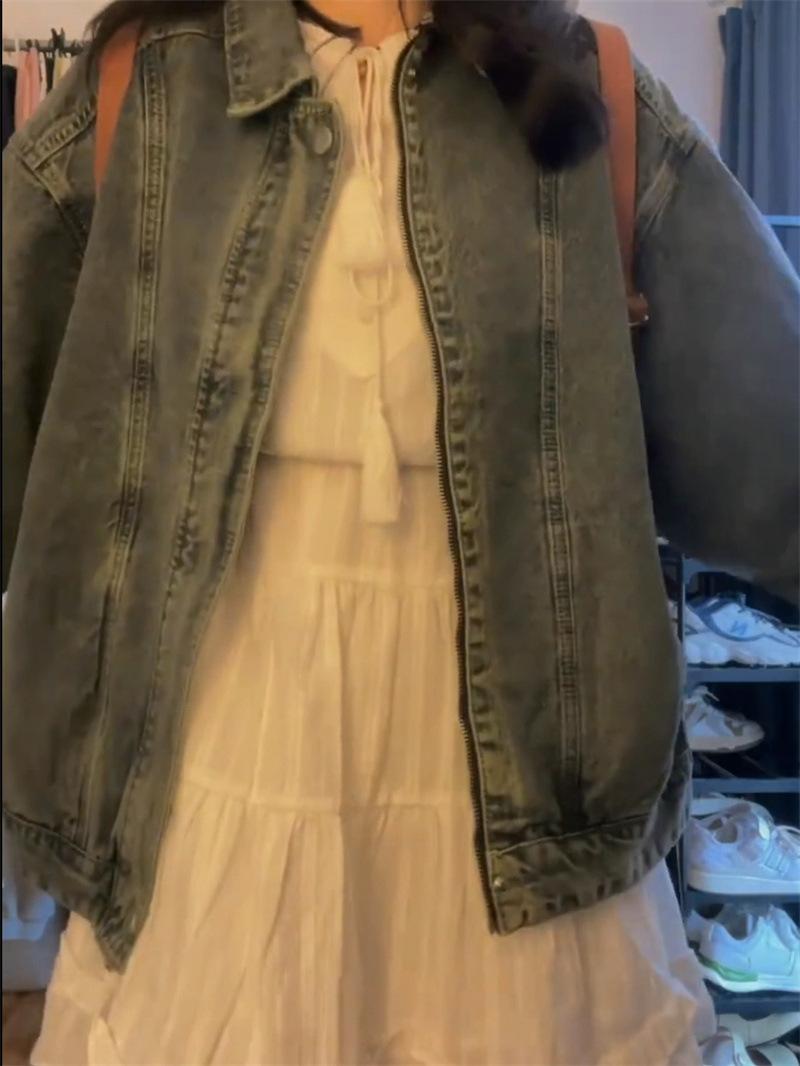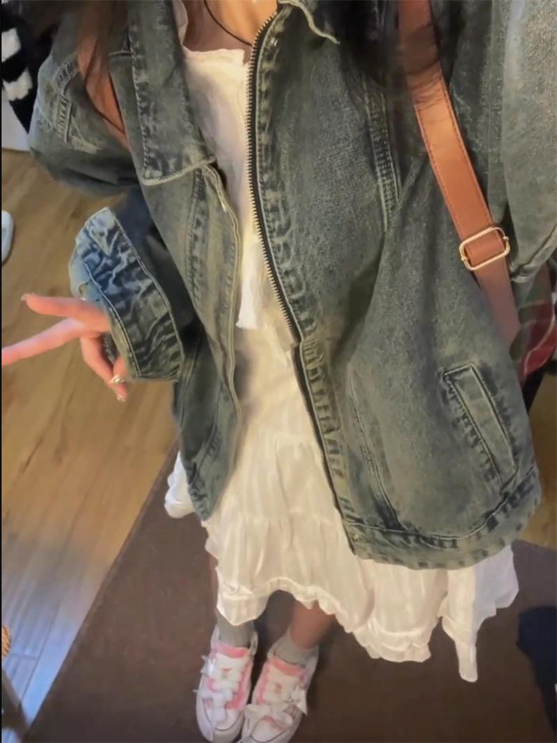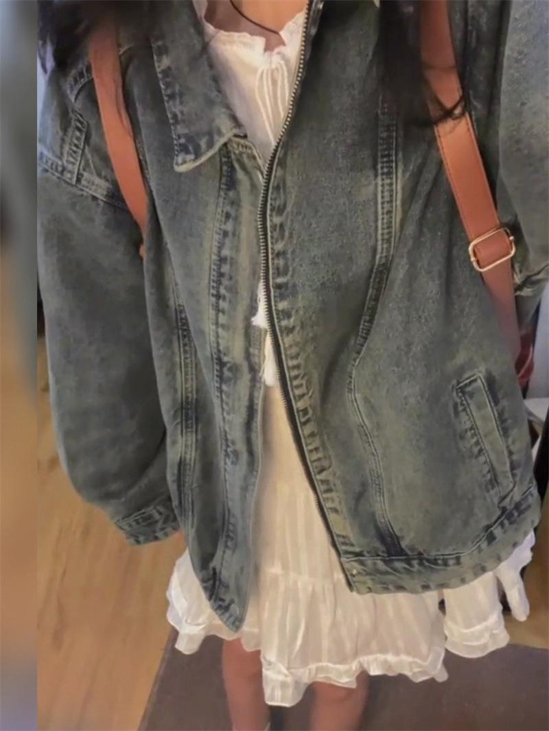 Chaqueta vaquera lavada con cremallera y abertura hermosa y popular de este año para primavera y otoño, chaqueta pequeña coreana para mujer
