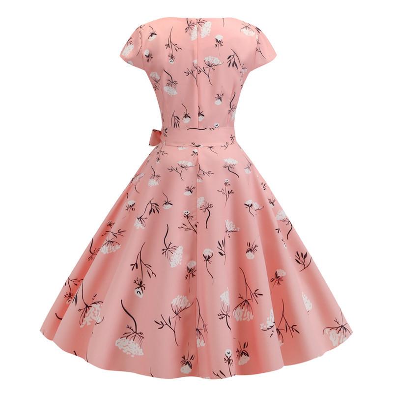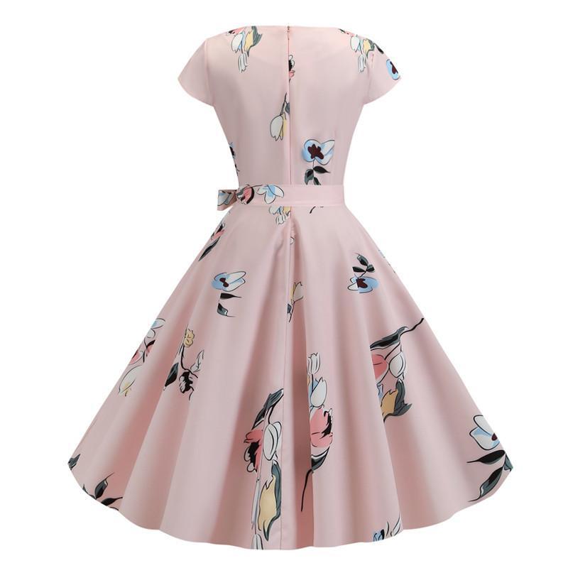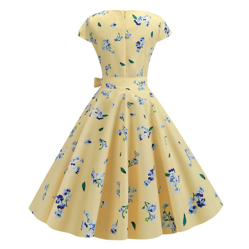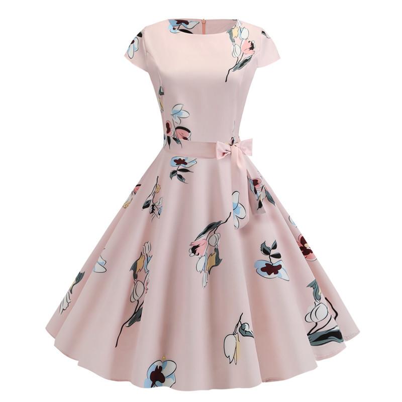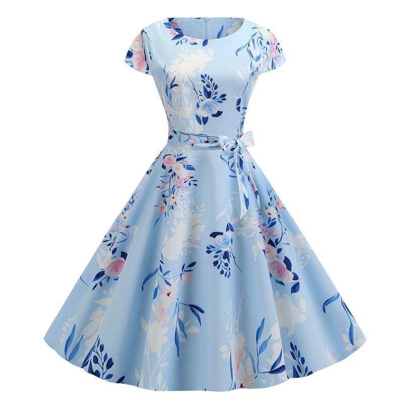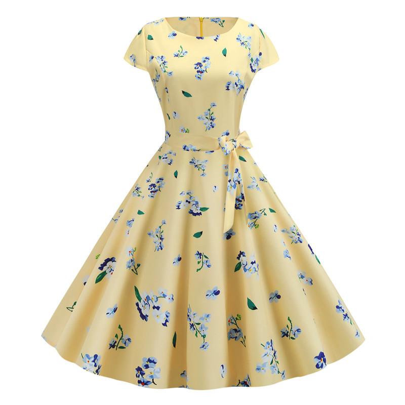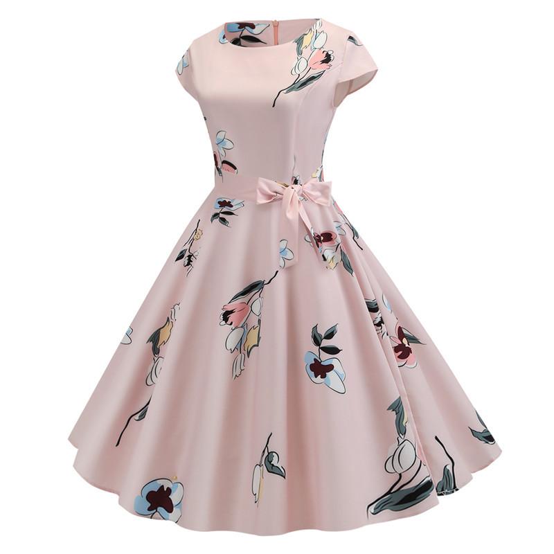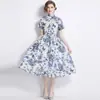 Vestido grande estampado de manga corta con cuello redondo retro de verano europeo y americano, gran oferta 2024