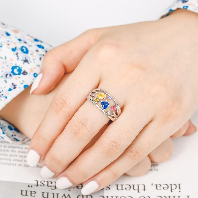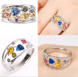 Anillo geométrico de metal multicolor de aleación europea y americana con circonita, nuevo, fabricantes de joyería para mujer a la venta
