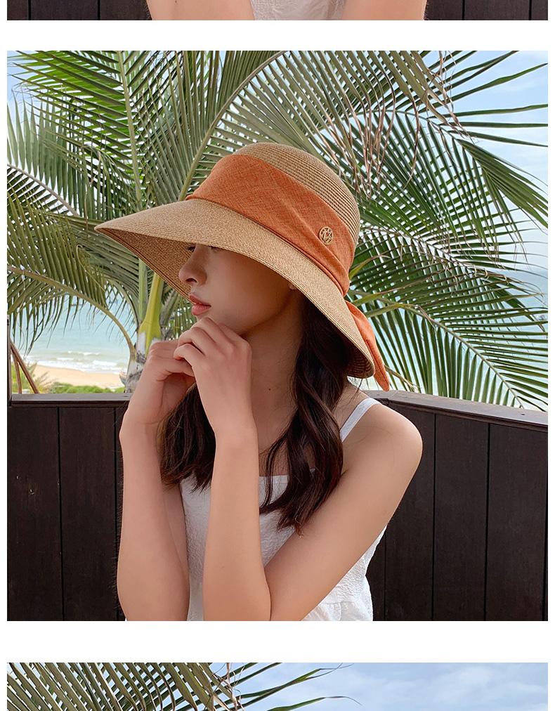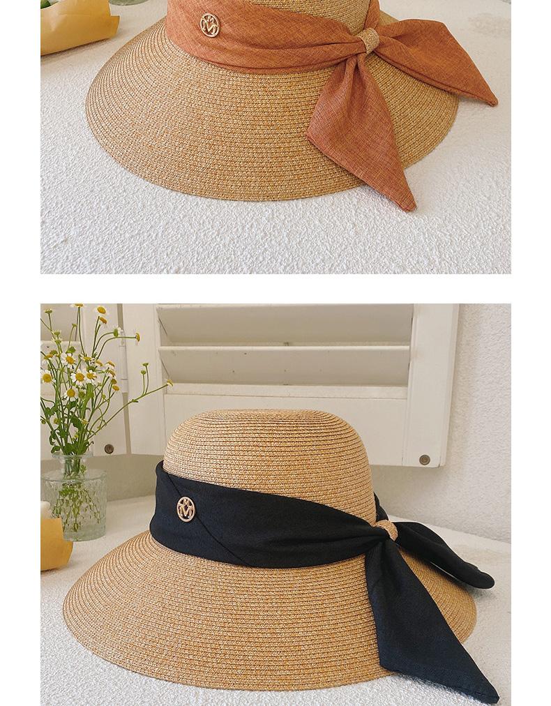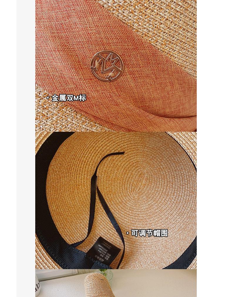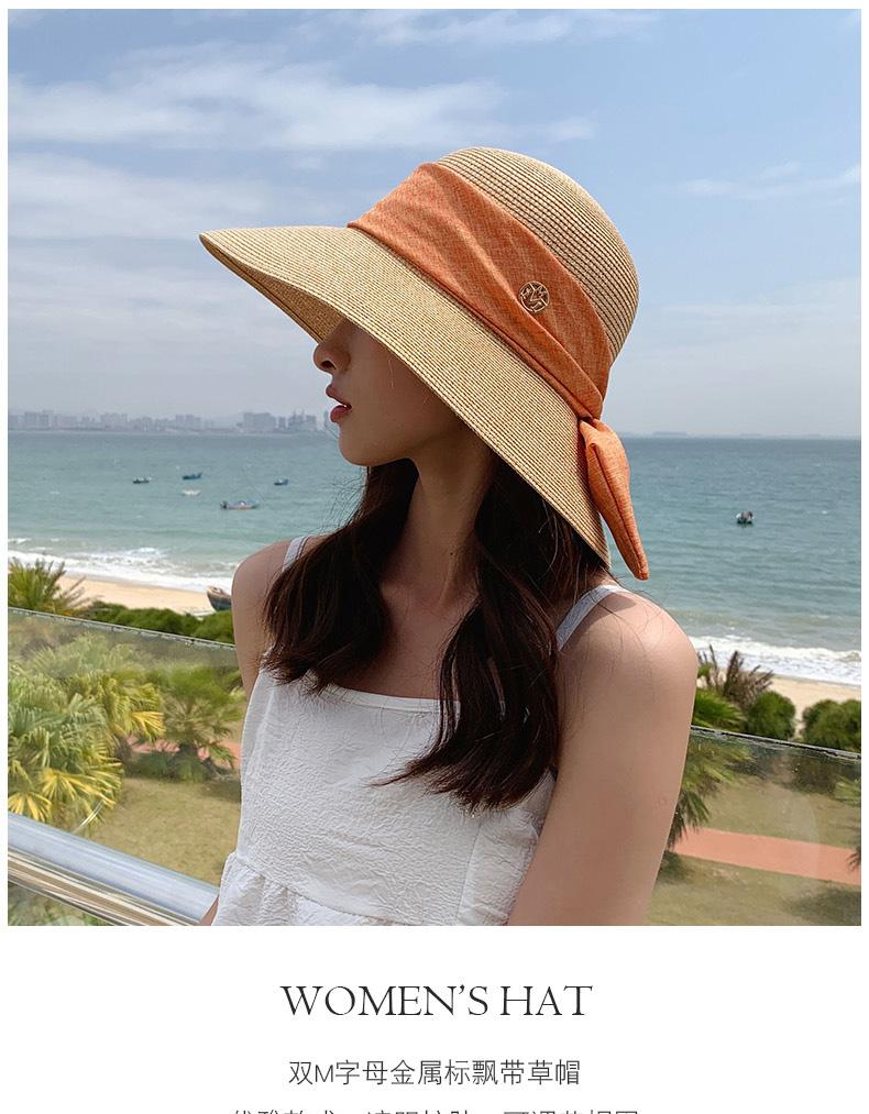 Double M label Ribbon Straw Hat-khaki, Double M label Ribbon Straw Hat-Orange, Double M label Ribbon Straw Hat...