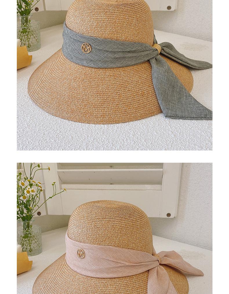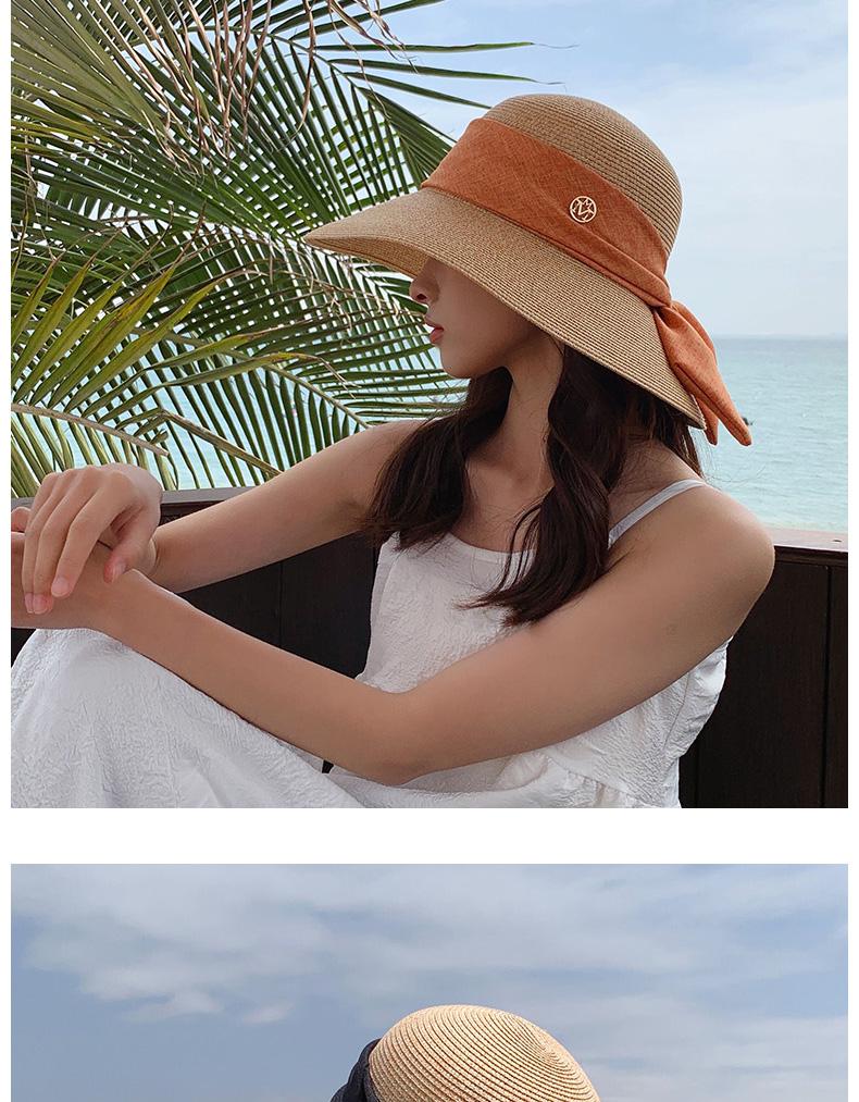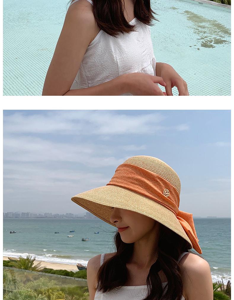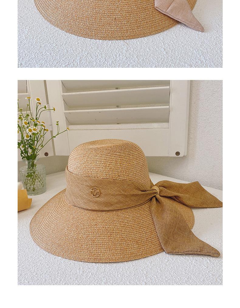 Double M label Ribbon Straw Hat-khaki, Double M label Ribbon Straw Hat-Orange, Double M label Ribbon Straw Hat...