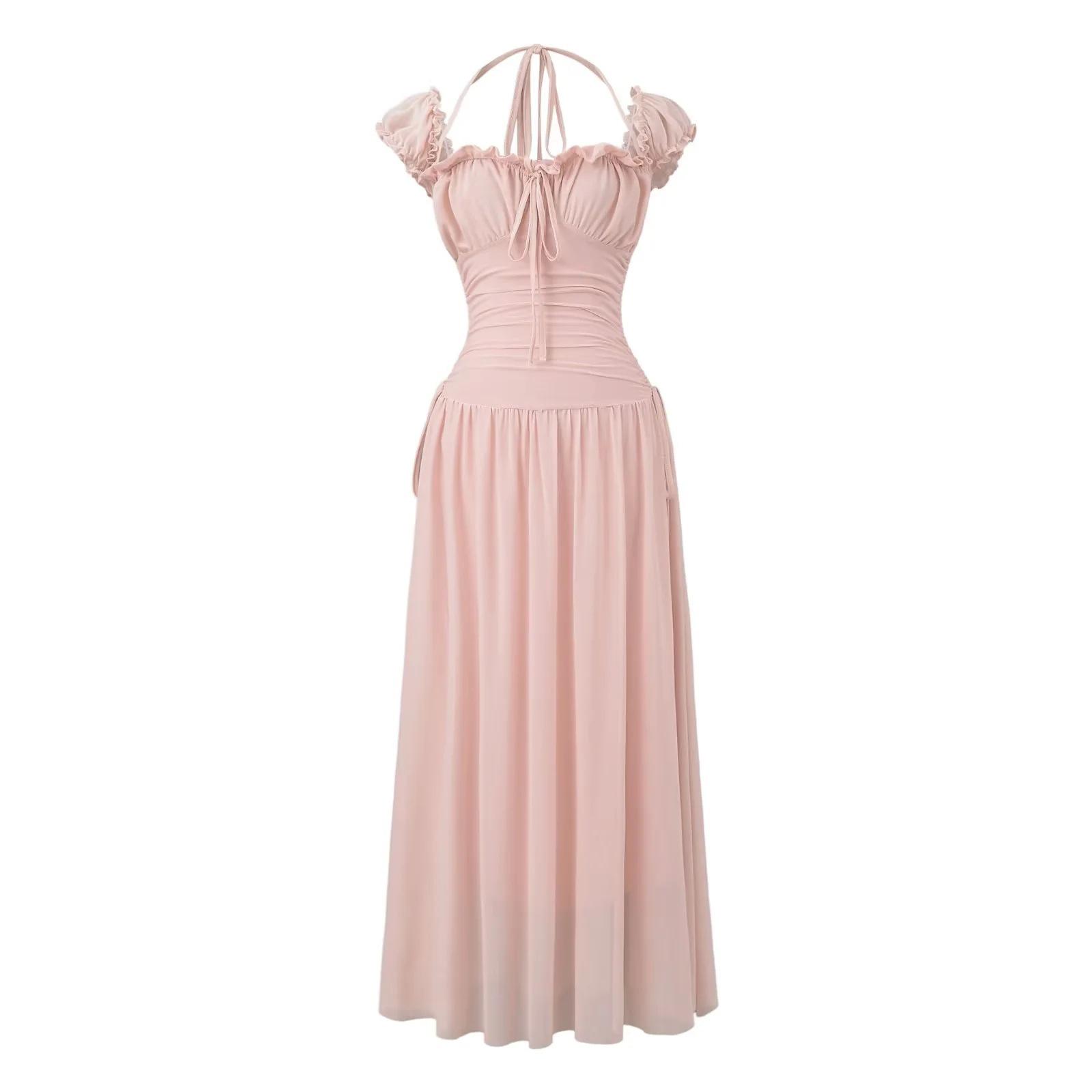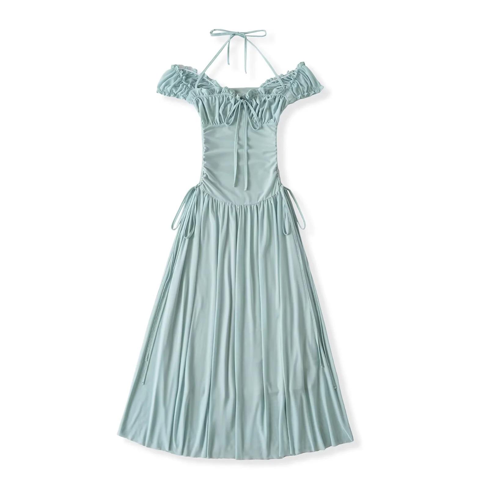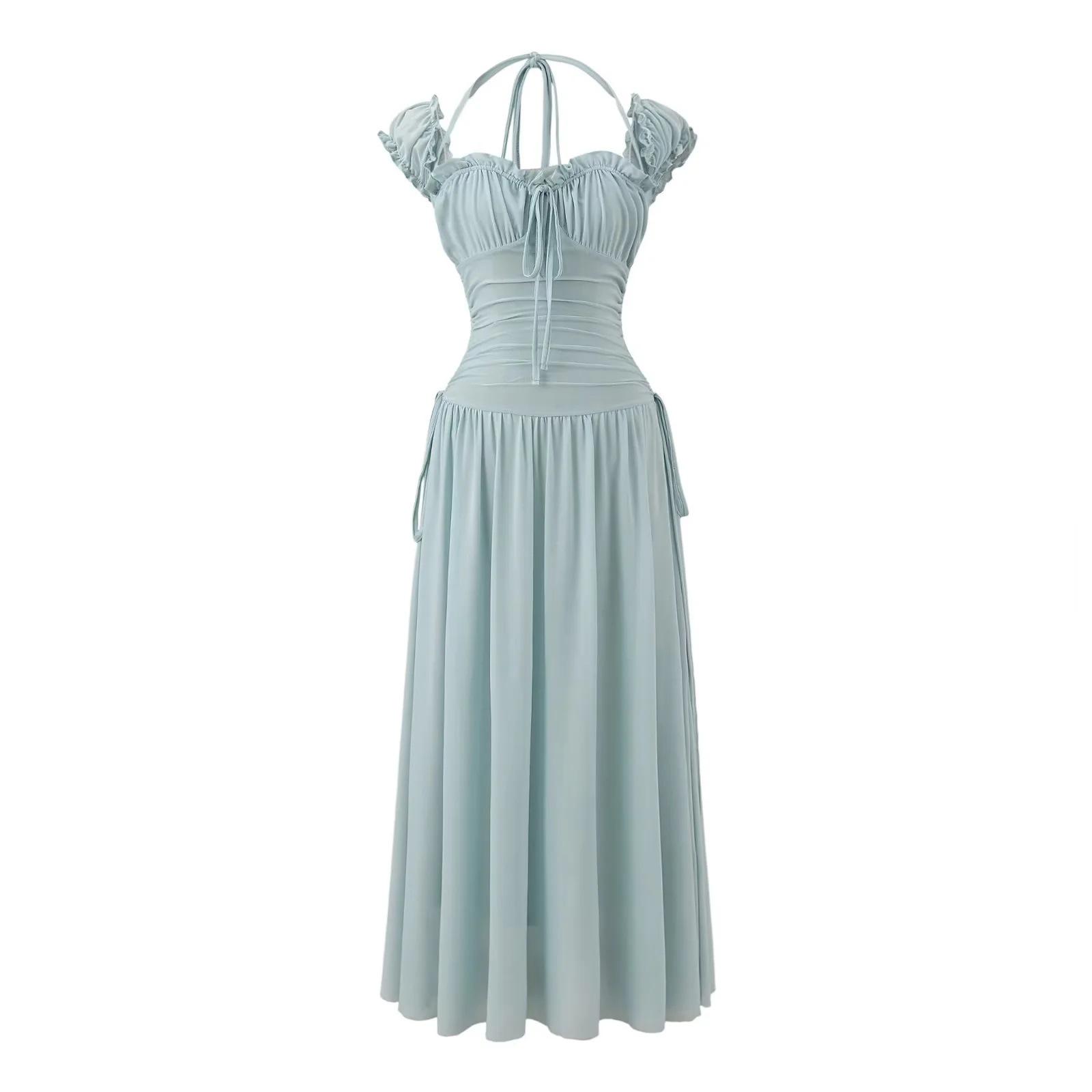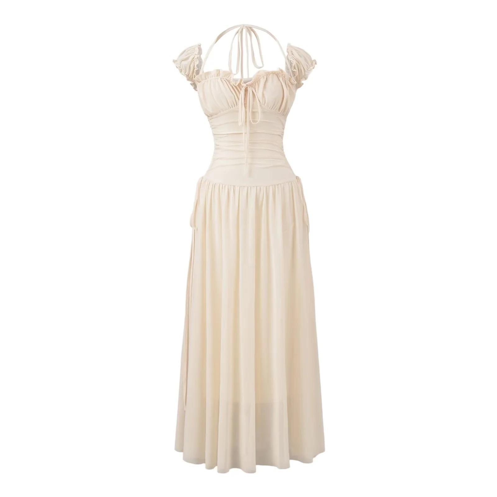 Vestido Halter con Volantes Estilo Francés Puro Deseo para Mujer, Vestido Largo de Verano con Cordón en la Cintura Adelgazante para Vacaciones