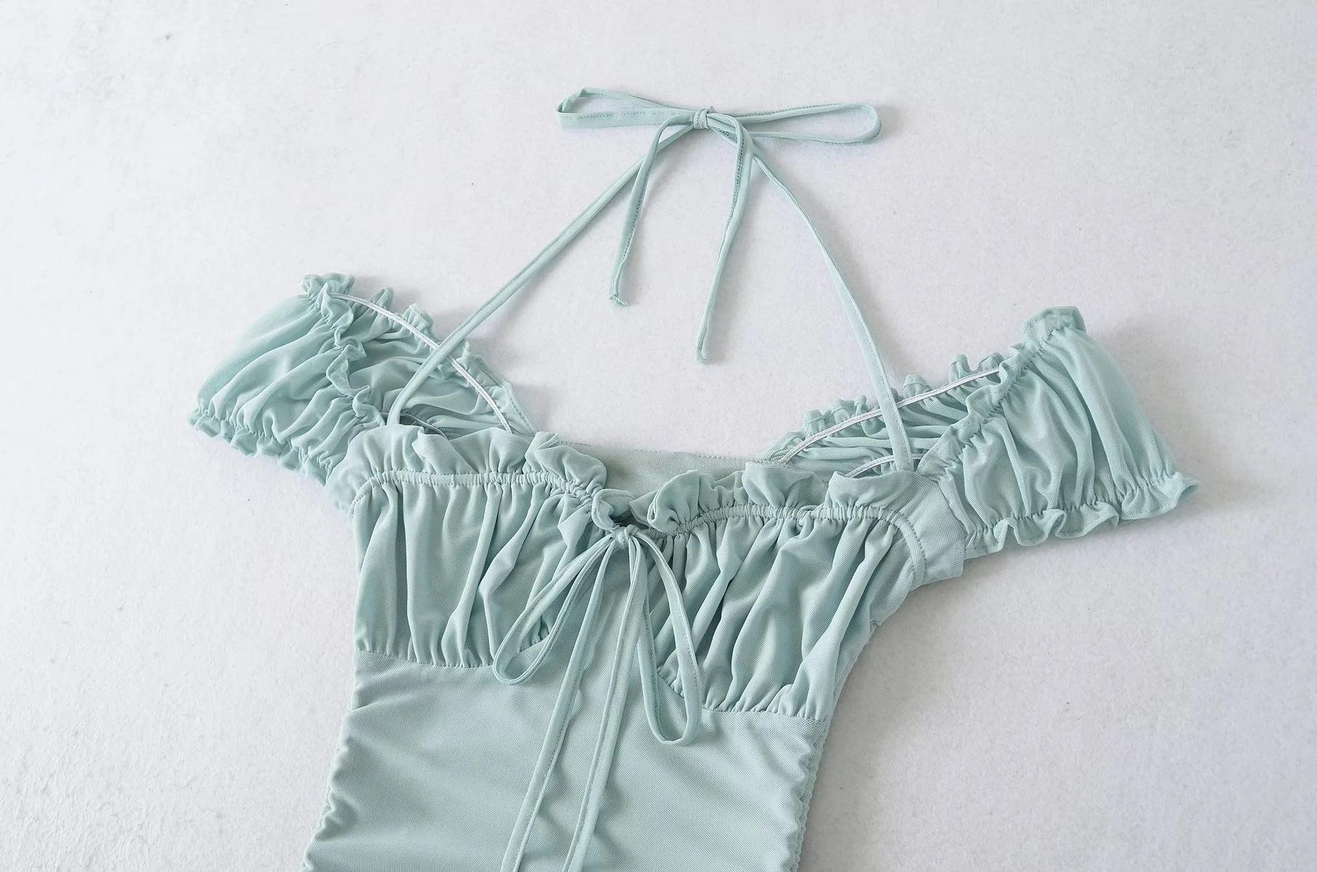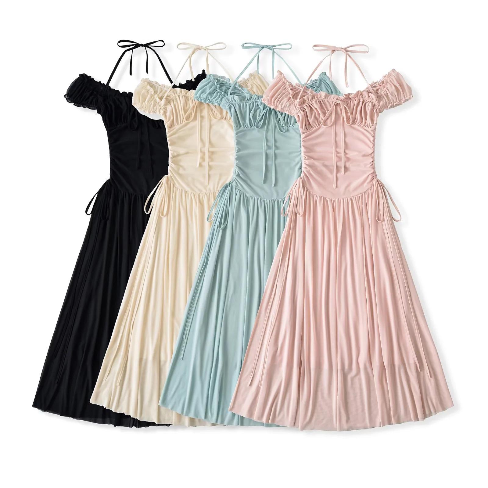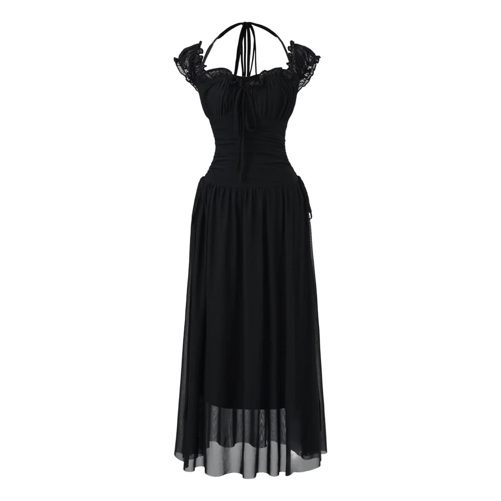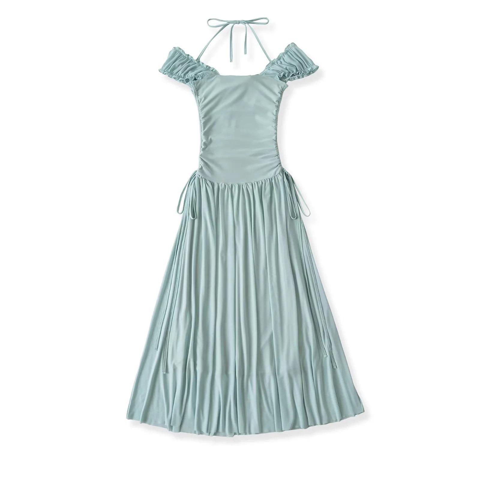 Vestido Halter con Volantes Estilo Francés Puro Deseo para Mujer, Vestido Largo de Verano con Cordón en la Cintura Adelgazante para Vacaciones