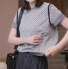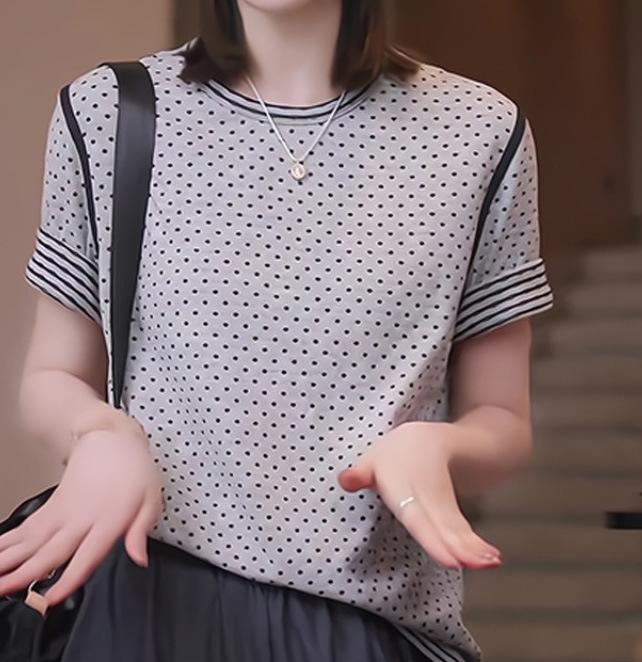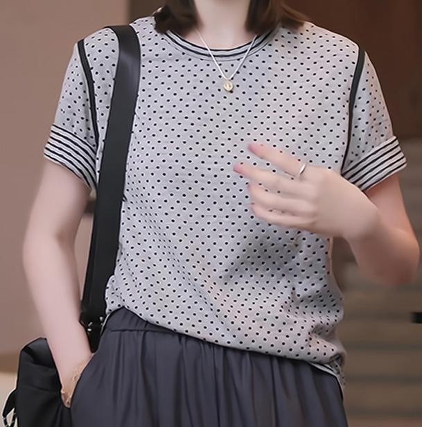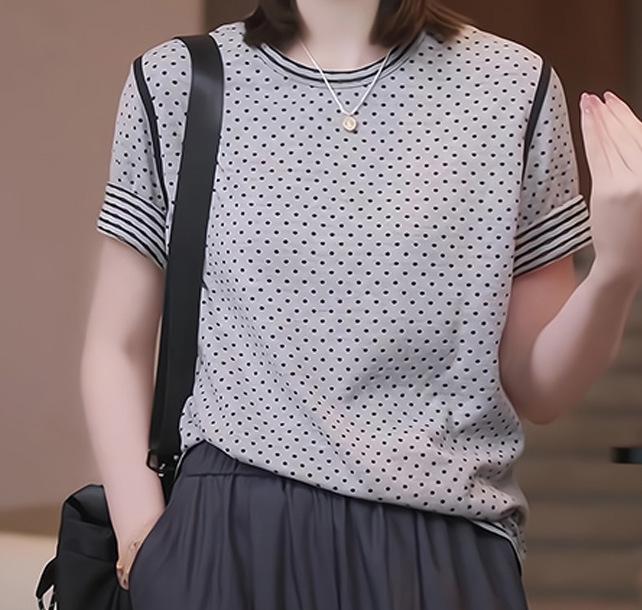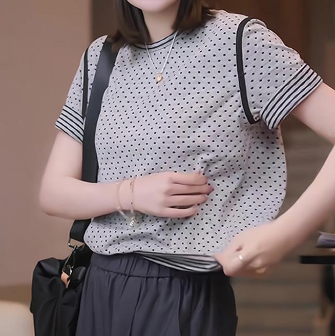 Playera Casual de Hombro Derecho Diseño de Lunares Cuello Redondo Jersey Camiseta Básica Moda Casual 2025 Verano Top de Manga Corta para Mujer