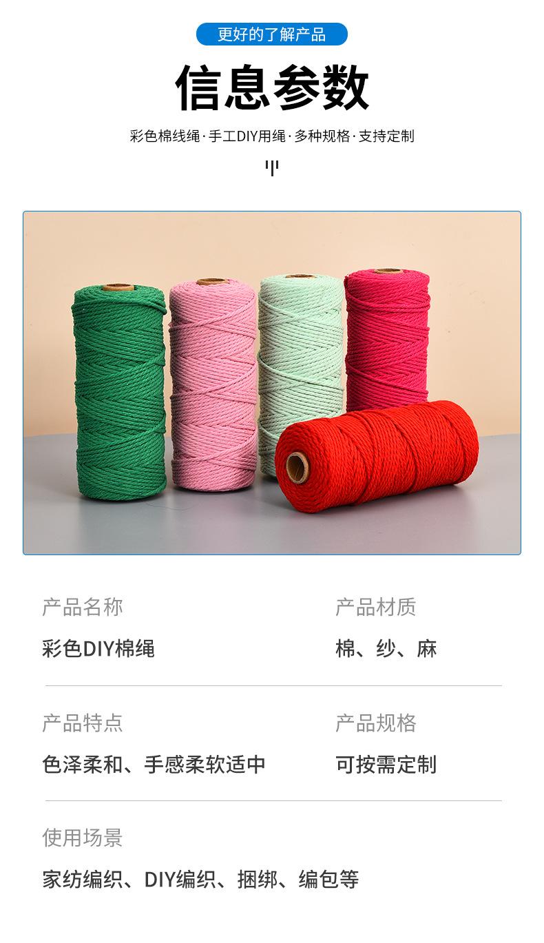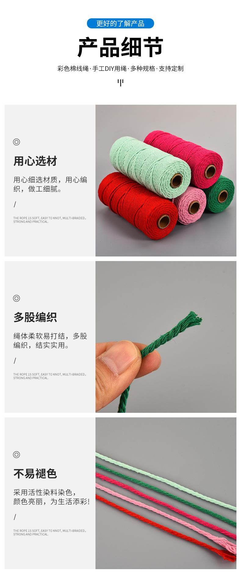 Cuerda de Algodón Navideña Colorida de 3 mm Transfronteriza de Amazon Hecha a Mano DIY Hilo Trenzado Etiqueta de Ropa Cuerda de Algodón