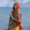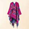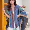 Chal Étnico de Viaje para Primavera para Mujer, Suéter Cálido Irregular Liso con Flecos, Bufanda con Capa y Capa