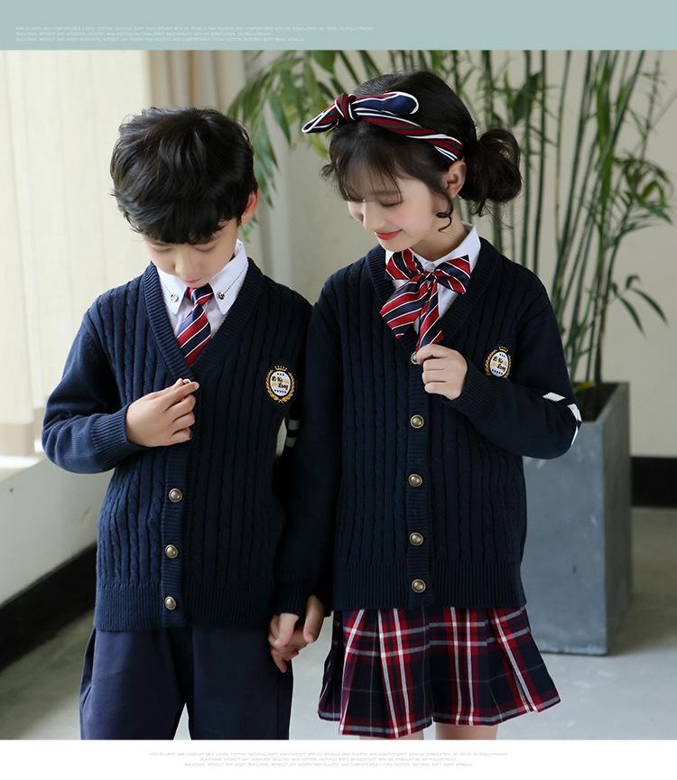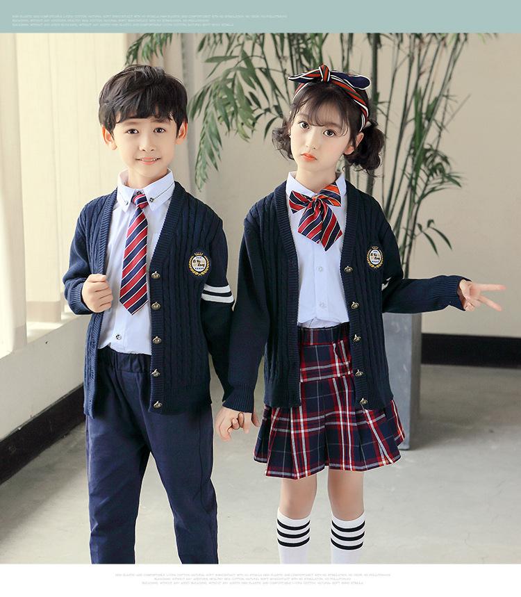 Ropa de Jardín de Niños Traje de Primavera y Otoño Nuevo Uniforme Escolar de Otoño para Niños Suéter de Estilo Británico Conjunto de Tres Piezas Ropa de Clase para Estudiantes de Primaria