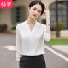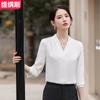 Camisa Blanca Cuello en V para Mujer Primavera y Otoño 2025 Nueva Ropa de Trabajo Antiarrugas Elegante Blusa Profesional de Chifón con Cuello en V y Manga Larga