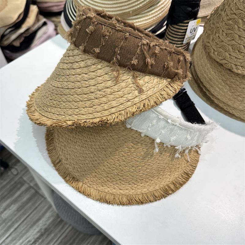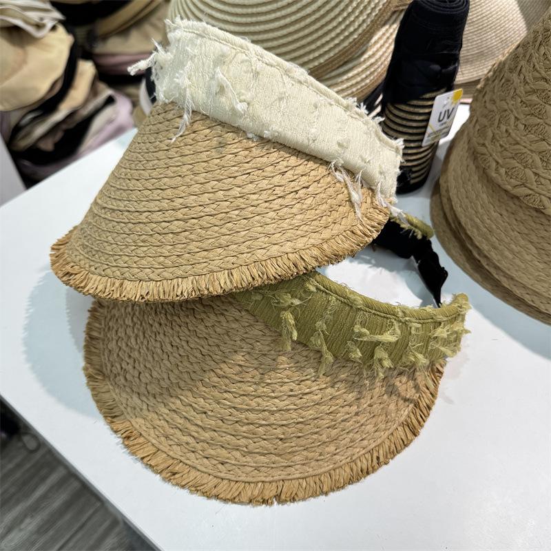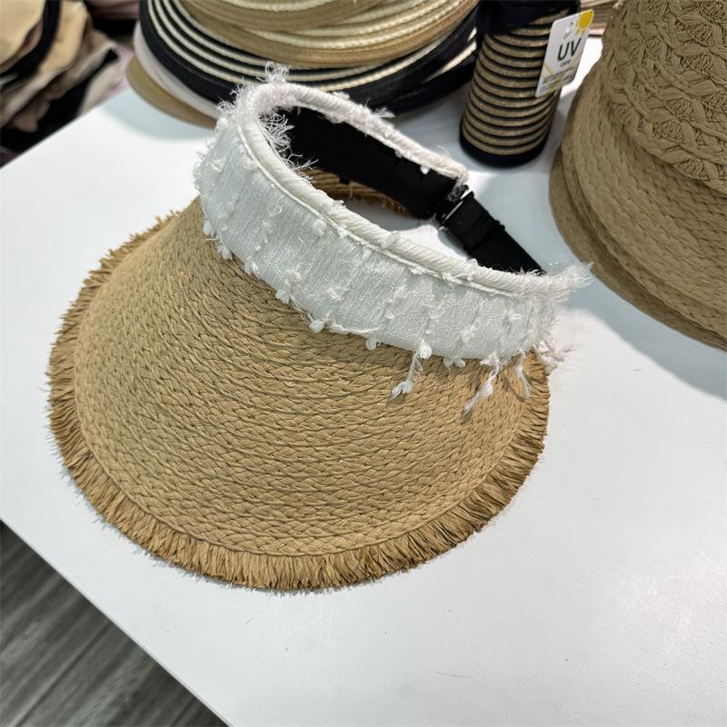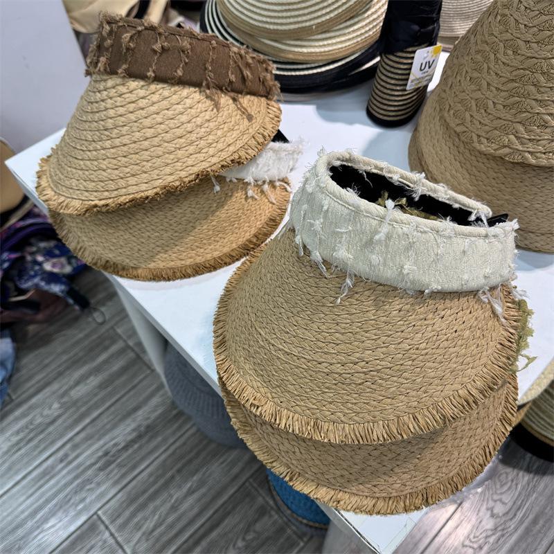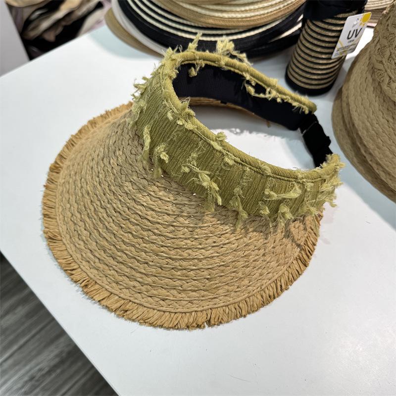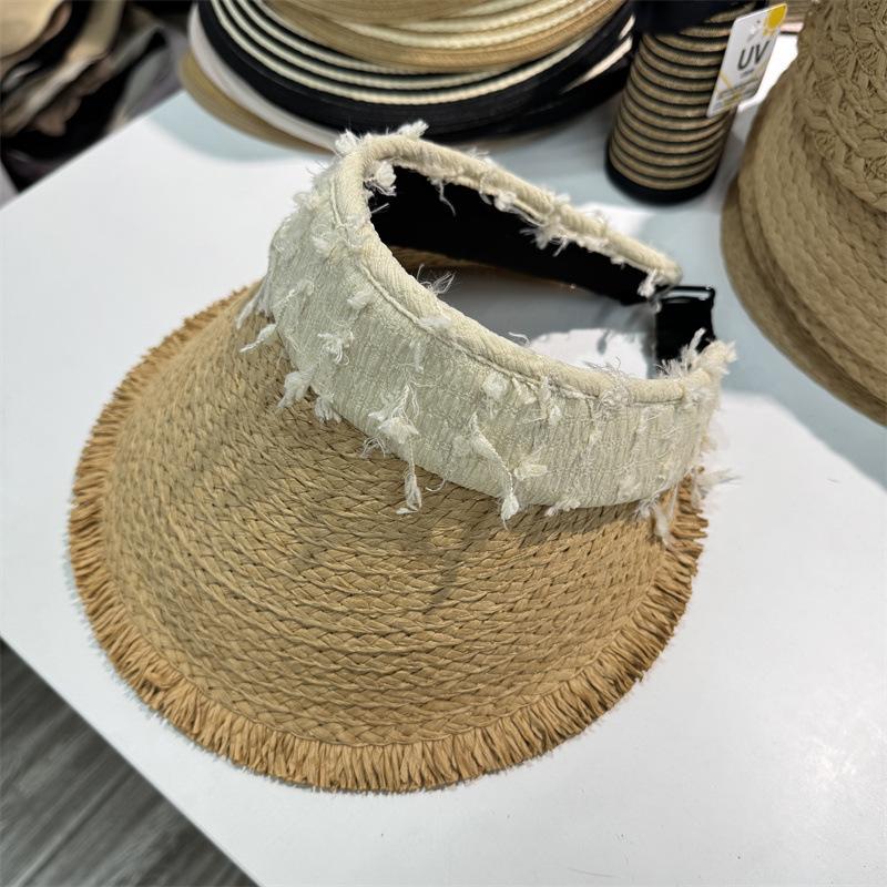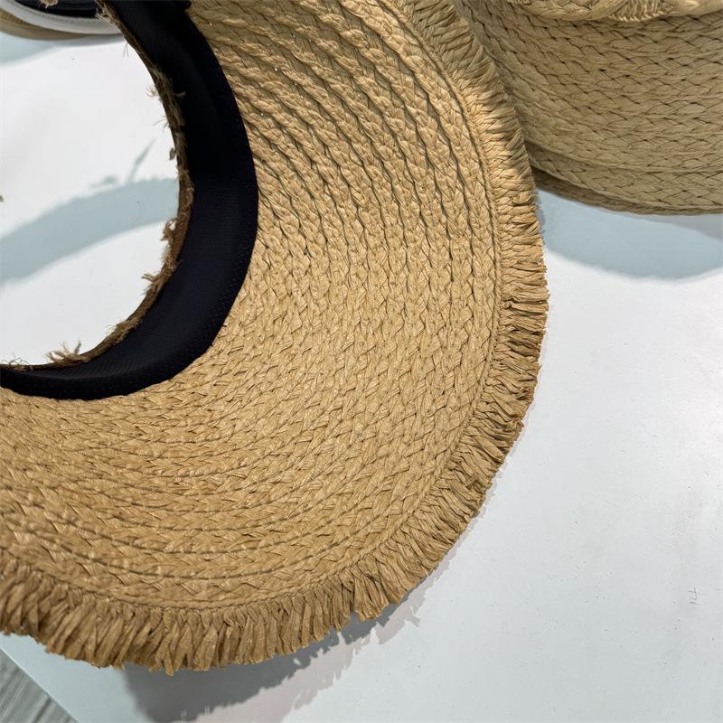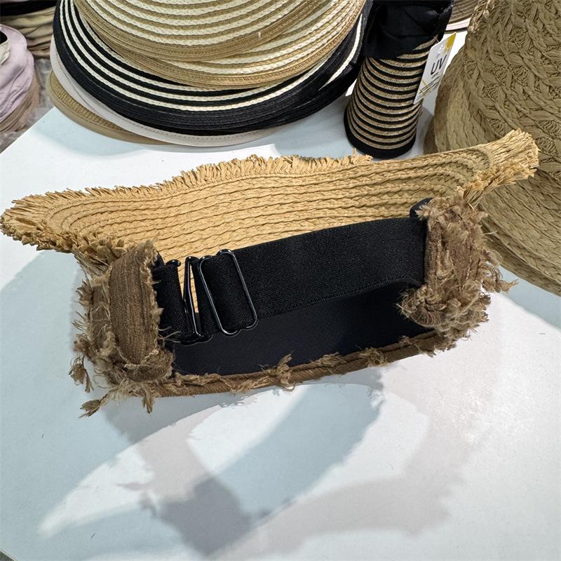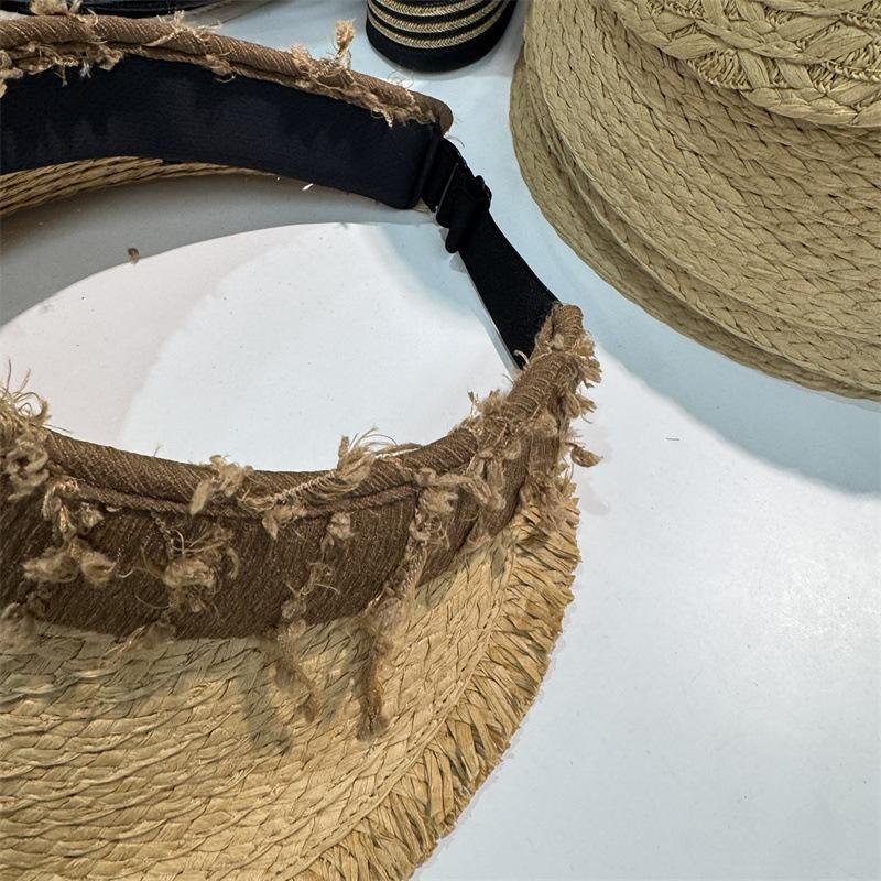 Sombrero de Paja para Mujer de Copa Vacía Verano 2025 Nuevo Sombrero para Vacaciones en la Playa y la Costa Protección Solar Ala Ancha Diadema Sombrero de Sol de Paja