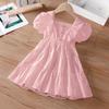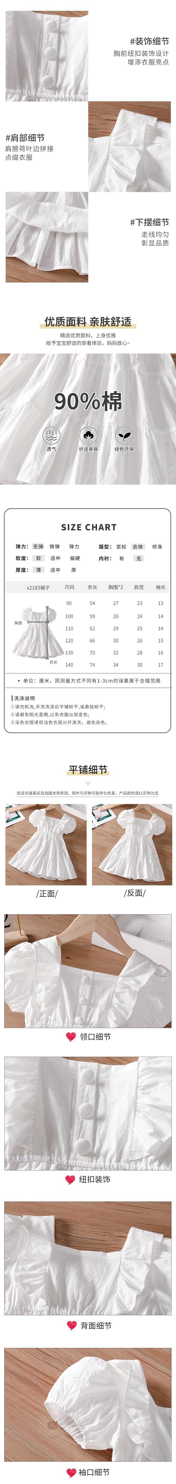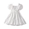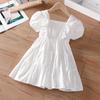 Vestido Coreano para Niñas Verano Manga Corta Volantes Falda Blanca 2021 Nuevo Vestido de Princesa con Cintura para Niños
