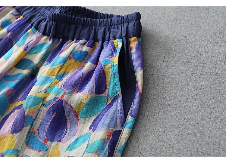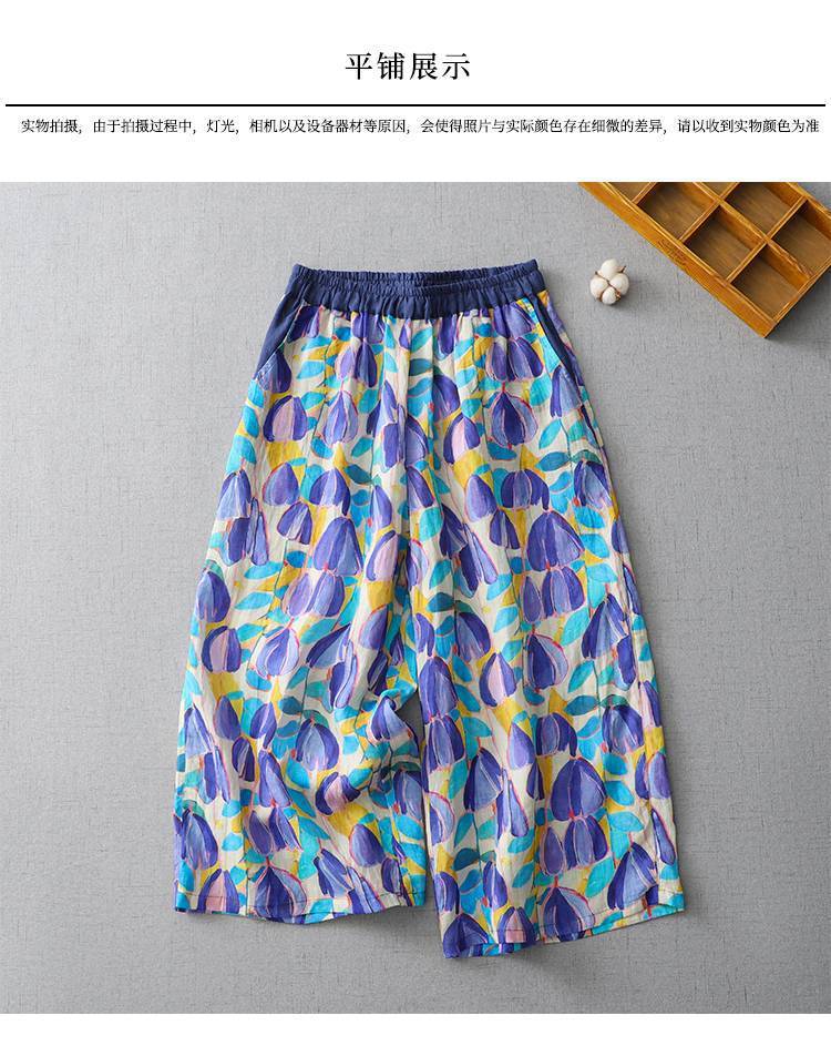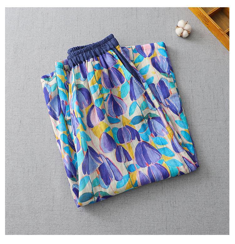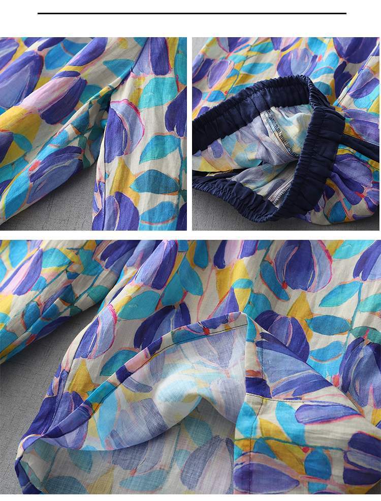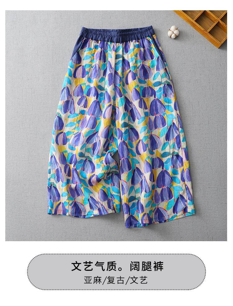 Pantalones Artísticos de Ramio de Verano para Mujer 2025 Nuevo Estilo Elegantes Frescos Empalmados Sueltos Delgados Pantalones de Pierna Ancha para Mujer