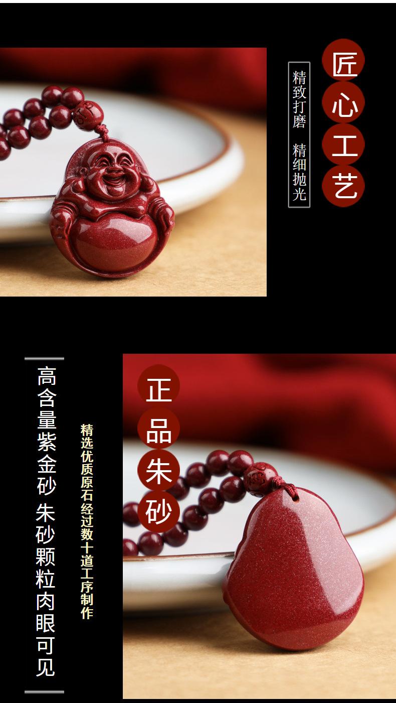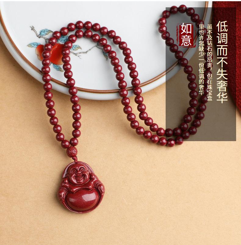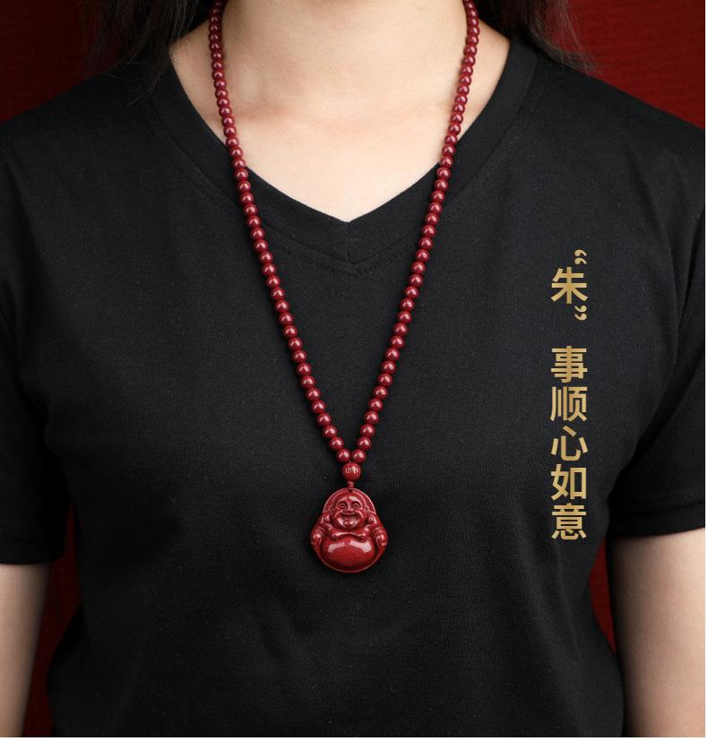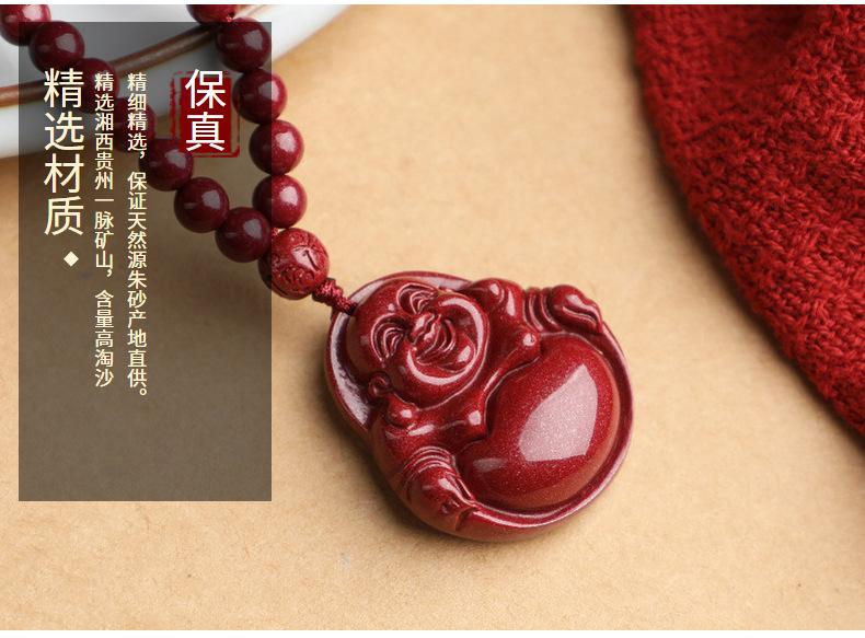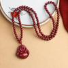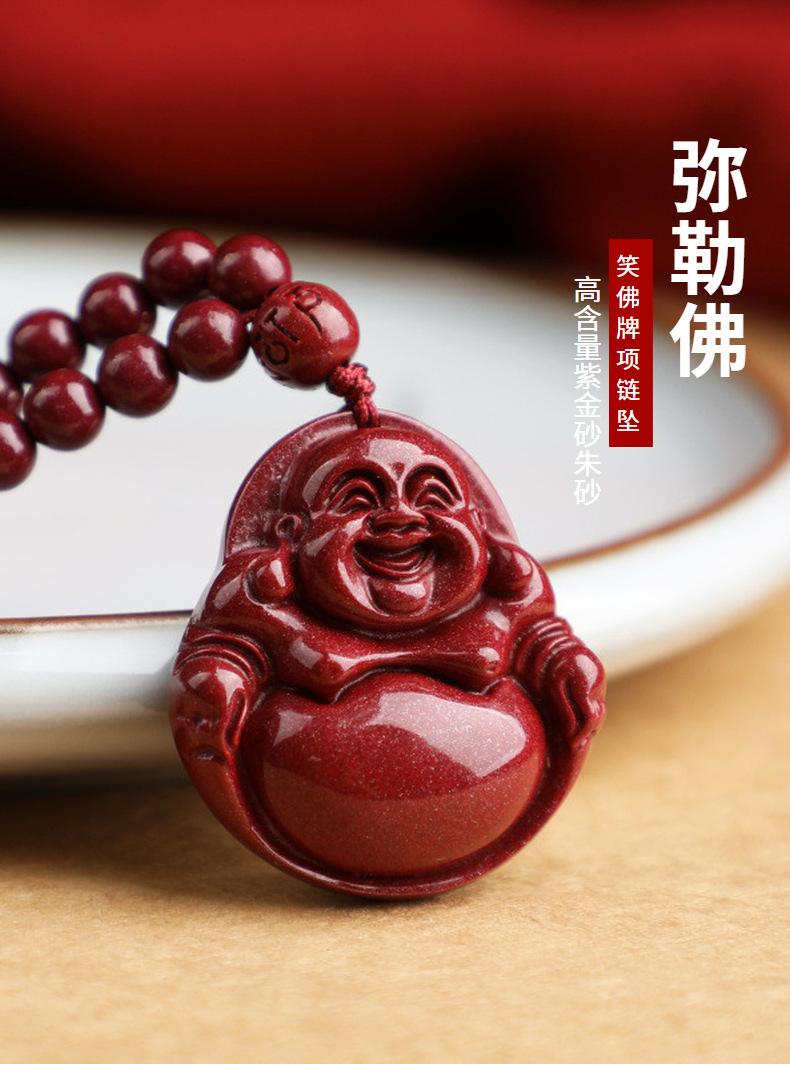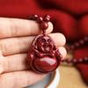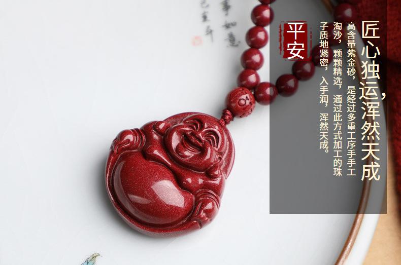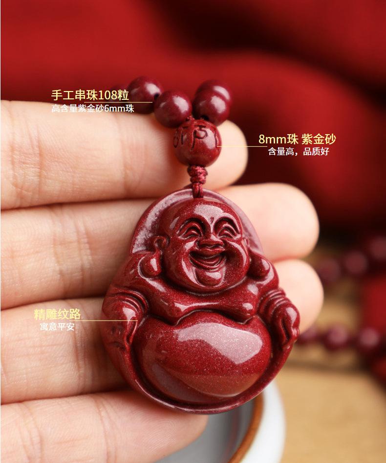 Collar de cinabrio natural en bruto de alto contenido arena de oro púrpura Buda Maitreya collar Buda sonriente cadena de 108 cuentas colgante año de nacimiento para hombres y mujeres
