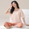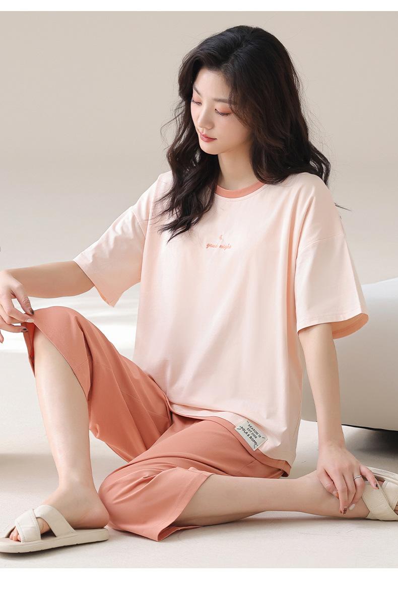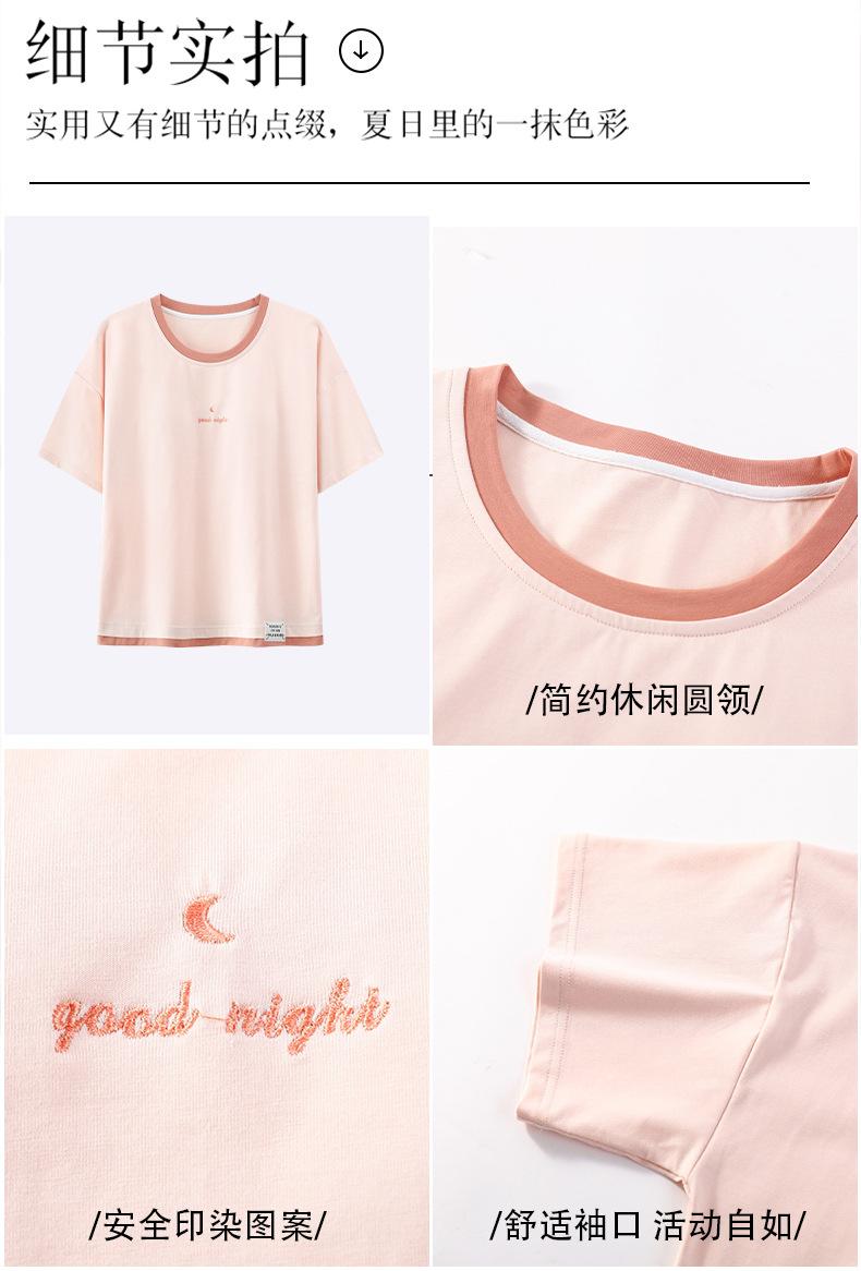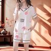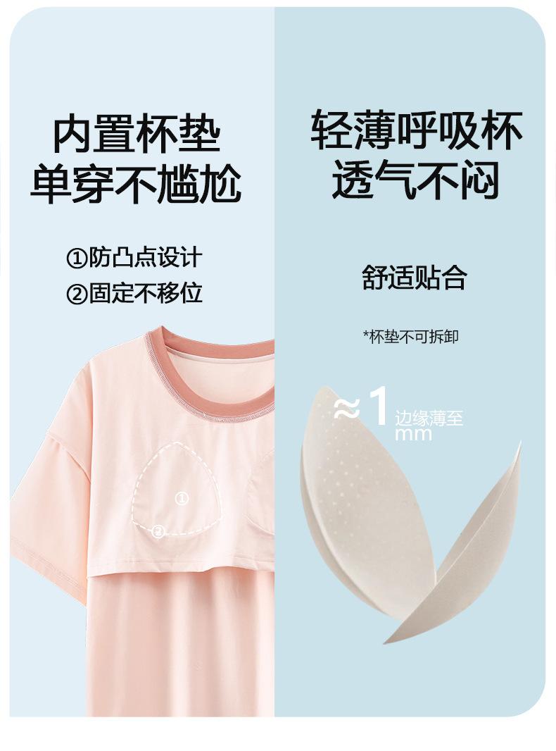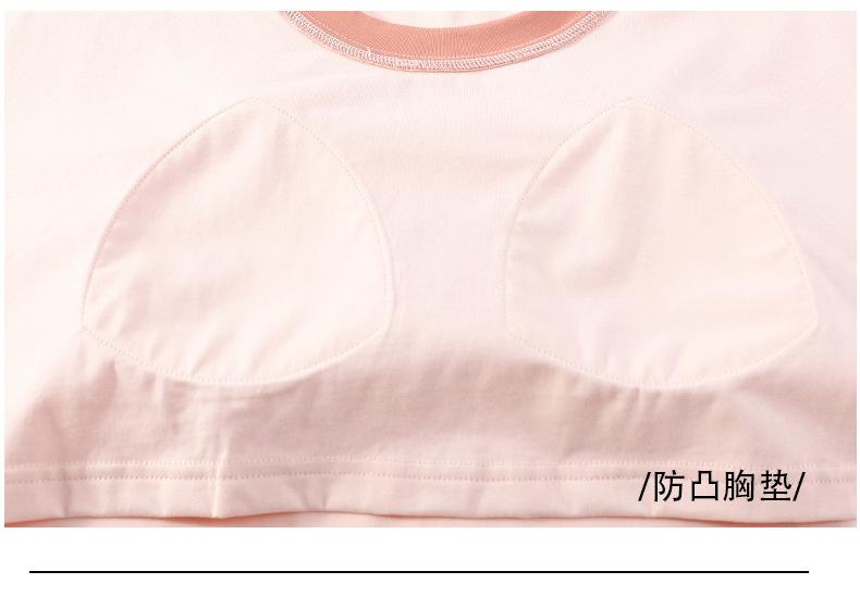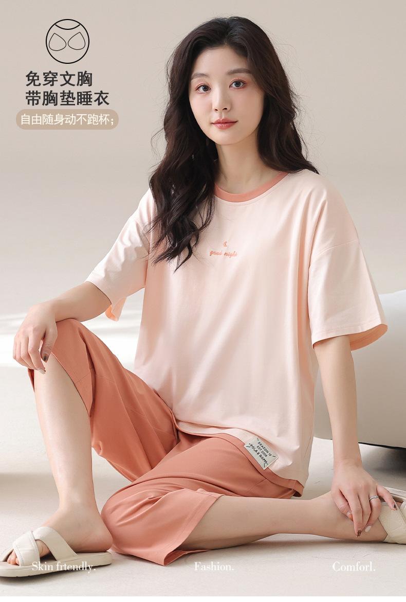 Pijama de Verano de Algodón Puro de Manga Corta para Mujer con Almohadillas para el Busto, Dulce Conjunto Casual de Casa de Dos Piezas Falsas que se Puede Usar en el Exterior