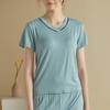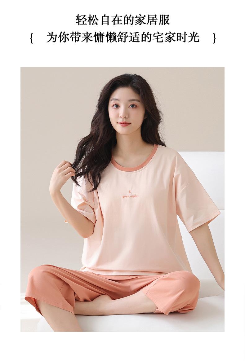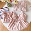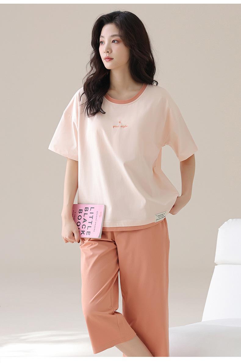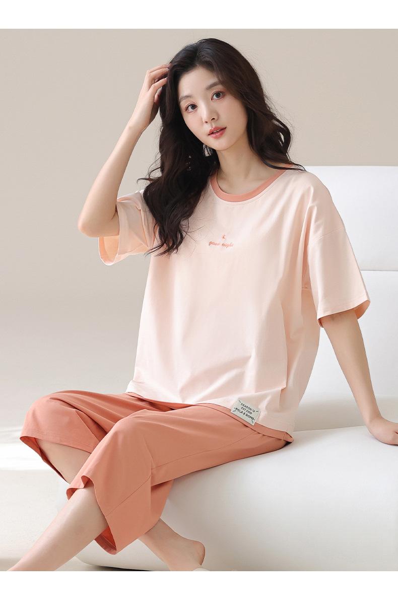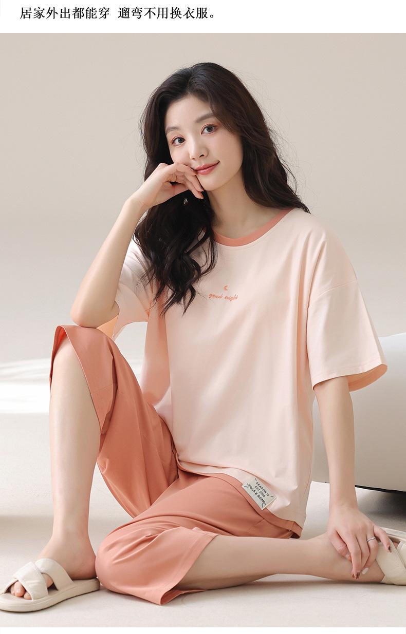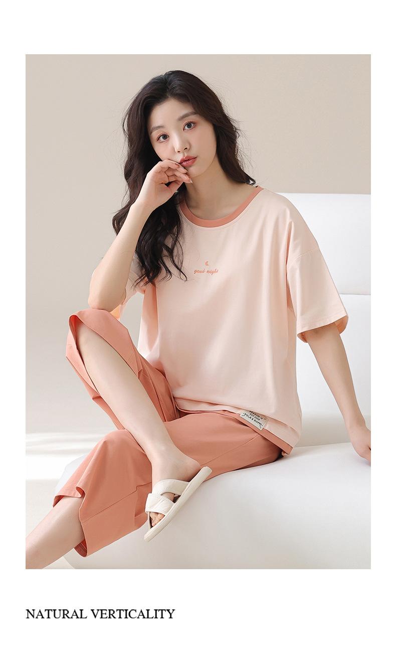 Pijama de Verano de Algodón Puro de Manga Corta para Mujer con Almohadillas para el Busto, Dulce Conjunto Casual de Casa de Dos Piezas Falsas que se Puede Usar en el Exterior