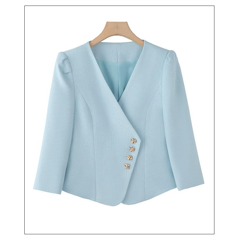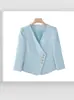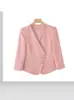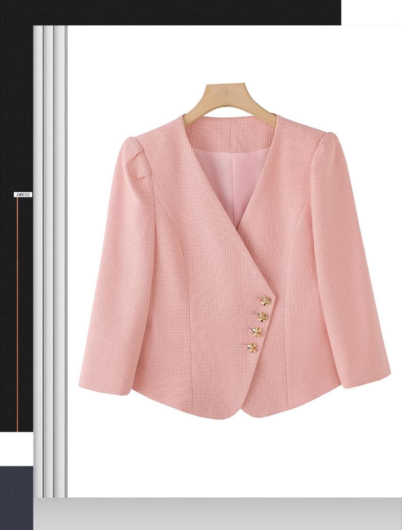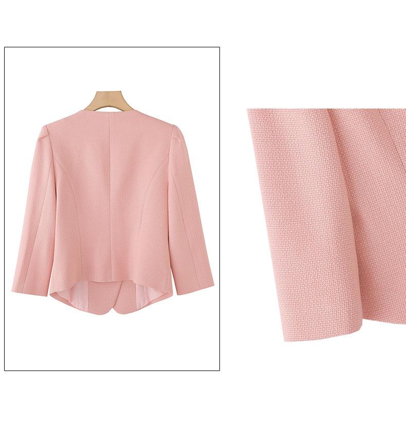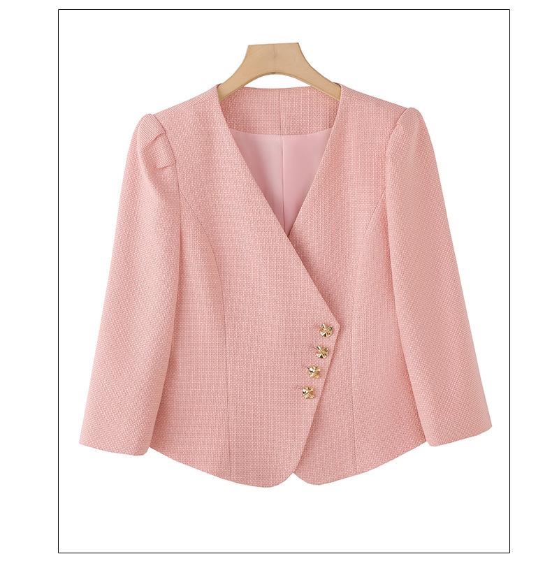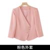 Chaqueta Casual Rosa de Cuello en V y Manga Larga para Mujer, Chaqueta Corta, Estilo Pequeño Aroma 2025 Primavera, Otoño e Invierno Nuevo Estilo