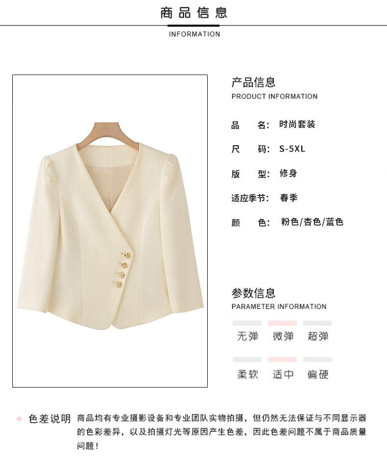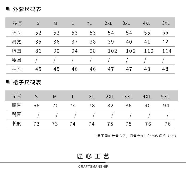 Pink one-piece jacket, Blue single jacket, Apricot single jacket, Pink jacket + skirt, Blue jacket + skirt, Ap...
