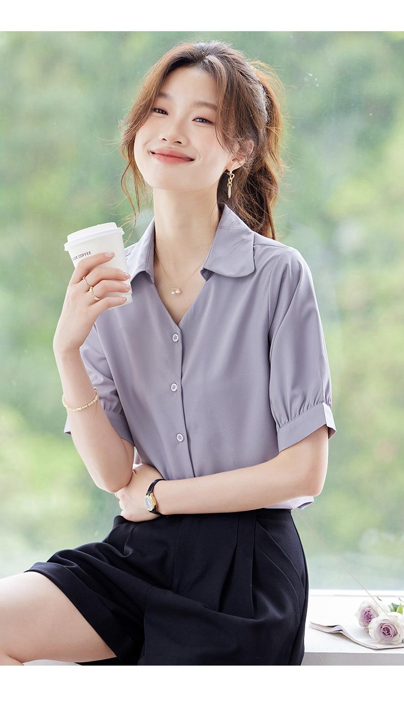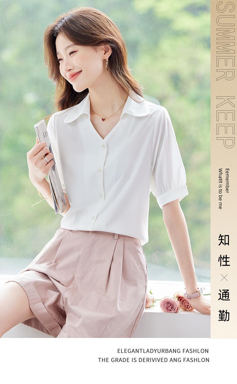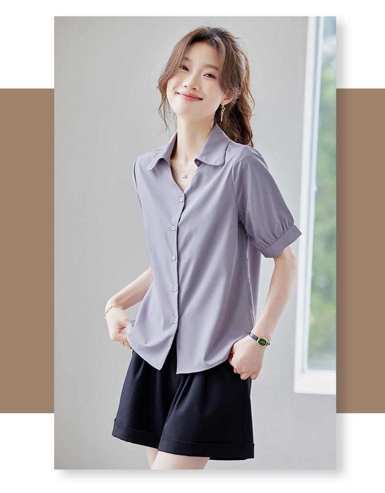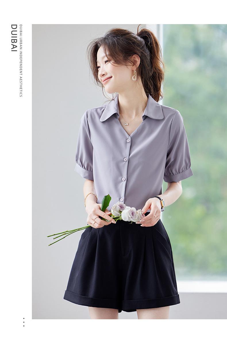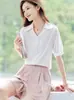 Camisa de Verano de Manga Corta con Solapa Camisa de Mujer 2025 Nuevo Ropa de Verano Simple Elegante para Viajar Profesional Casual Top