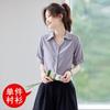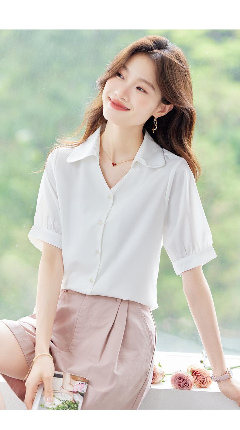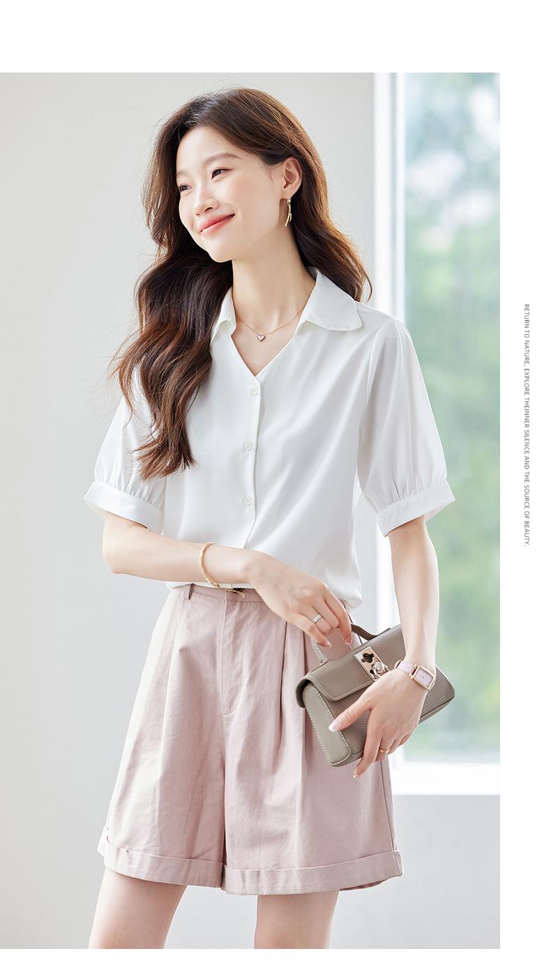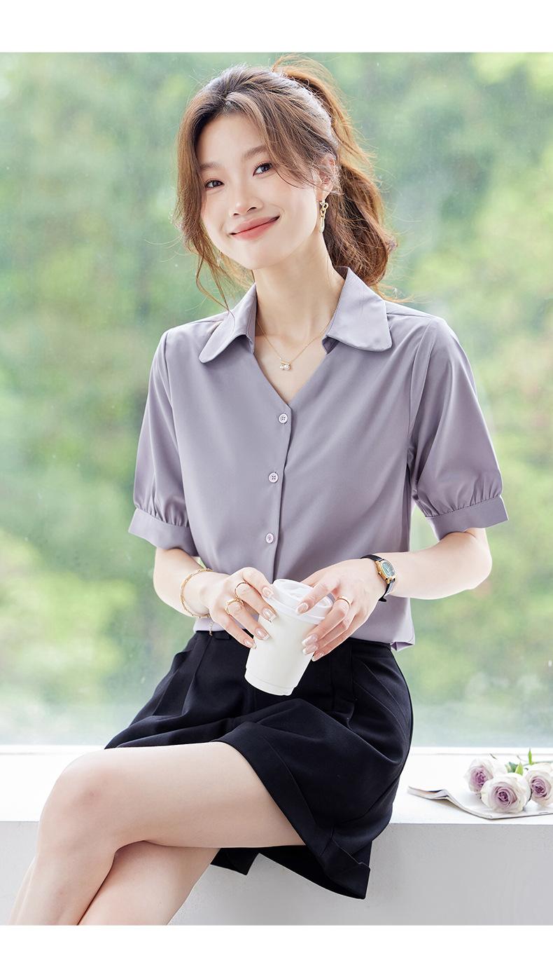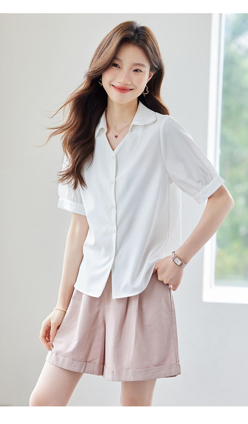 Camisa de Verano de Manga Corta con Solapa Camisa de Mujer 2025 Nuevo Ropa de Verano Simple Elegante para Viajar Profesional Casual Top