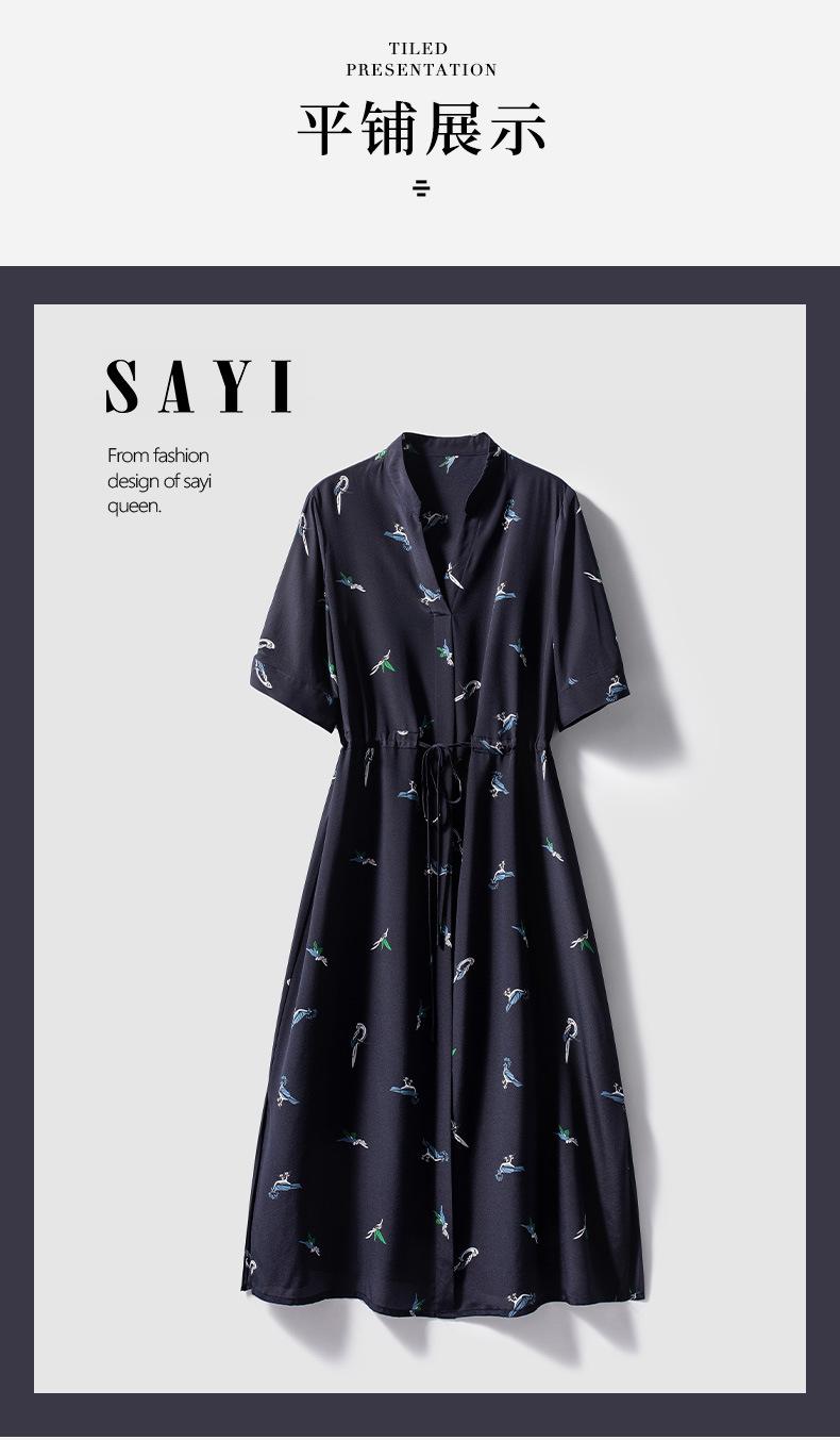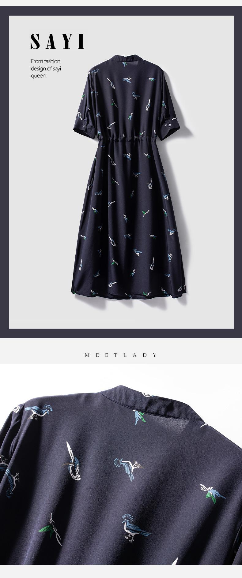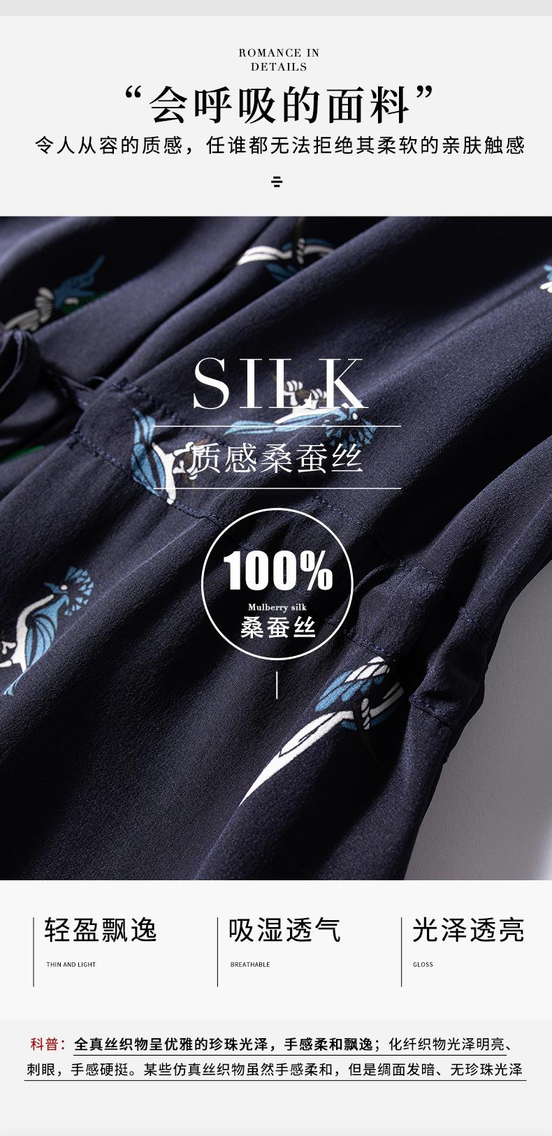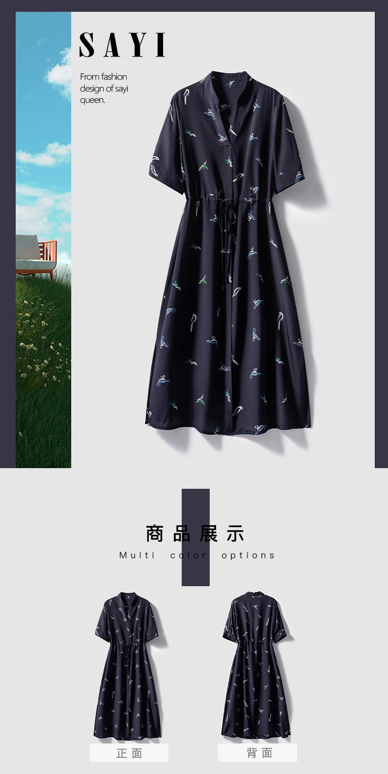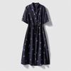 Vestido de Seda con Aspecto Adelgazante de Cintura para Mujer 2025 Verano Nuevo Elegante Cuello en V Azul Marino Estampado Seda de Morera Vestido de Mujer