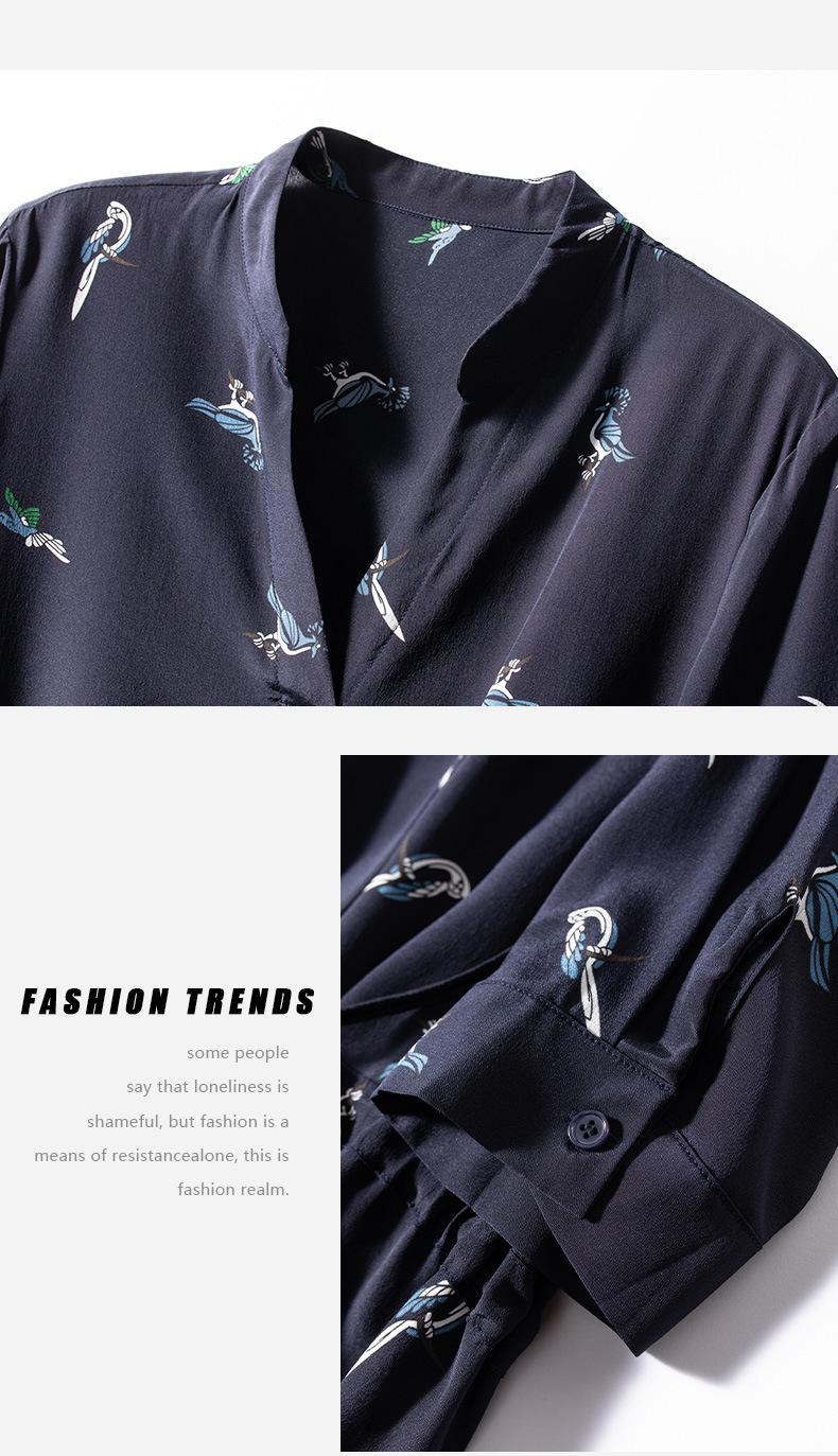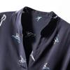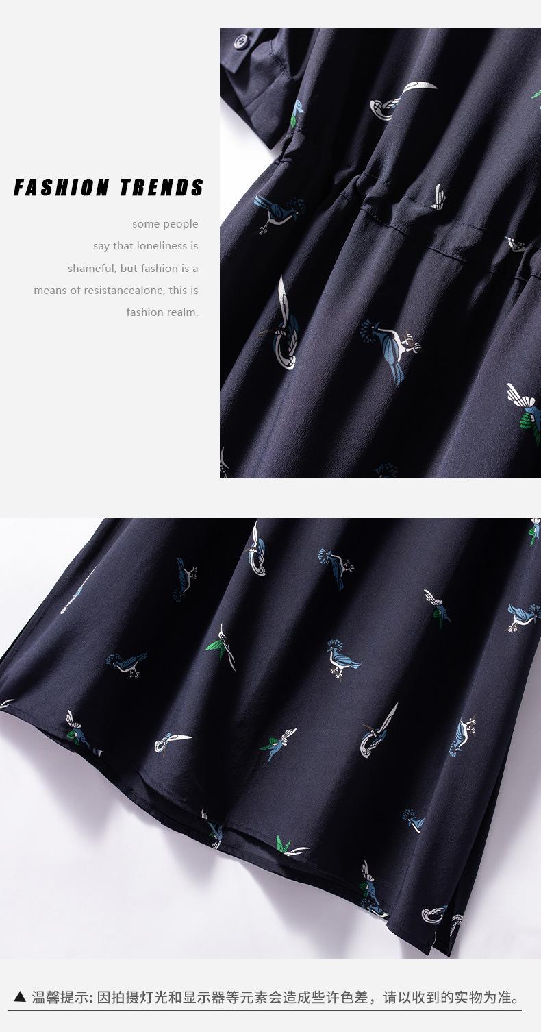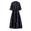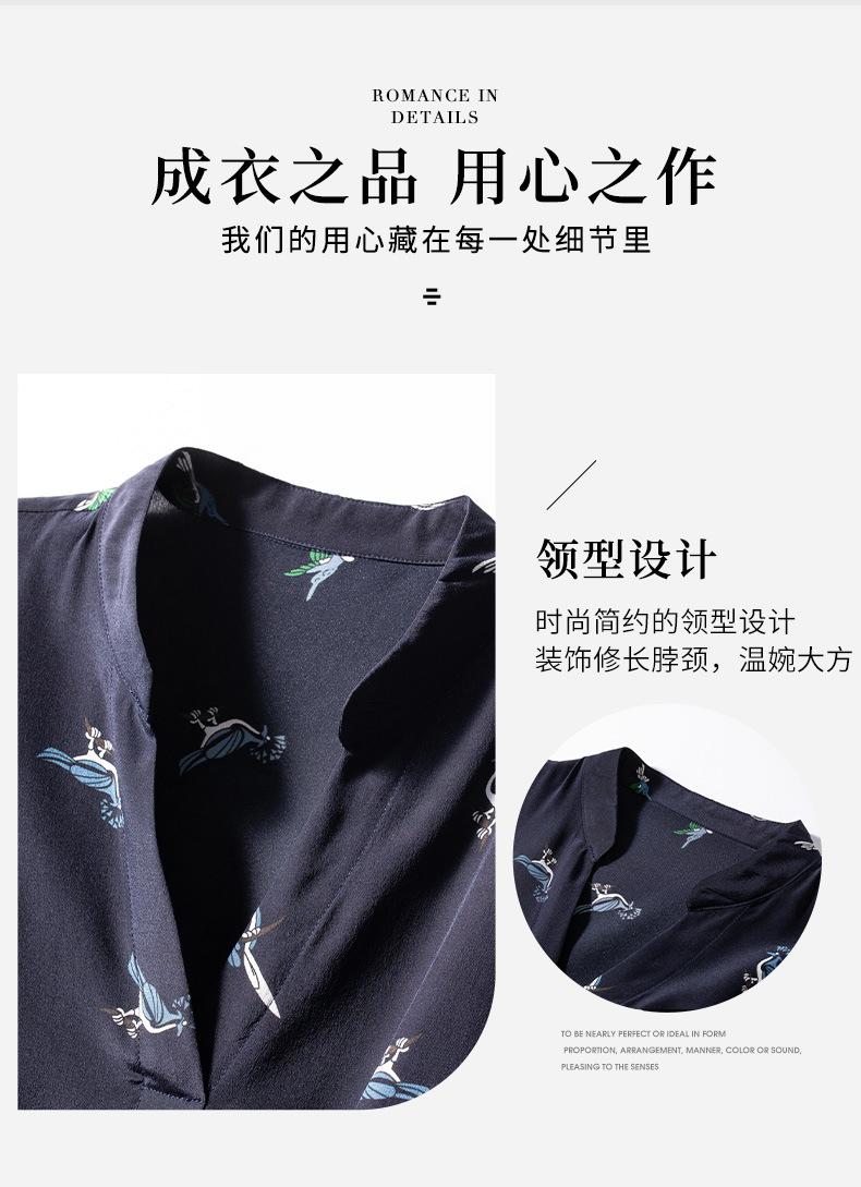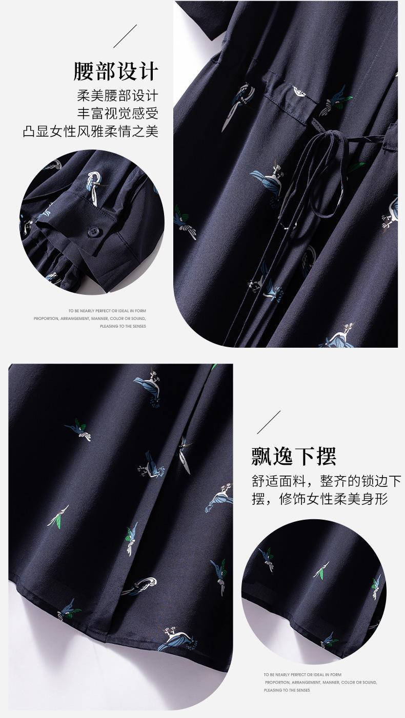 Vestido de Seda con Aspecto Adelgazante de Cintura para Mujer 2025 Verano Nuevo Elegante Cuello en V Azul Marino Estampado Seda de Morera Vestido de Mujer