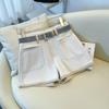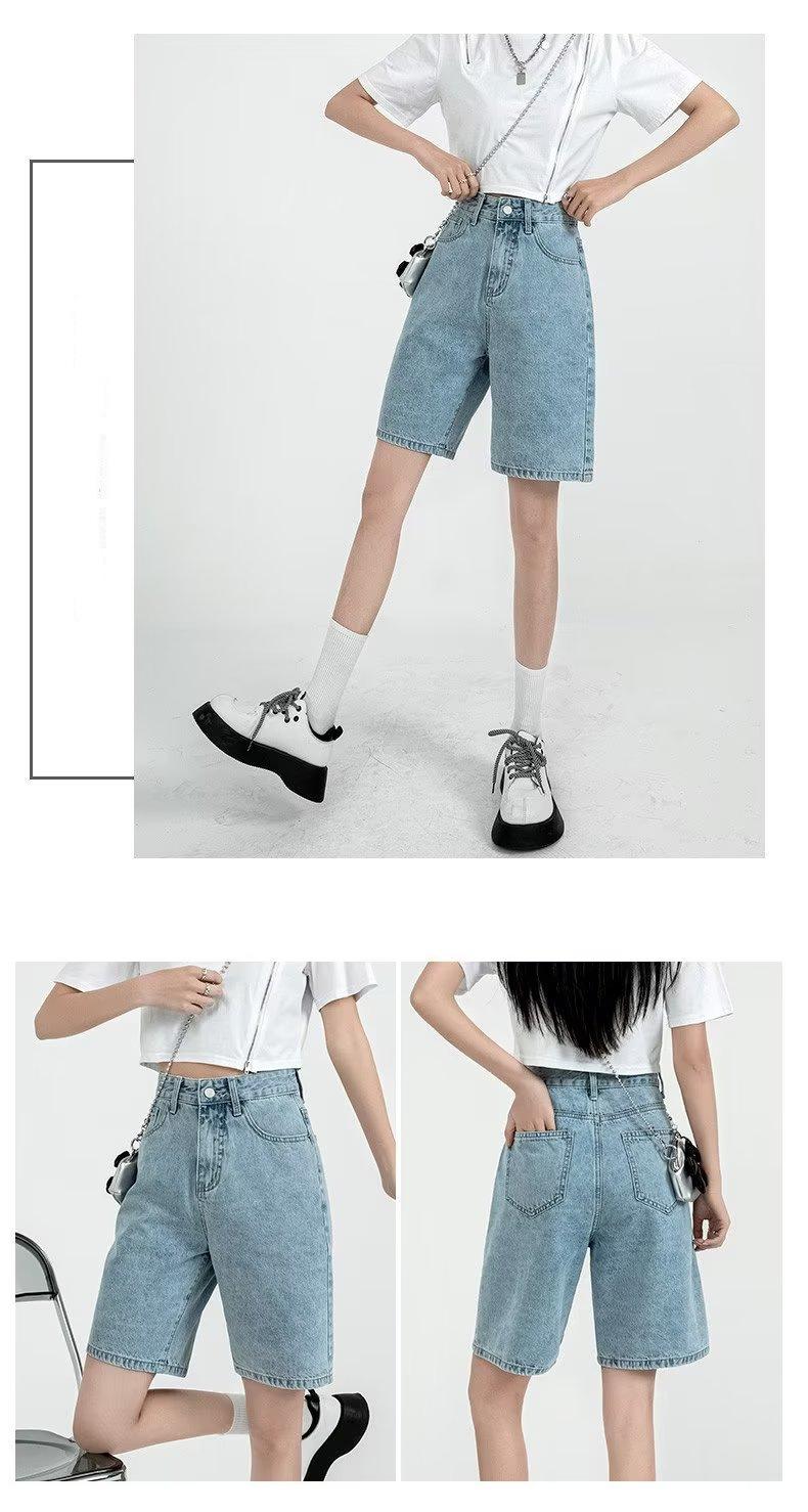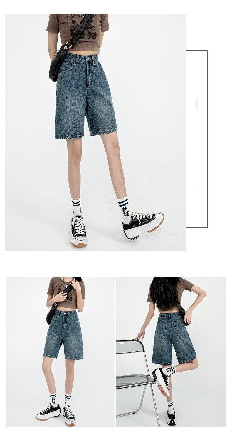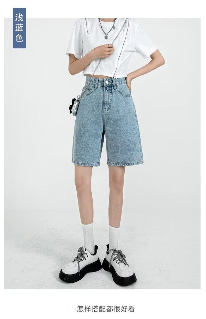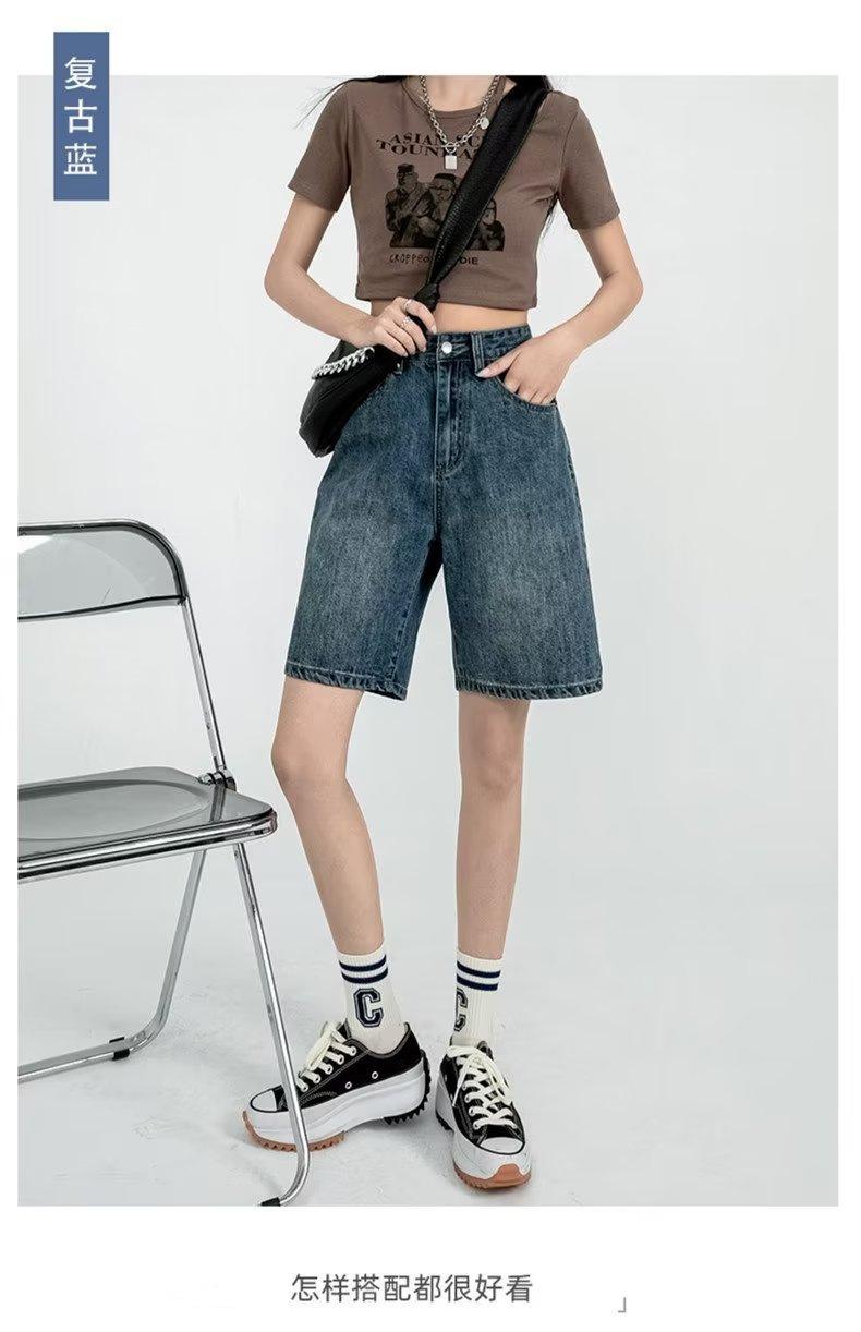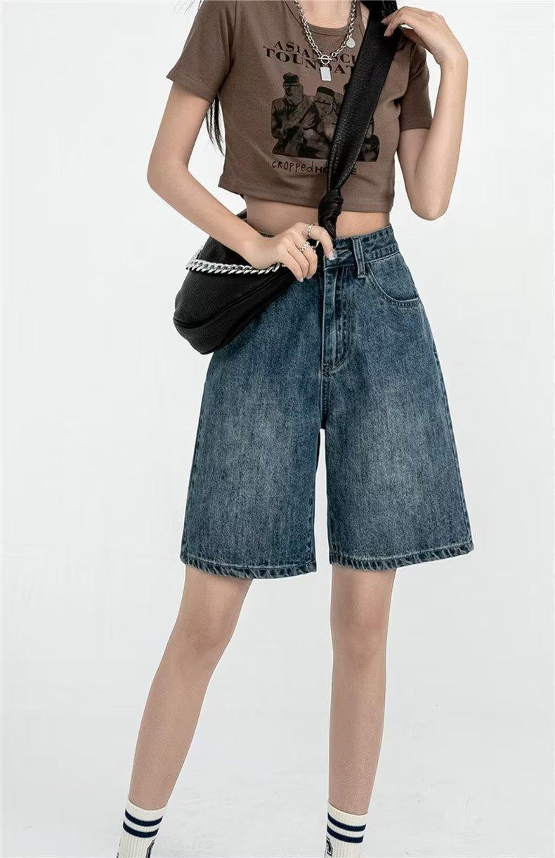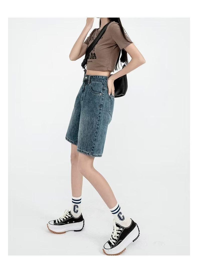 Shorts de mezclilla para mujer 2025 Verano Nuevo Pantalones Adelgazantes de Cintura Alta Estilo Pierna Ancha Verano Pantalones Delgados