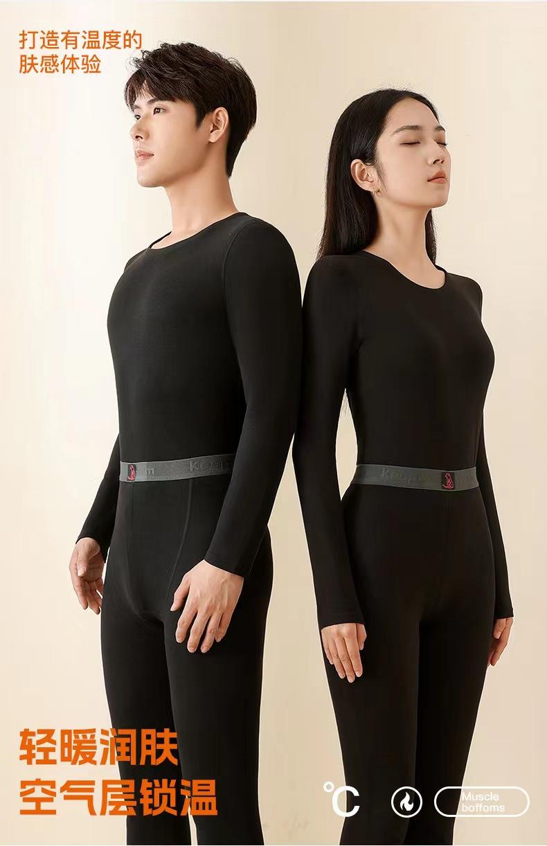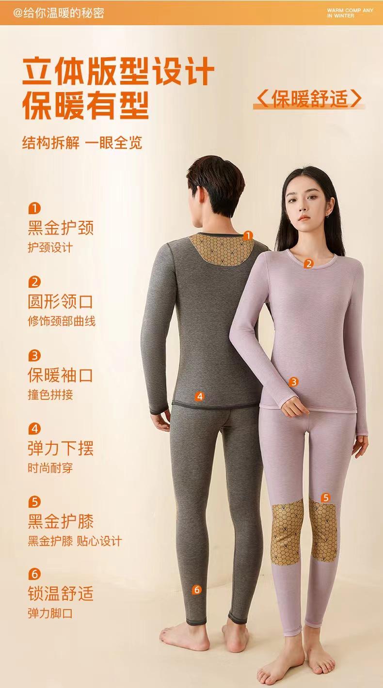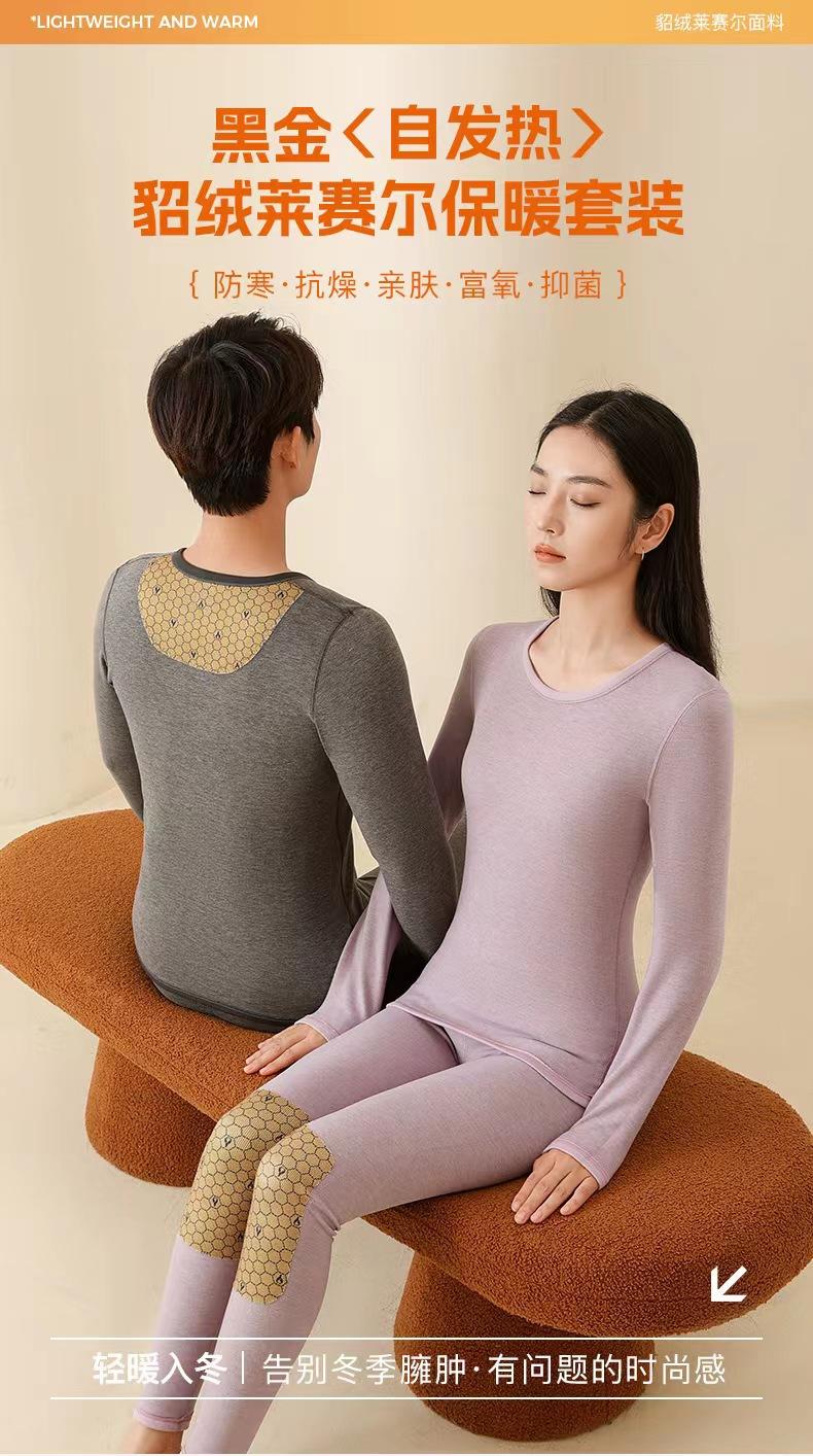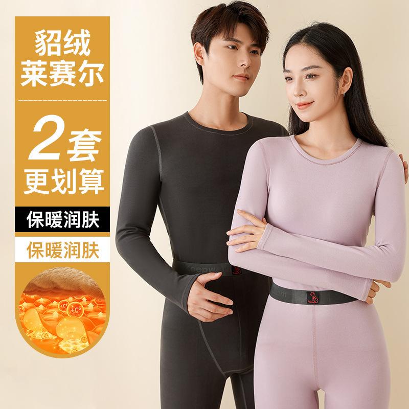 Invierno nuevo traje de ropa interior térmica para mujer forrado de vellón para pareja negro dorado parche de visón terciopelo traje térmico para hombre al por mayor