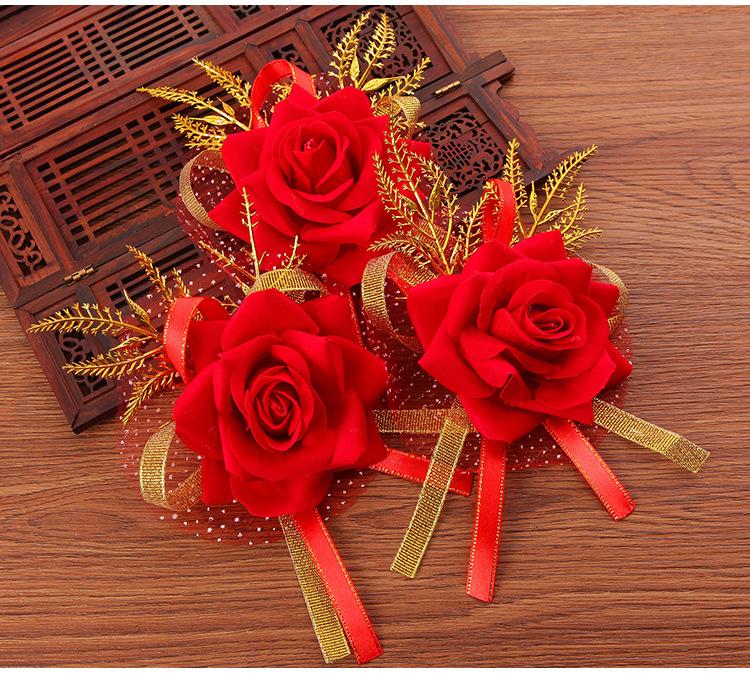 Suministros para Boda Boda Creativa China de Alta Gama Juego Completo Dama de Honor Boda Novia Novio Ramillete de Rosa Artificial