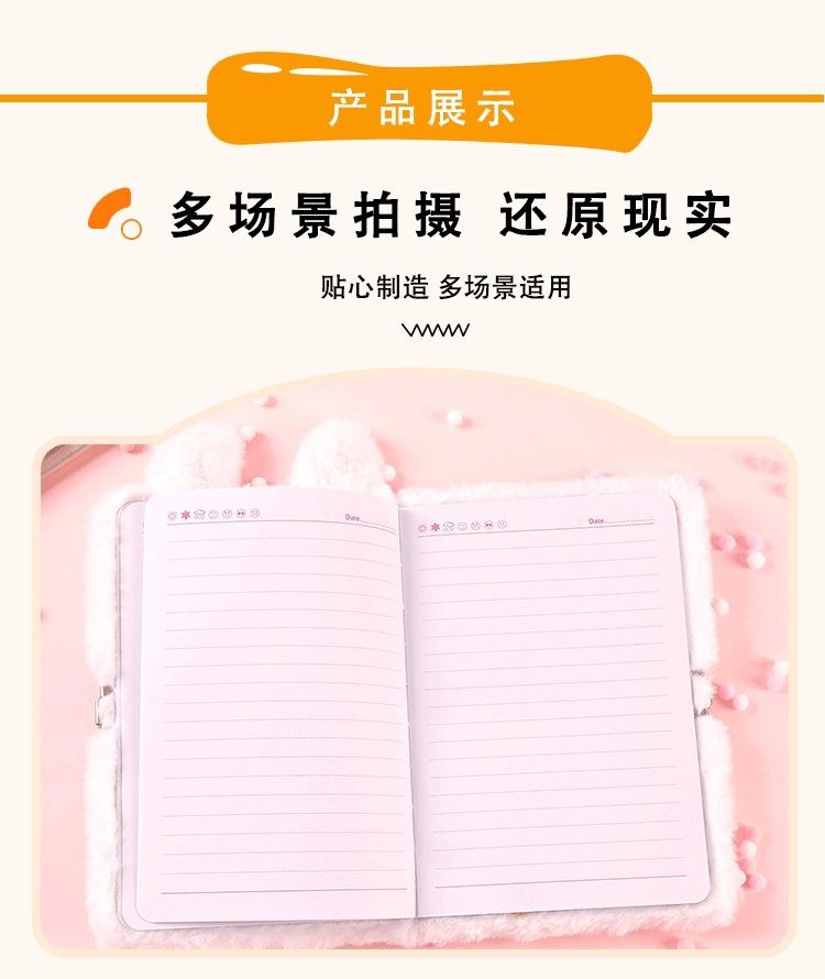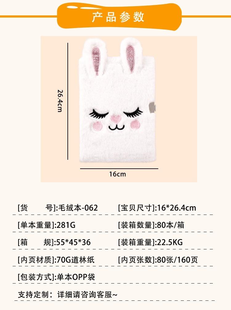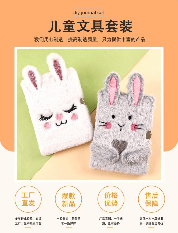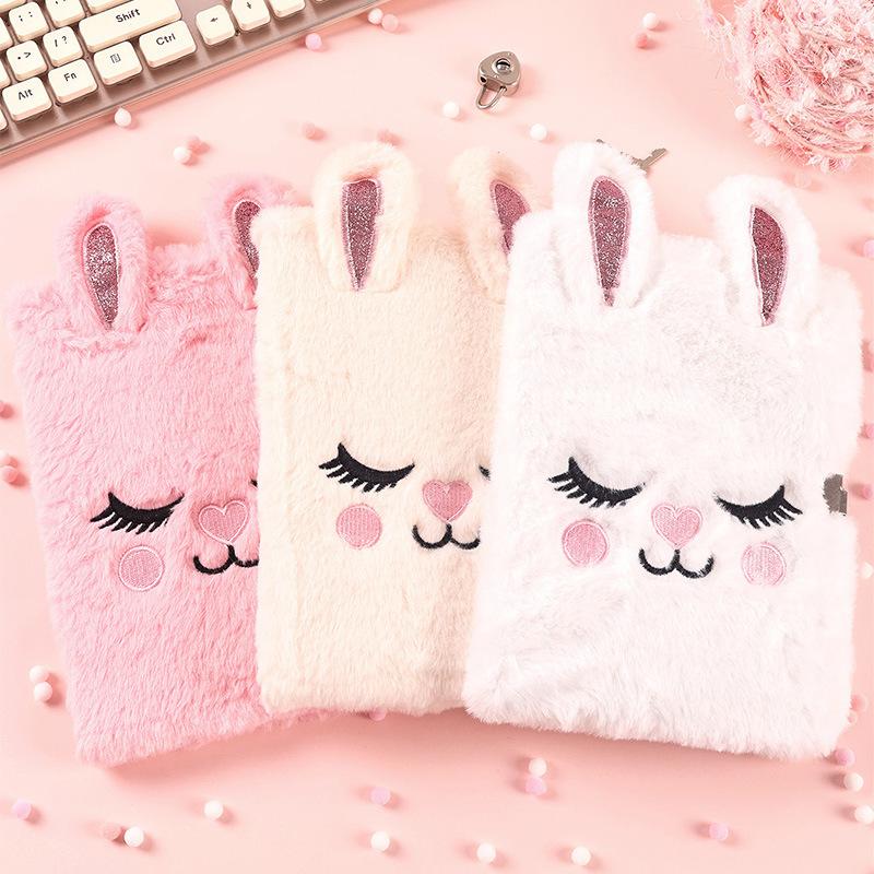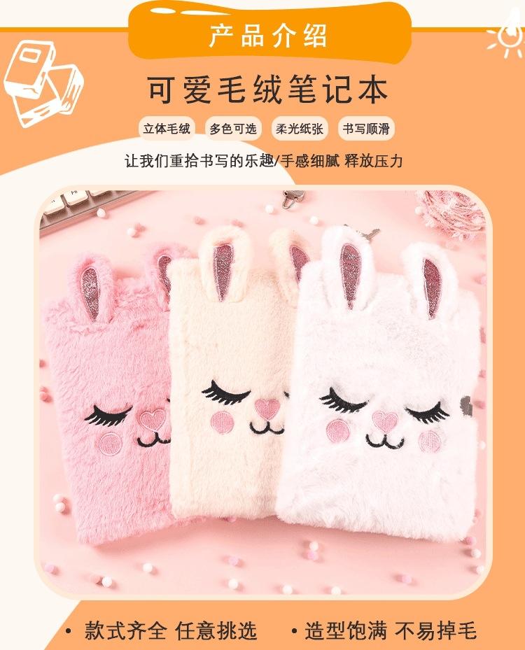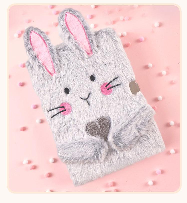Libreta A5 Nueva Transfronteriza de Piel de Conejo Peluda Bordada Alto Valor de Color Lindo Dibujo Animado Estudiante Bloc de Notas Diario
