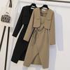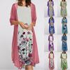 Conjunto de dos piezas de falda larga de otoño para mujer, nuevo de Amazon europeo y americano 2023, vestido de cuello redondo estampado con flores y hierba, chaqueta para mujer