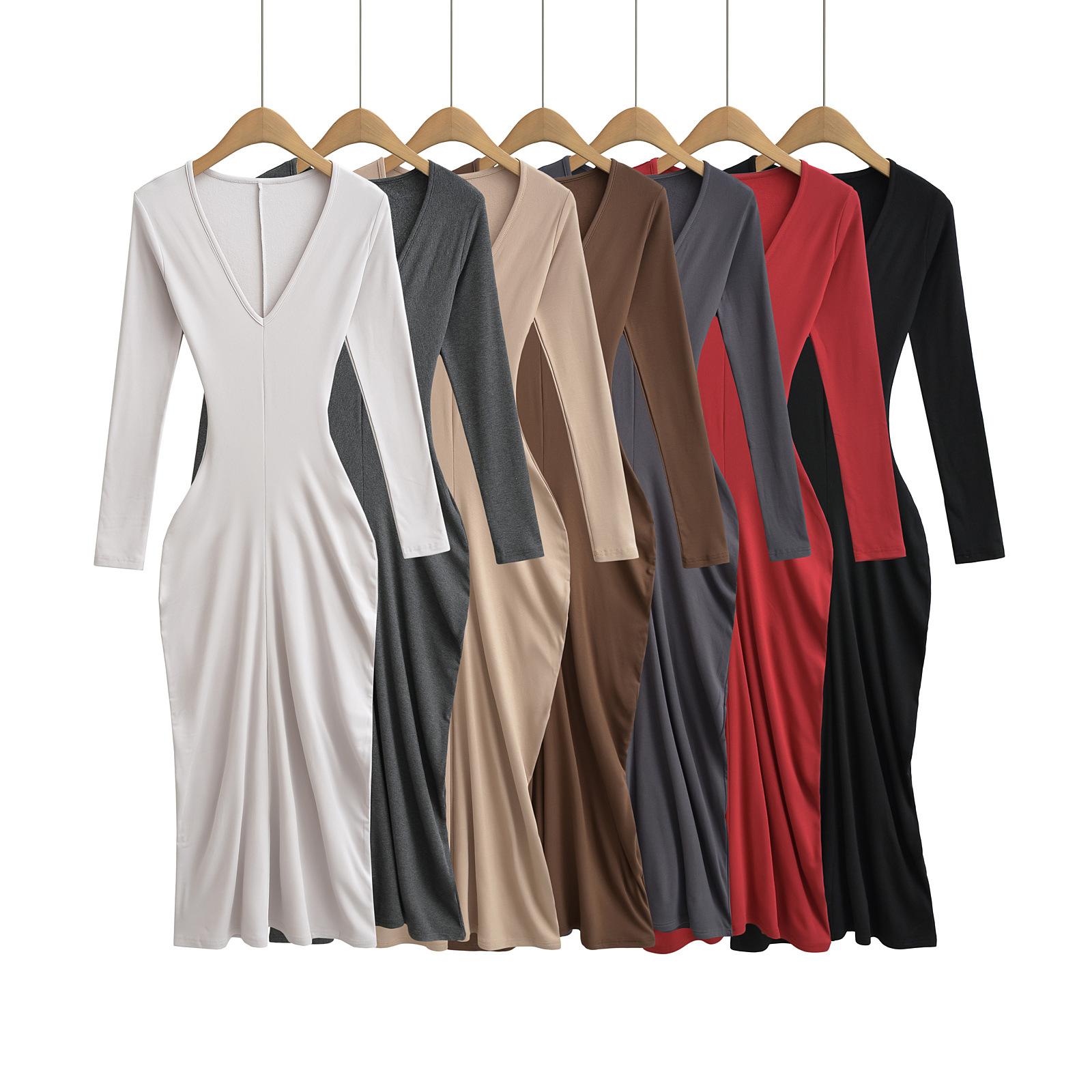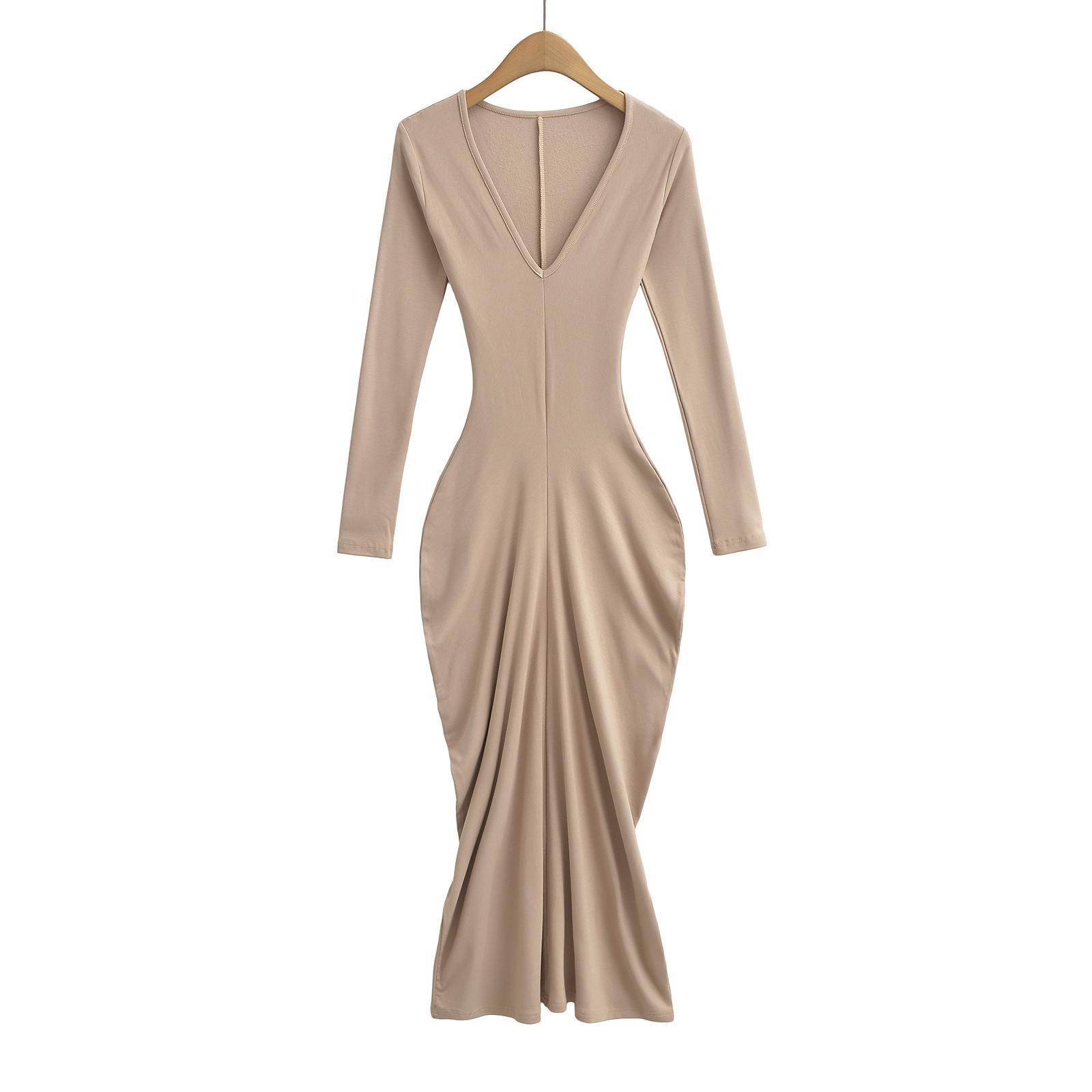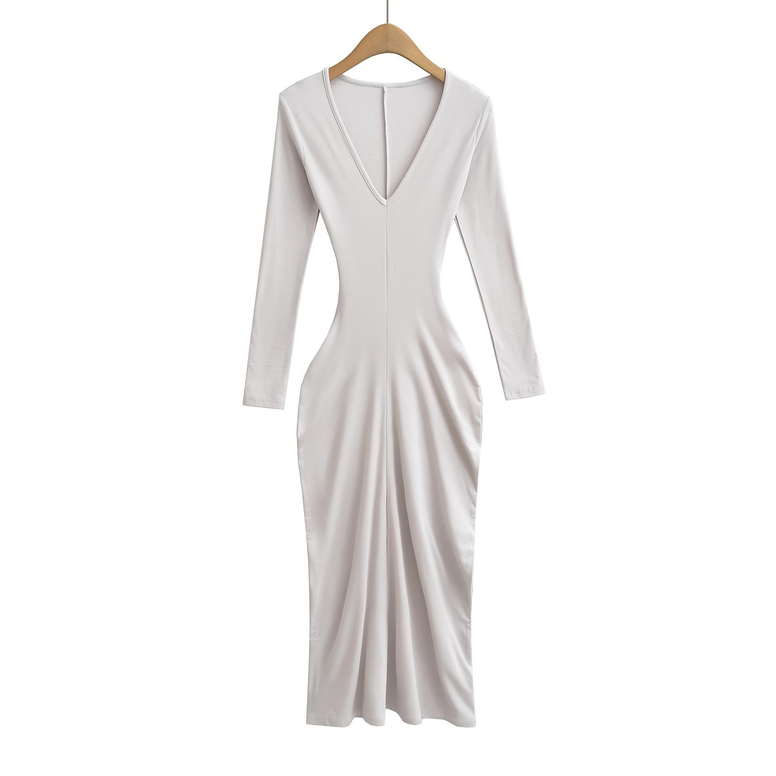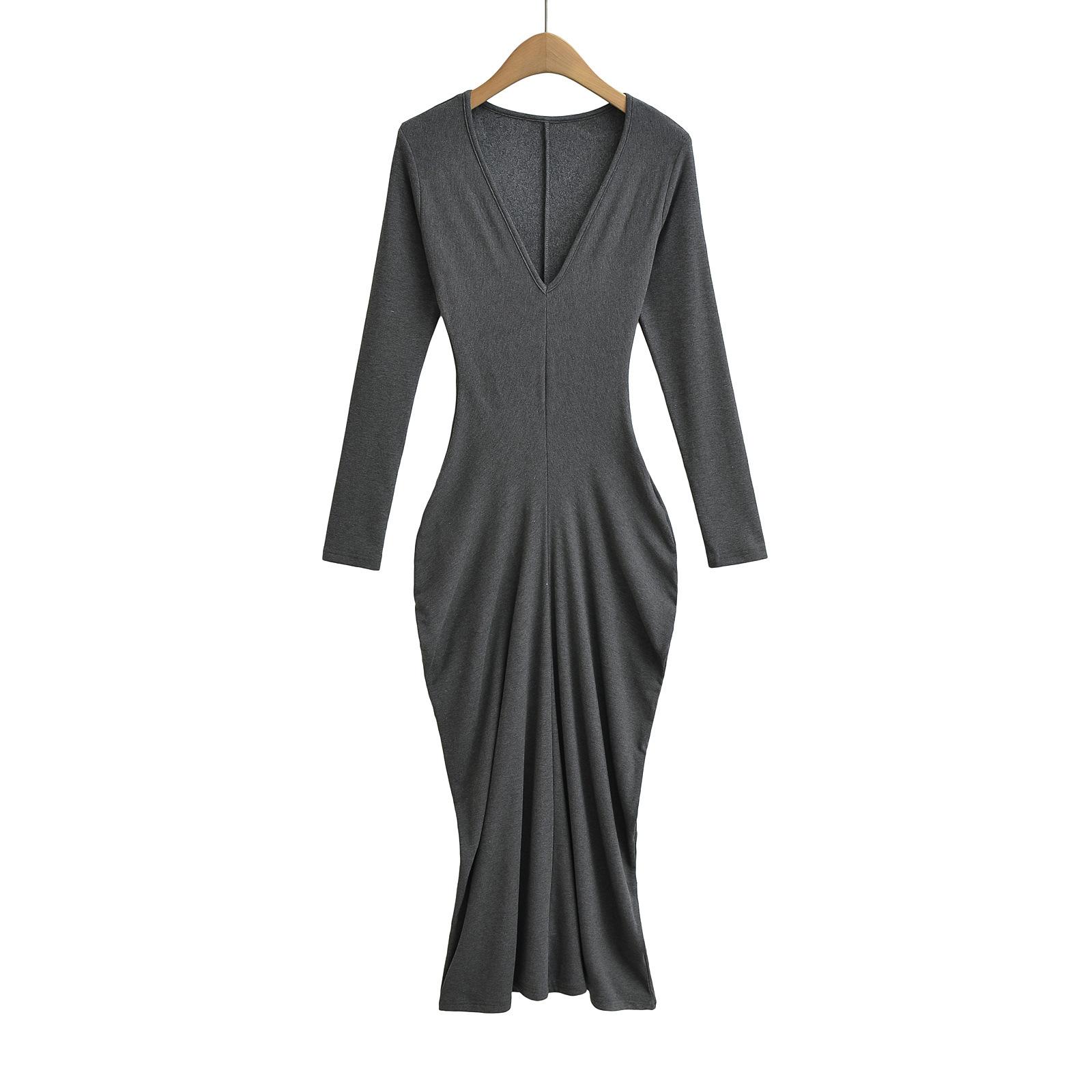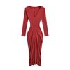 Otoño e invierno 2024 sexy vestido de manga larga con cuello en V profundo, adelgazante de cintura, con lijado interior, versión pequeña para chica hot