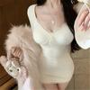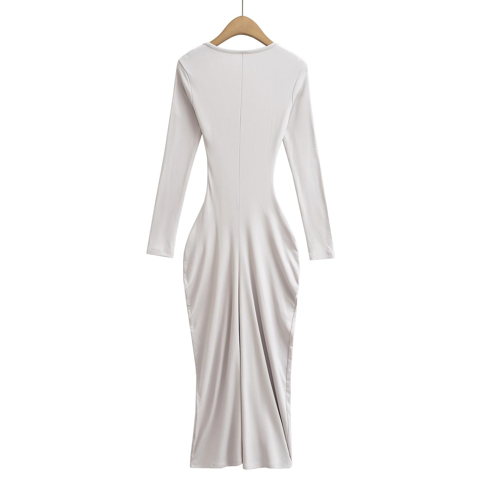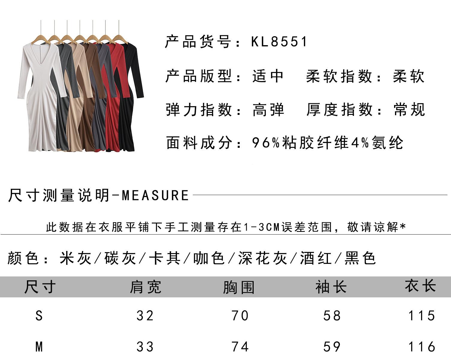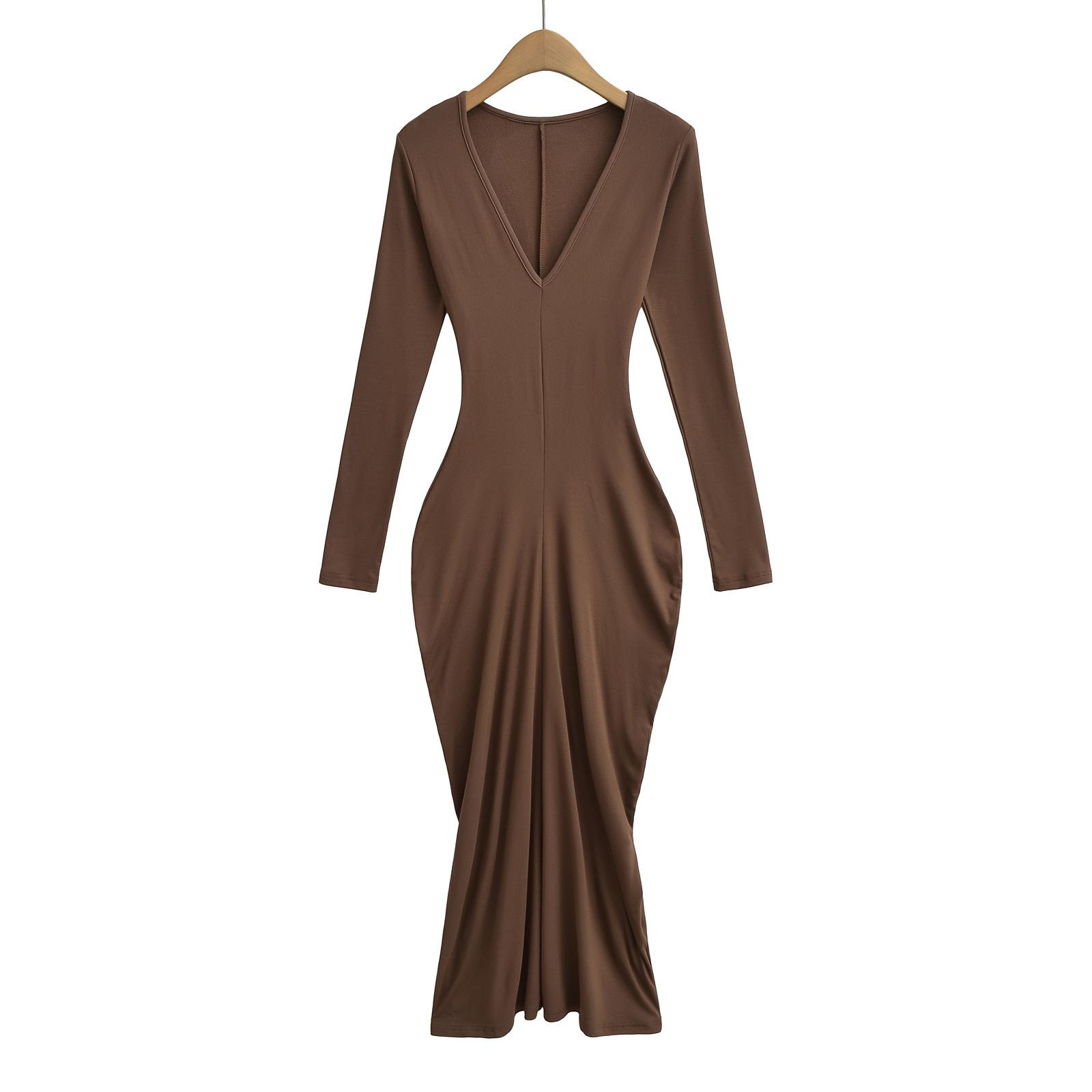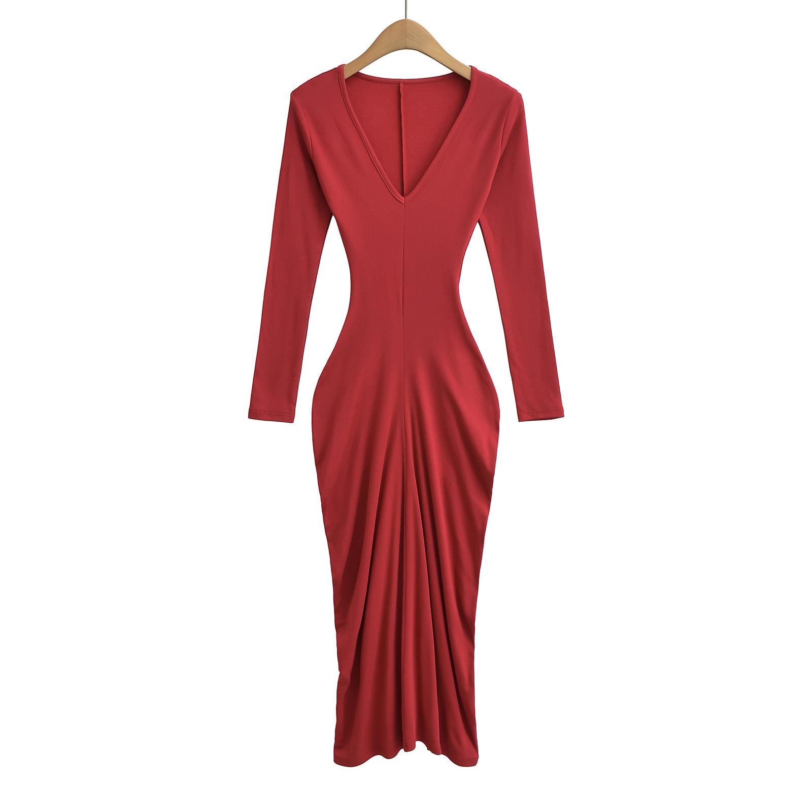 Otoño e invierno 2024 sexy vestido de manga larga con cuello en V profundo, adelgazante de cintura, con lijado interior, versión pequeña para chica hot