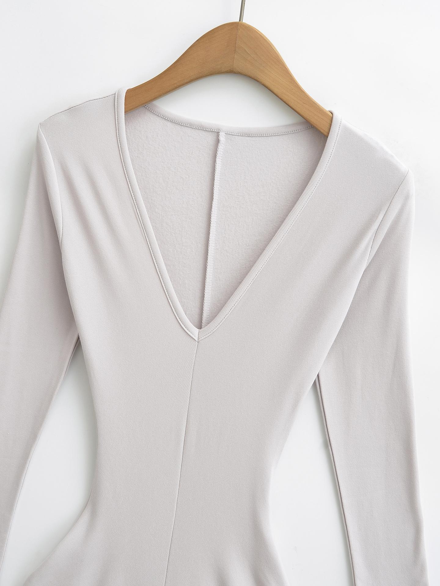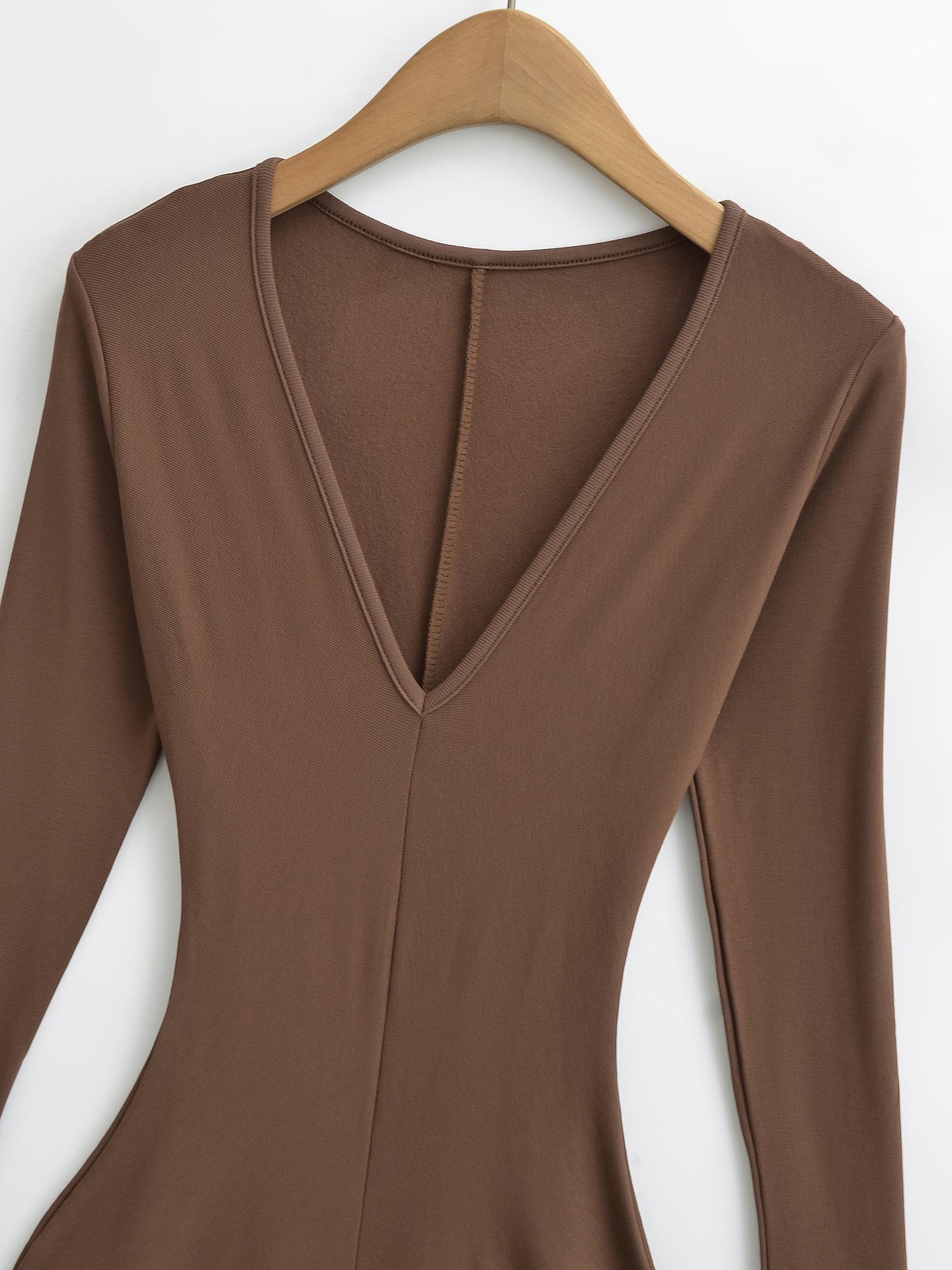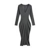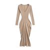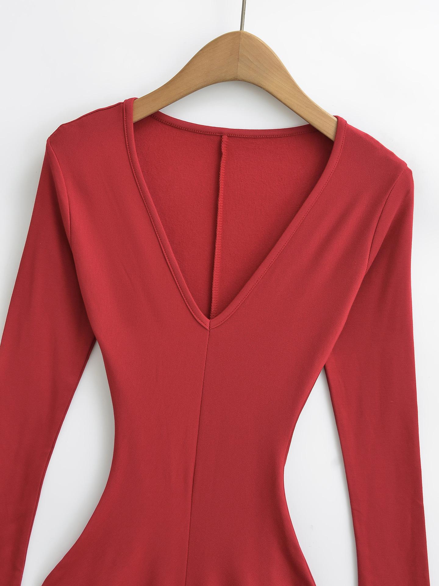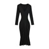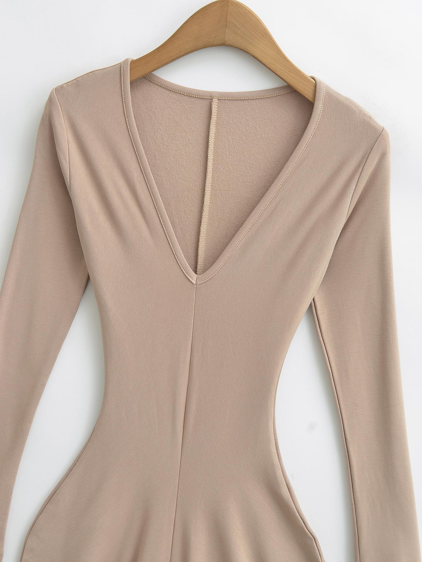 Otoño e invierno 2024 sexy vestido de manga larga con cuello en V profundo, adelgazante de cintura, con lijado interior, versión pequeña para chica hot
