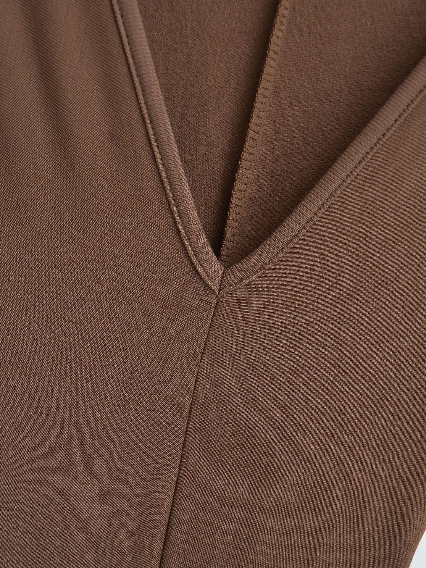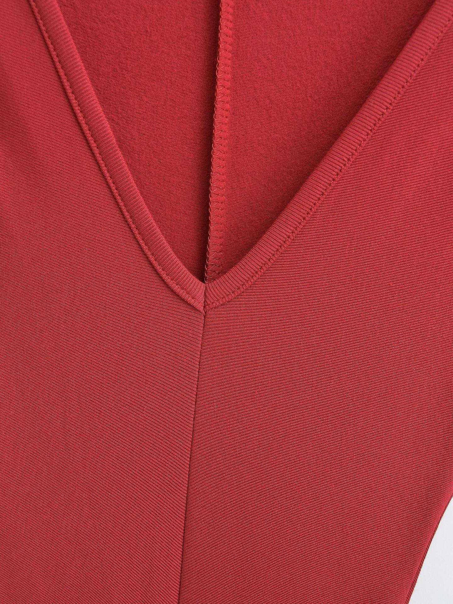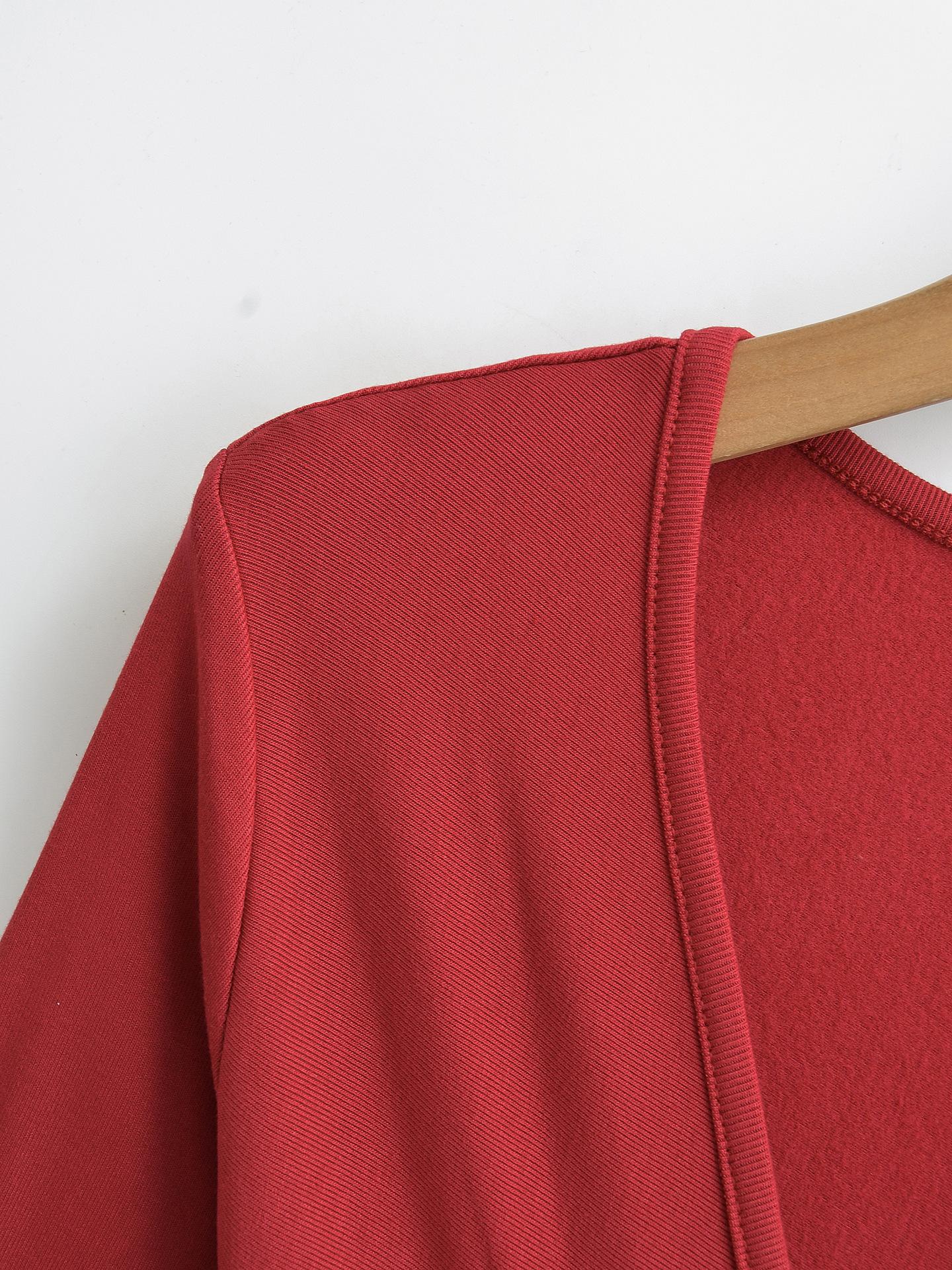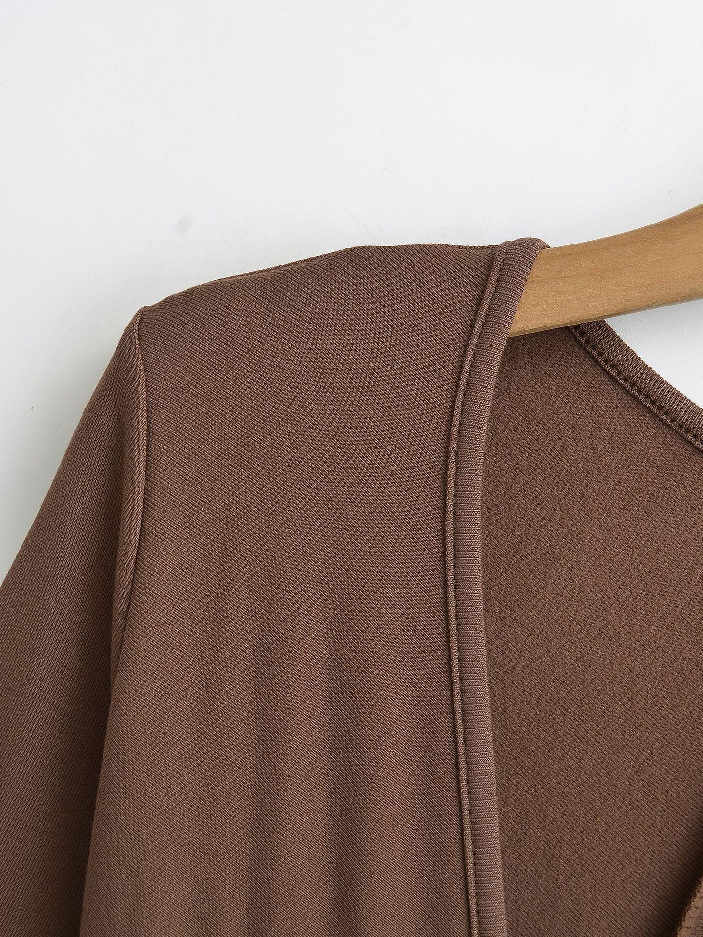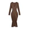 Otoño e invierno 2024 sexy vestido de manga larga con cuello en V profundo, adelgazante de cintura, con lijado interior, versión pequeña para chica hot