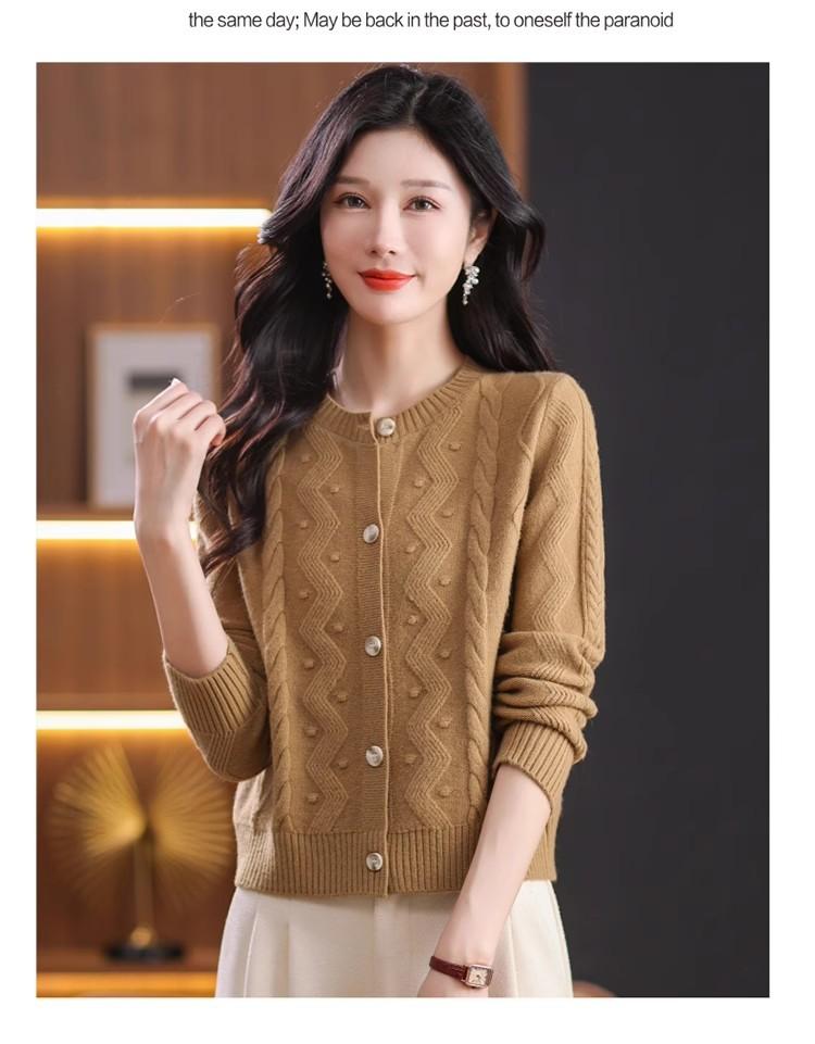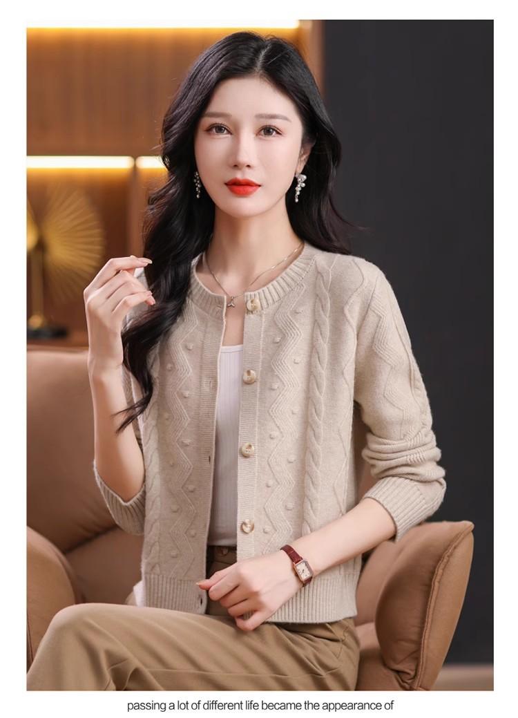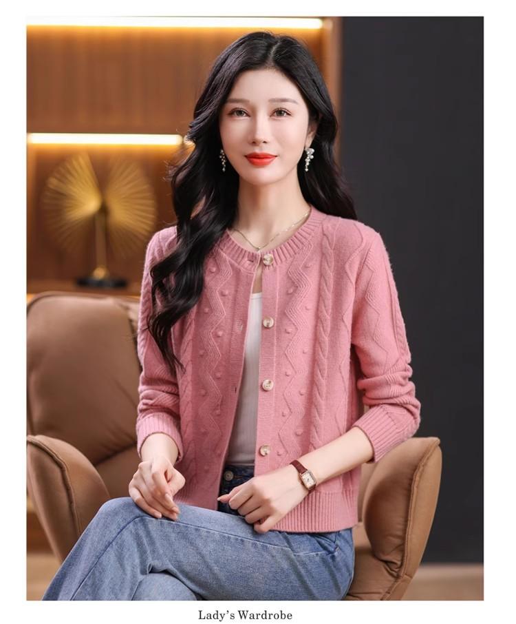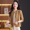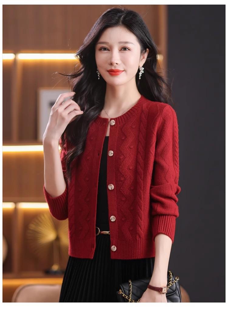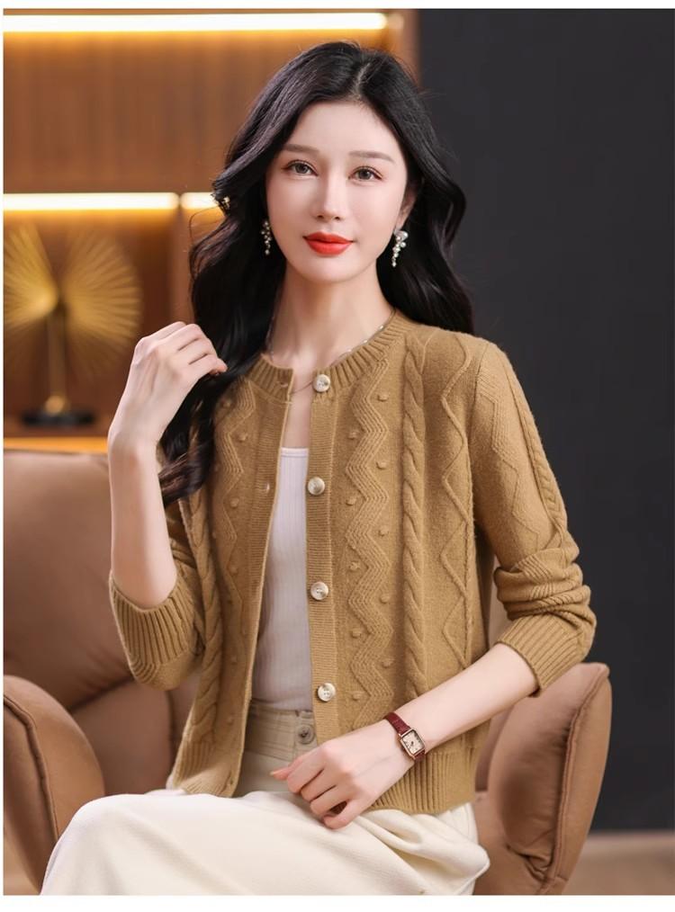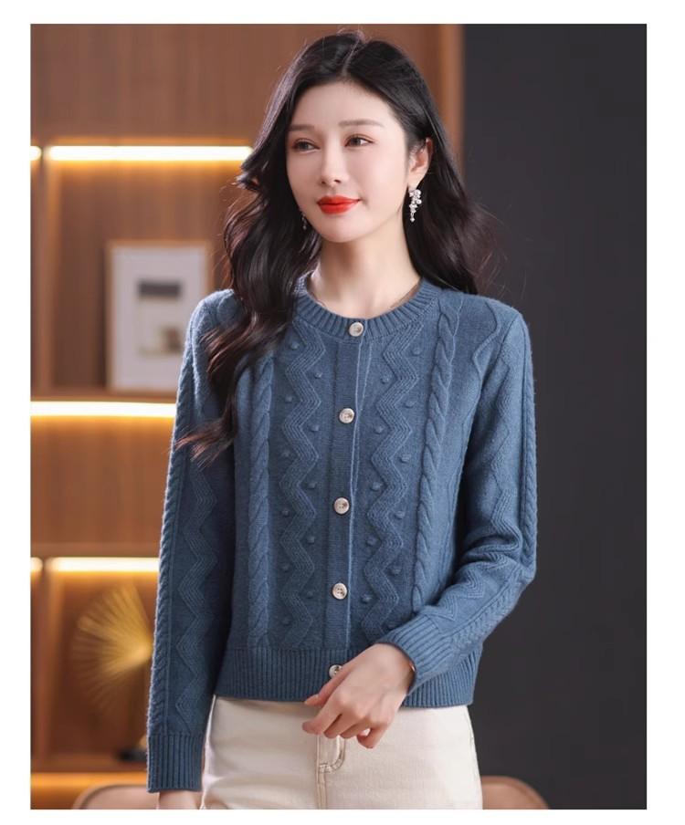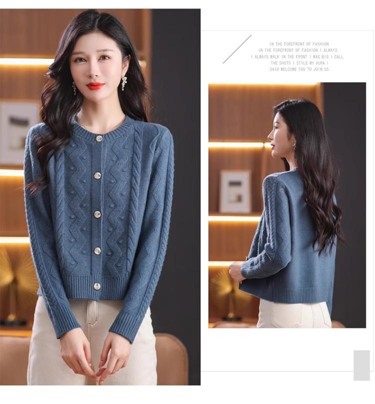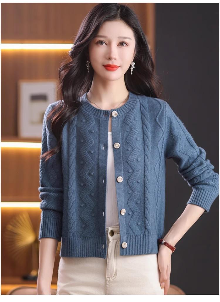 Cárdigan Corto de Color Sólido para Otoño e Invierno 2025 para Mujer, Cuello Redondo, Tejido, Ropa Exterior de Manga Larga, Estilo Coreano, Suéter Holgado, Tops