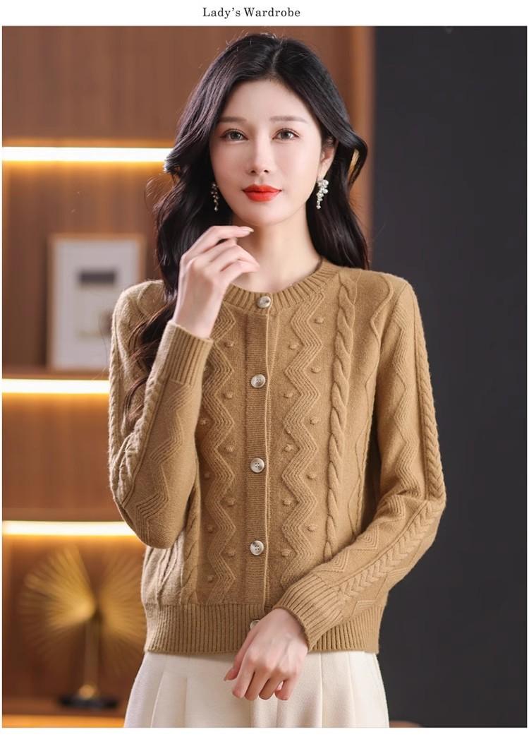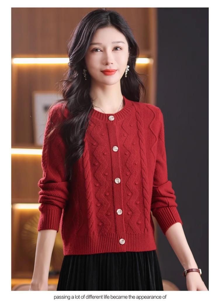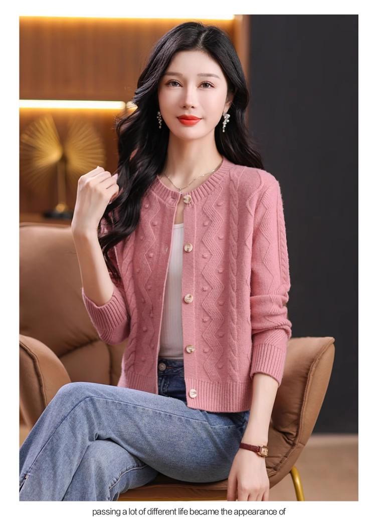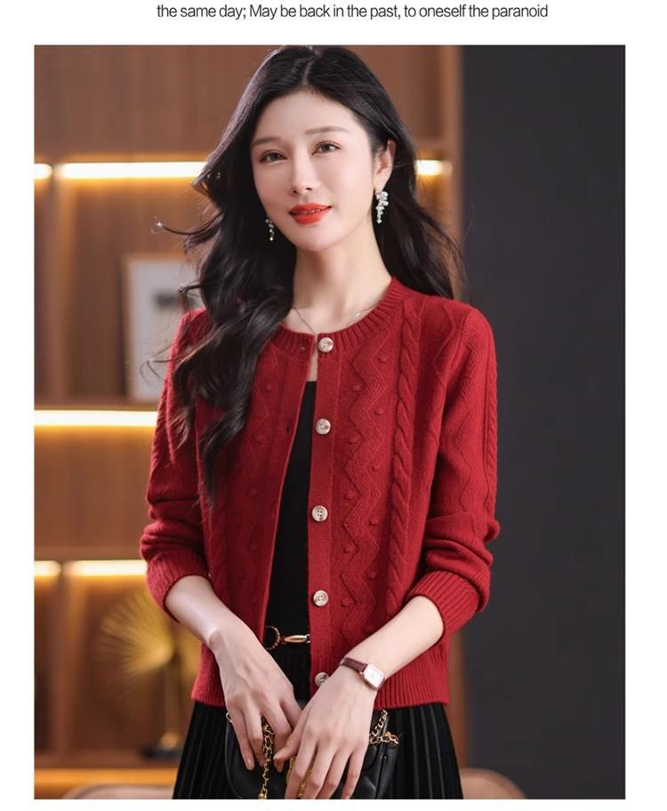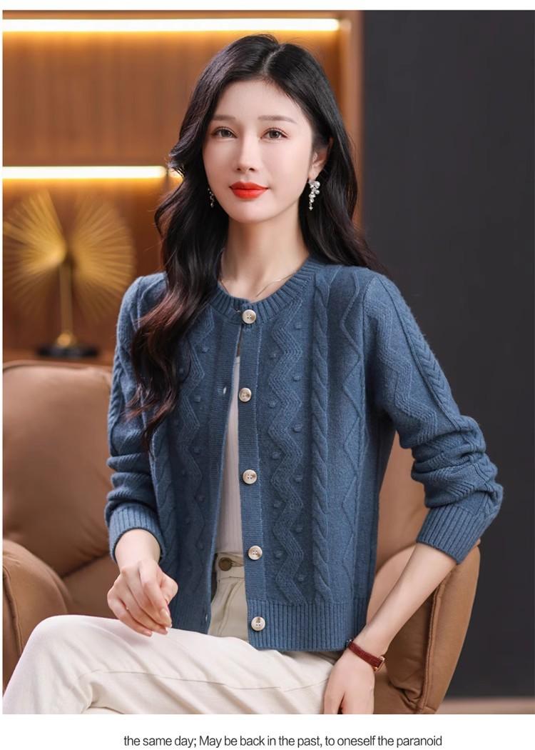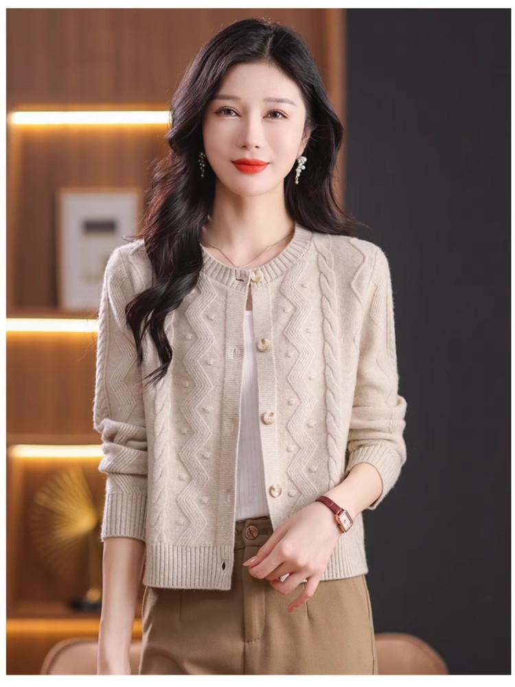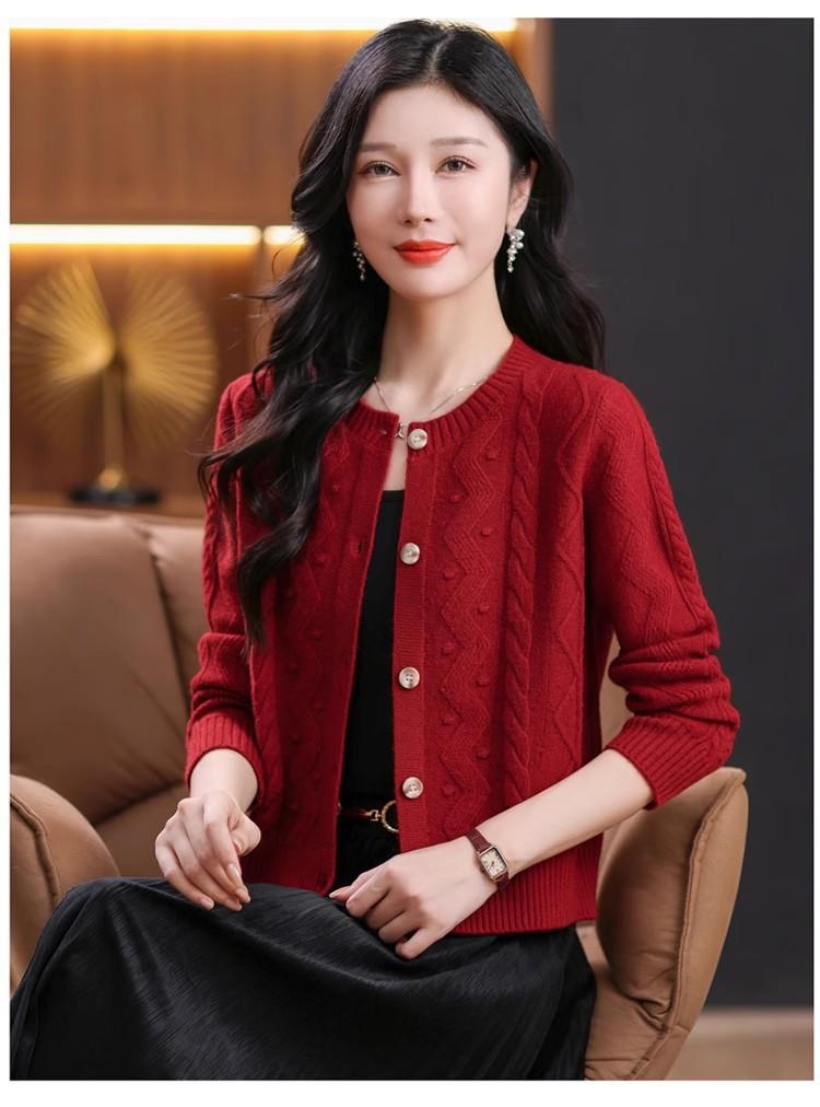 Cárdigan Corto de Color Sólido para Otoño e Invierno 2025 para Mujer, Cuello Redondo, Tejido, Ropa Exterior de Manga Larga, Estilo Coreano, Suéter Holgado, Tops