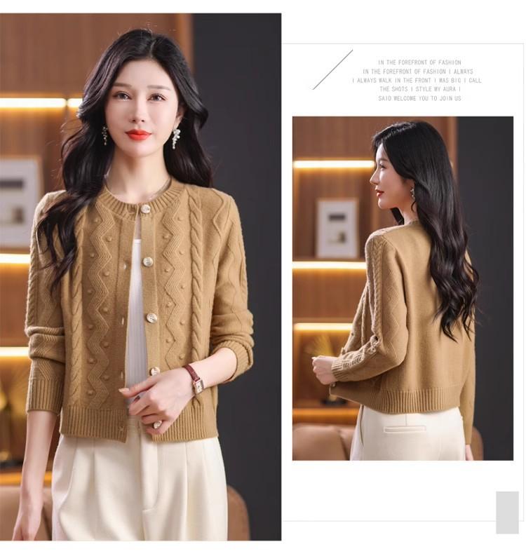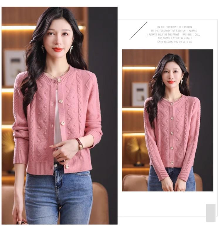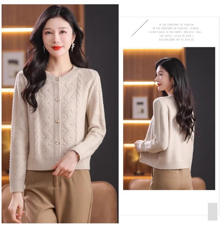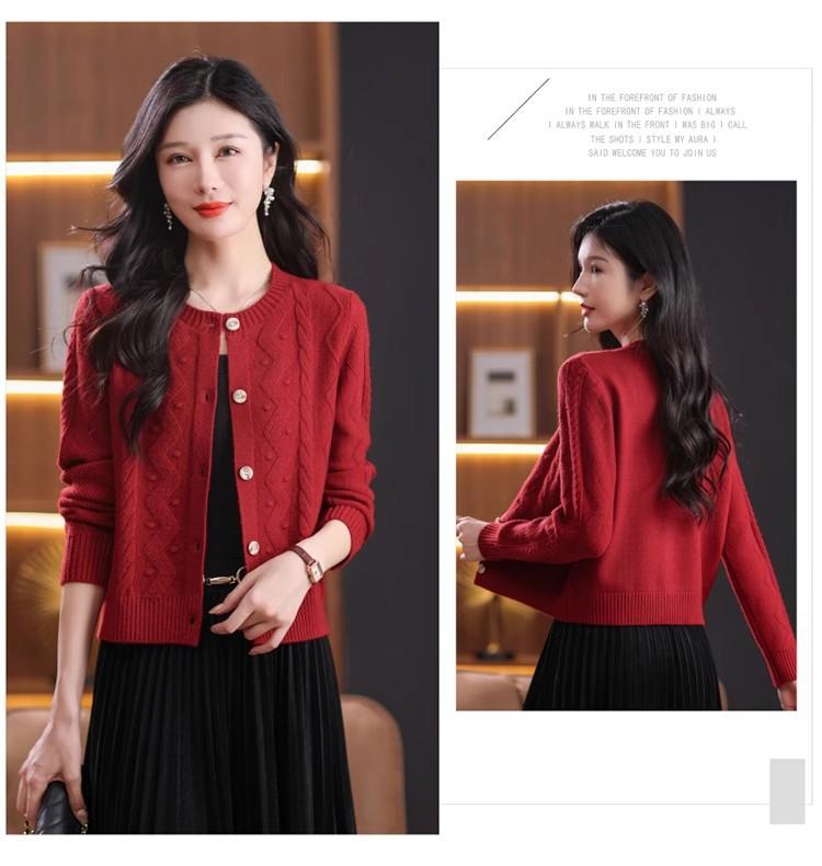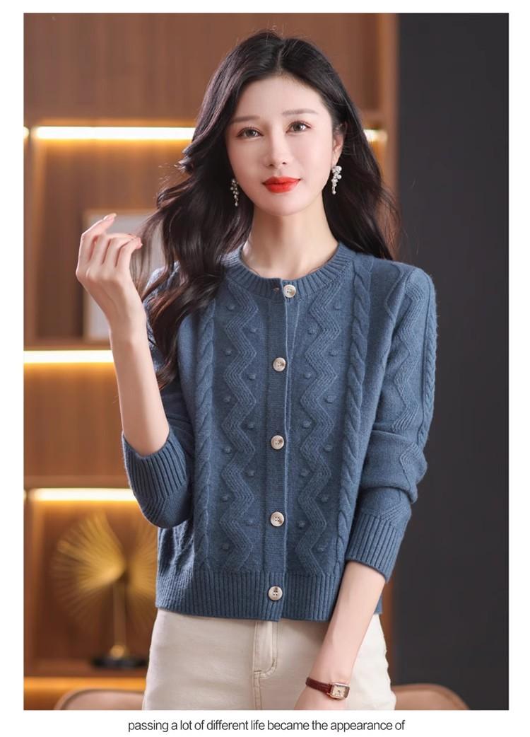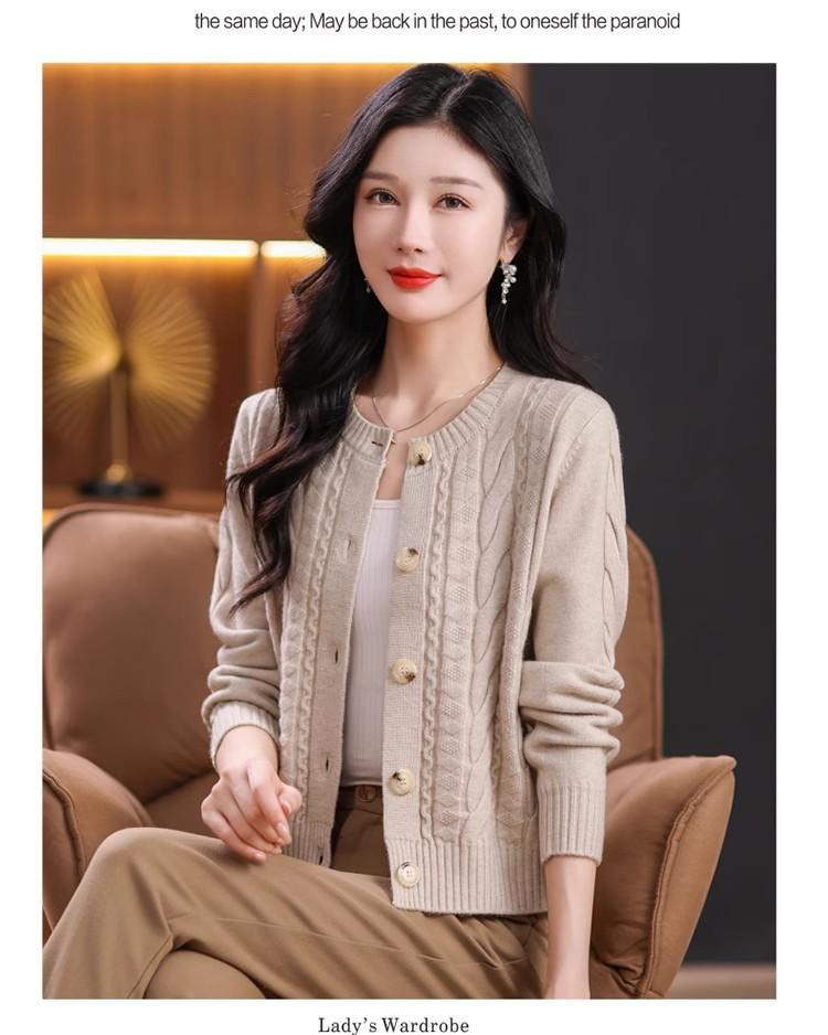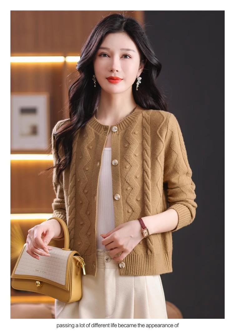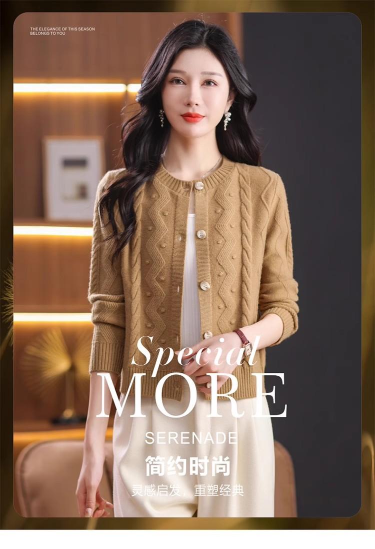 Cárdigan Corto de Color Sólido para Otoño e Invierno 2025 para Mujer, Cuello Redondo, Tejido, Ropa Exterior de Manga Larga, Estilo Coreano, Suéter Holgado, Tops