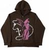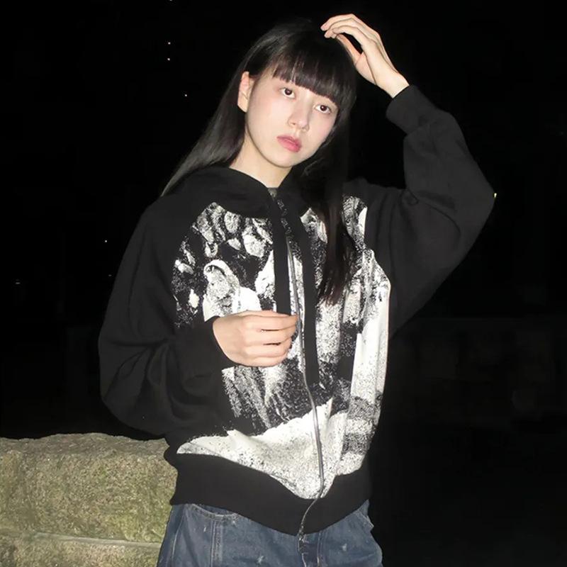 Chaqueta Gótica Vintage Mujer High Street Hip Hop Patrón de Dibujos Animados Cremallera Americana Holgada Casual Subcultura Sudadera con Capucha