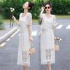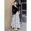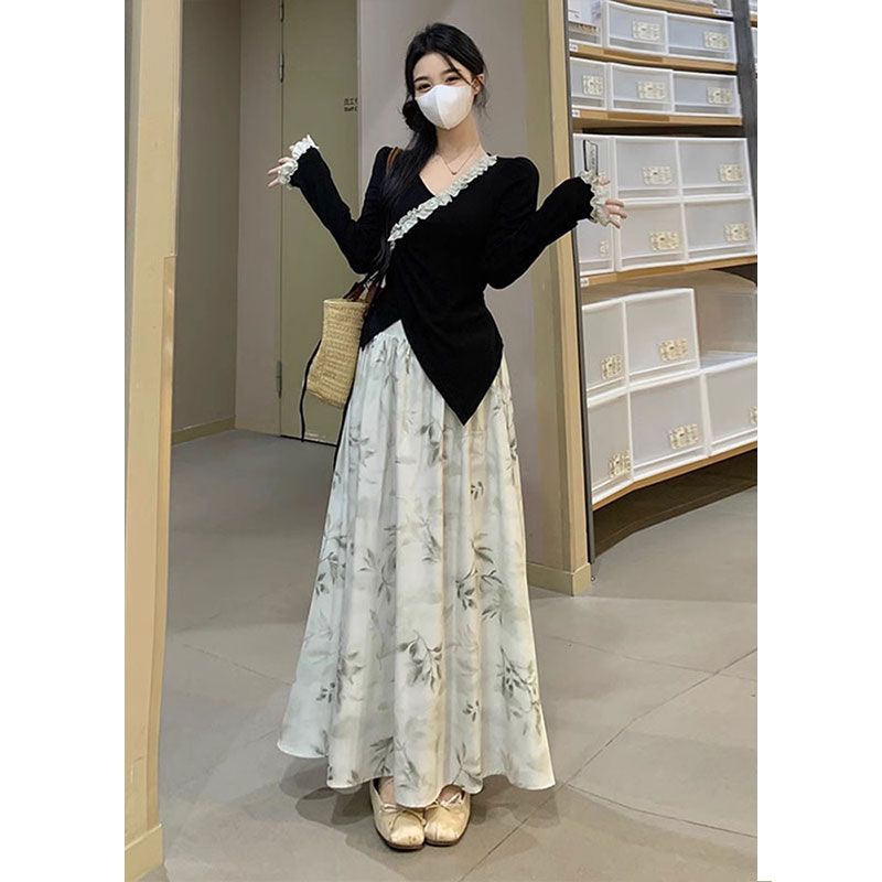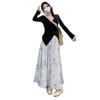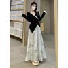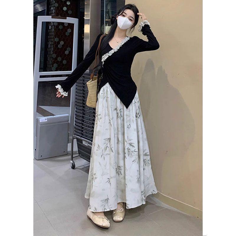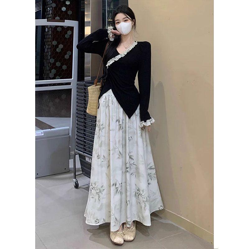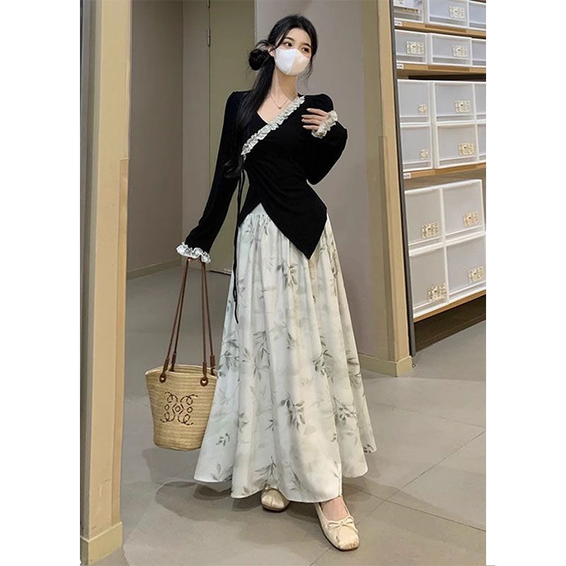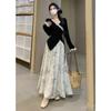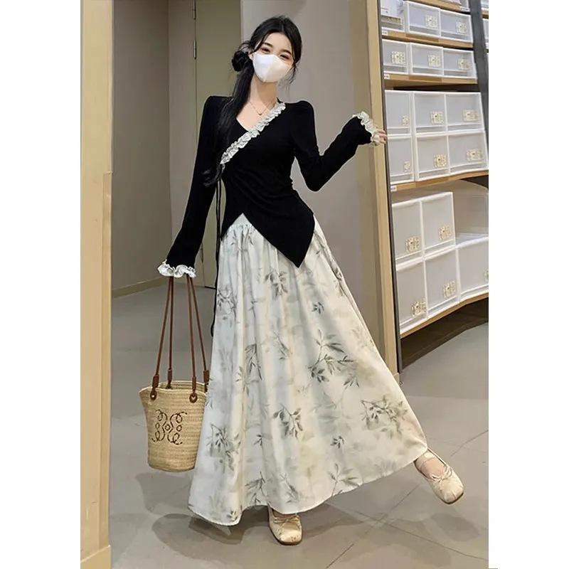 Nuevo traje de estilo chino para mujer, otoño e invierno 2025, conjunto de falda y top ajustado, dos piezas.