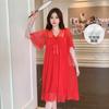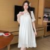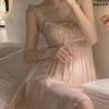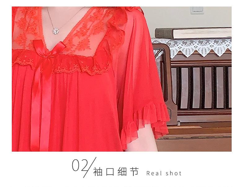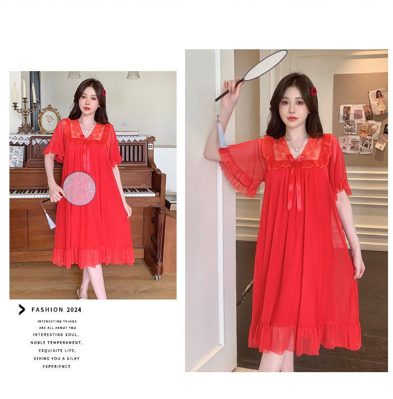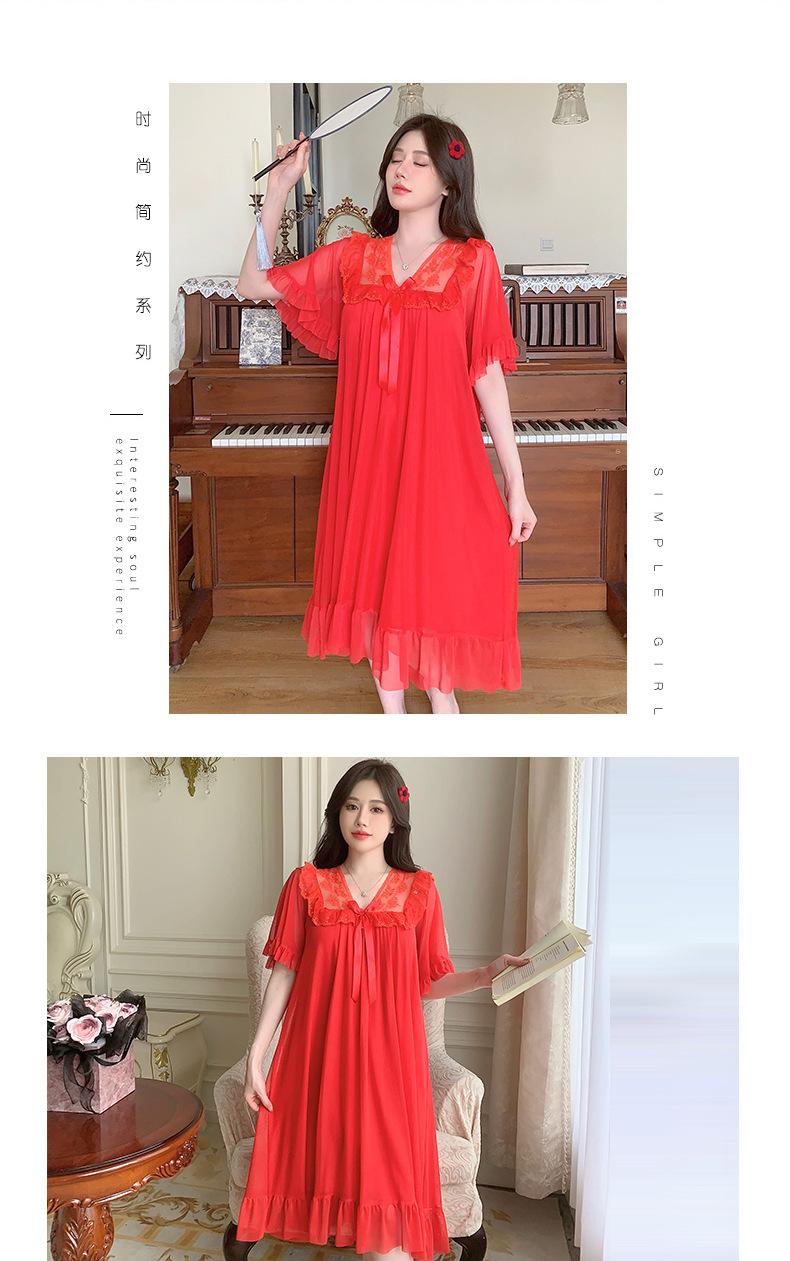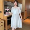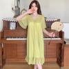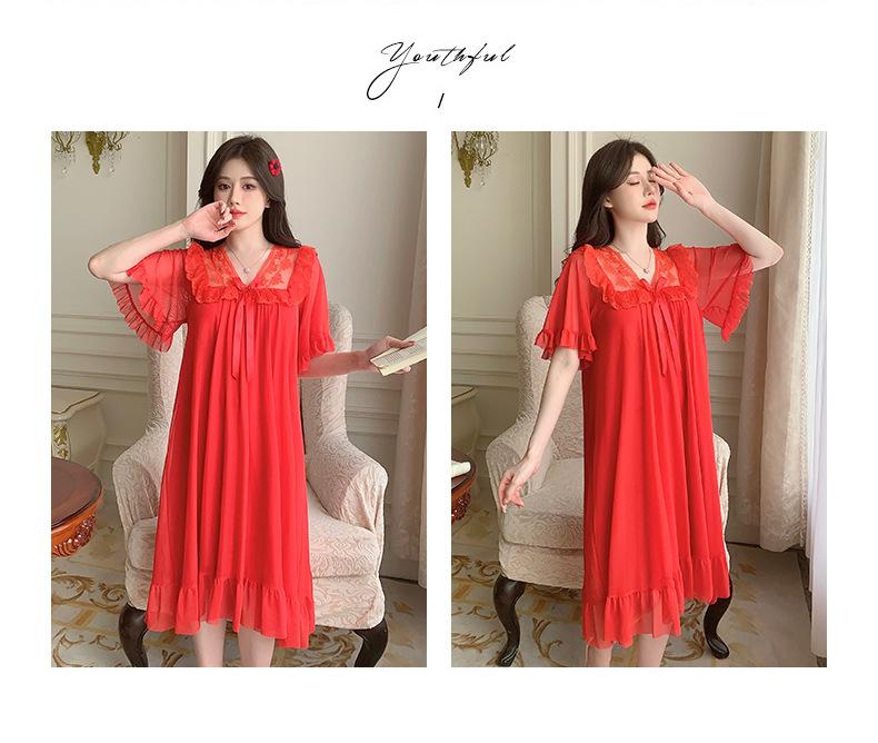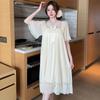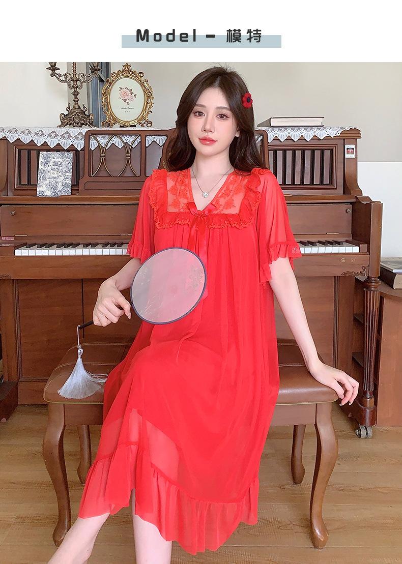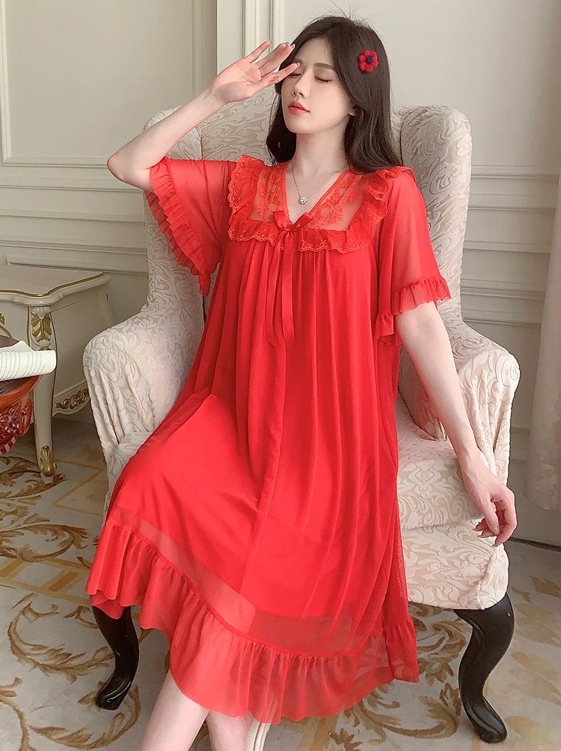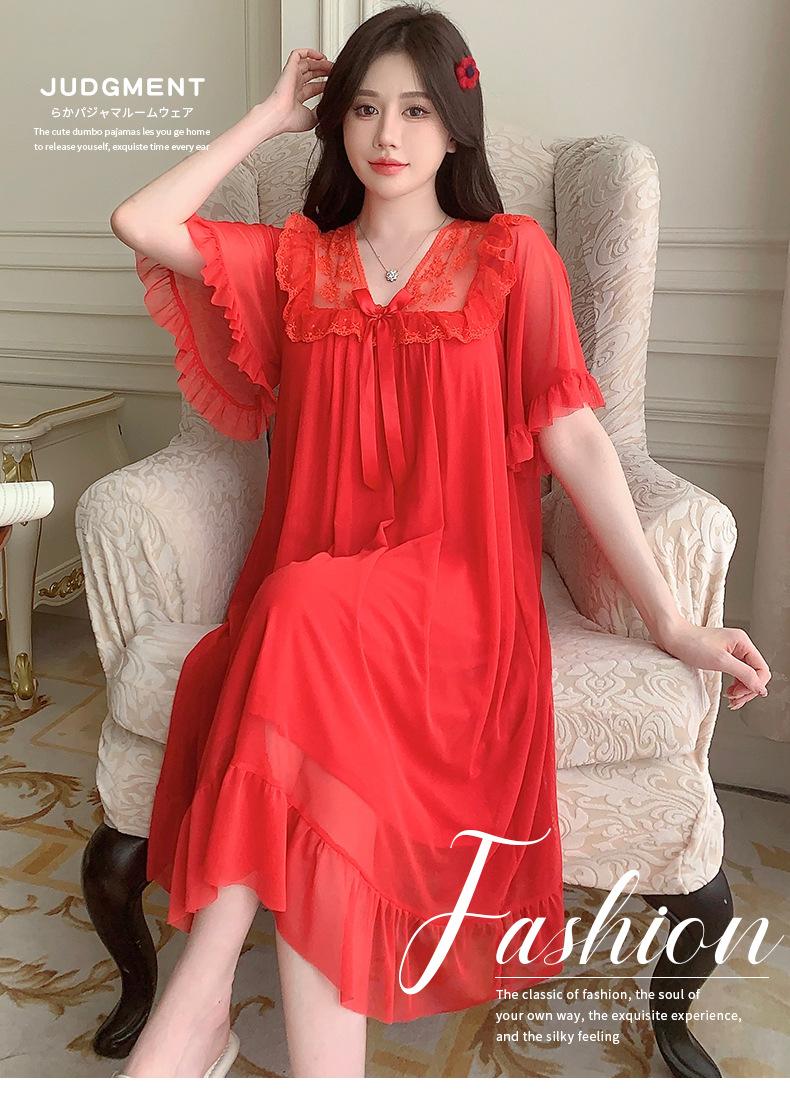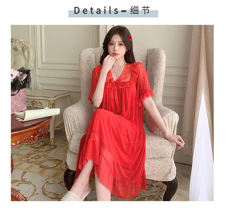 Camisón de Verano para Mujer, Verano de Manga Corta con Almohadillas para el Busto, Pijama de Mujer Estilo Palacio, Ropa de Casa Fina de Malla que se Puede Usar Afuera